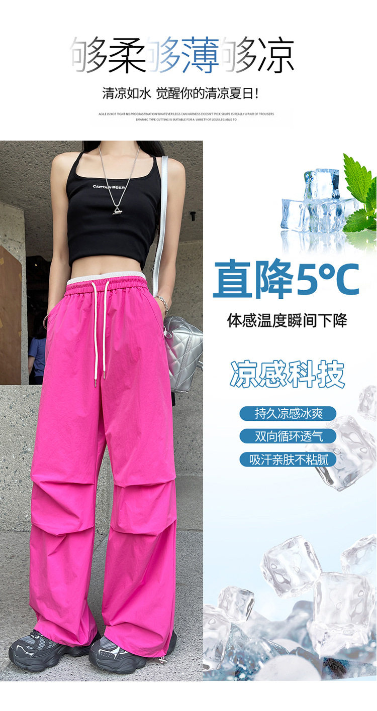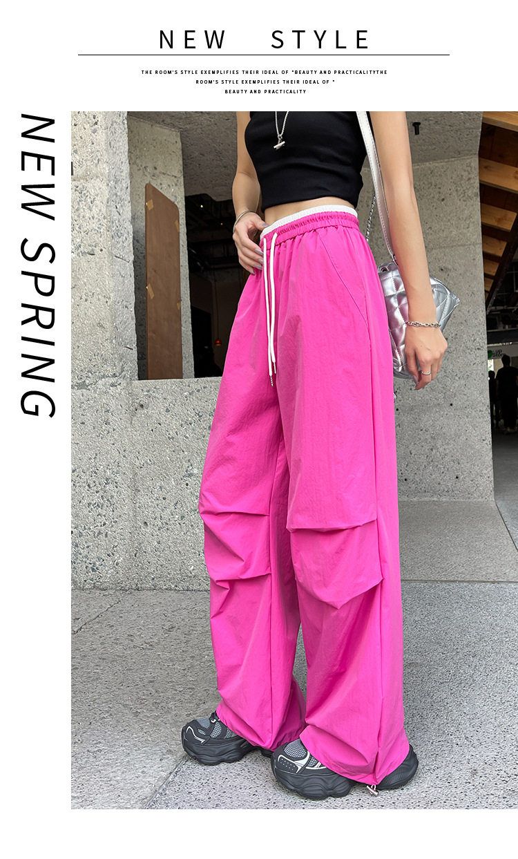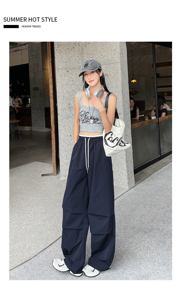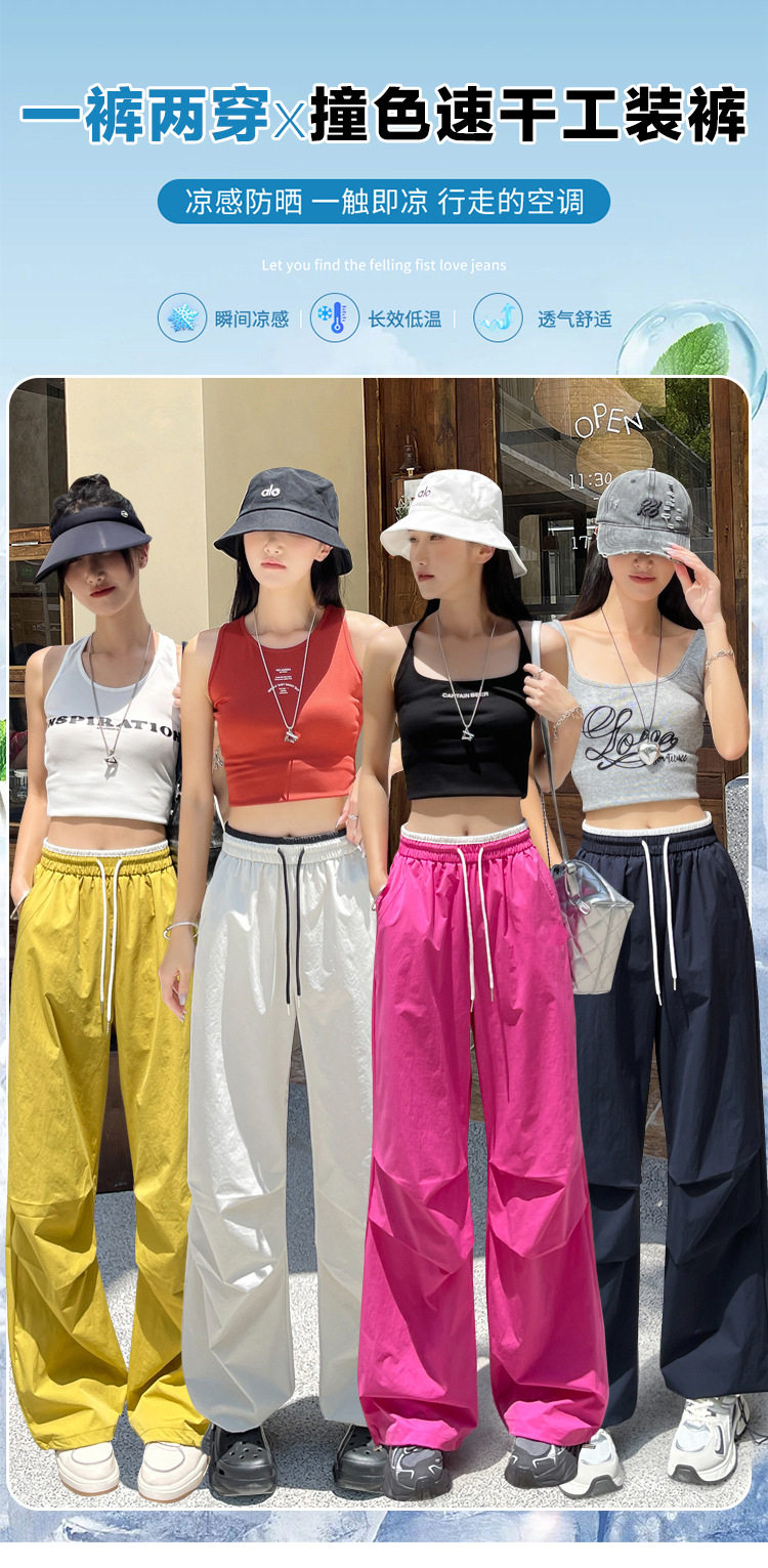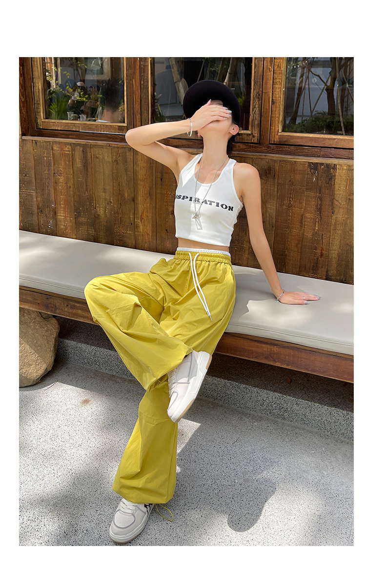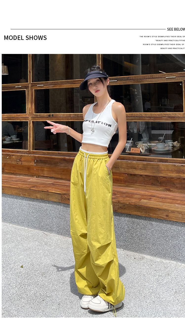 薄款高腰显窄版阔腿裤女夏季新款拼色腰头刺绣时尚宽松休闲长裤 NDK-J6012