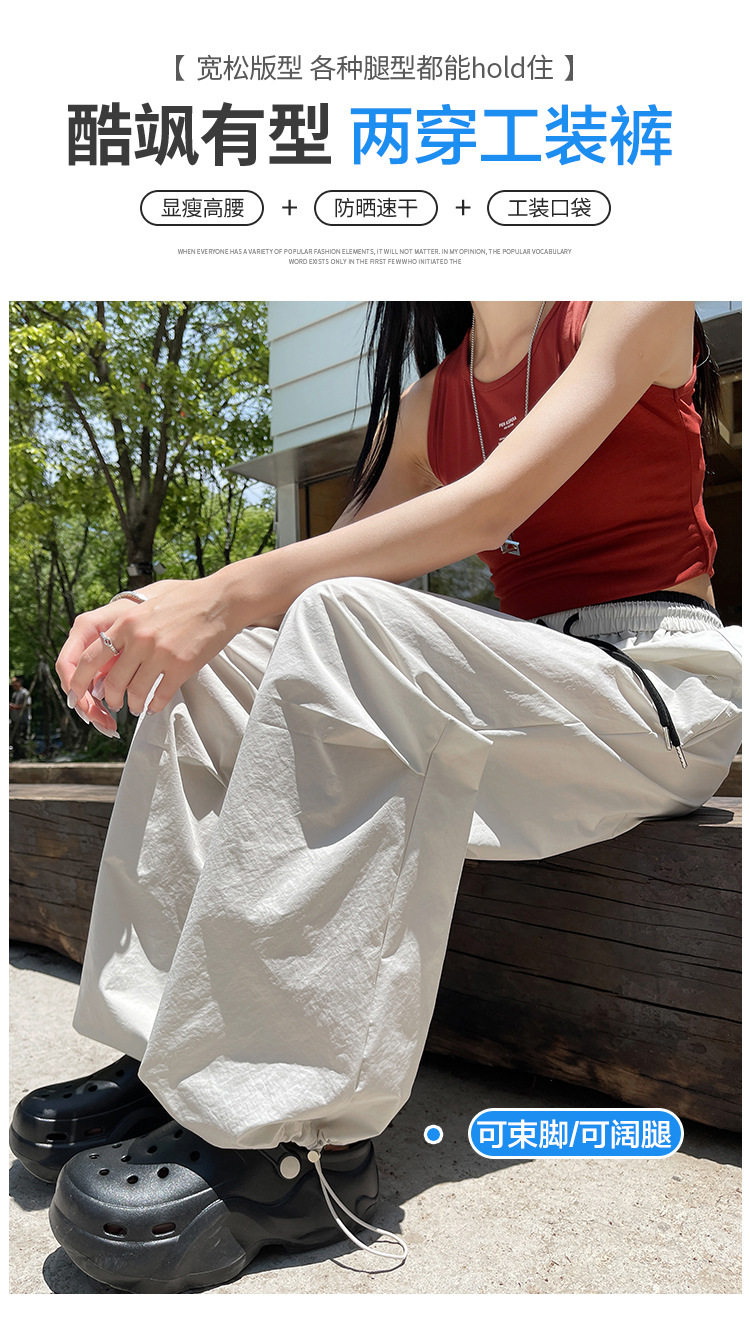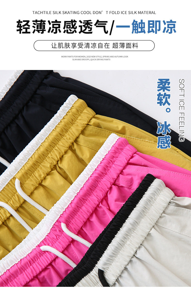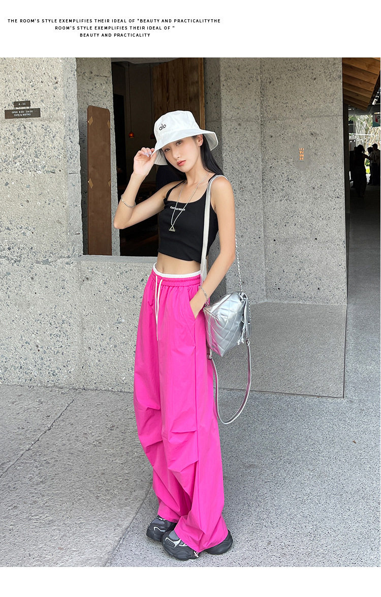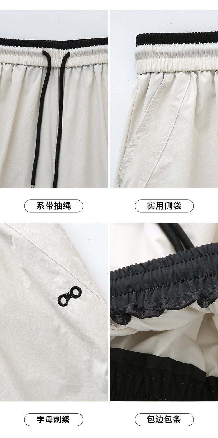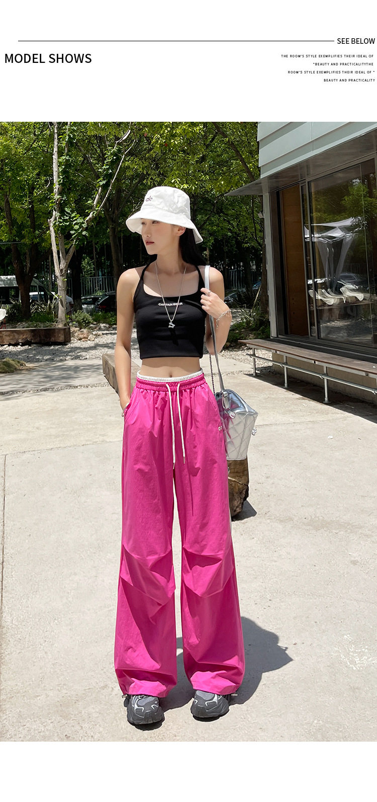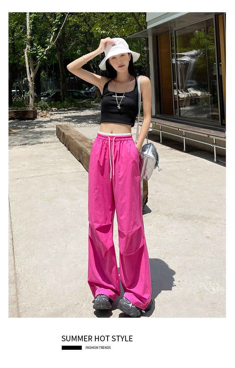 薄款高腰显窄版阔腿裤女夏季新款拼色腰头刺绣时尚宽松休闲长裤 NDK-J6012