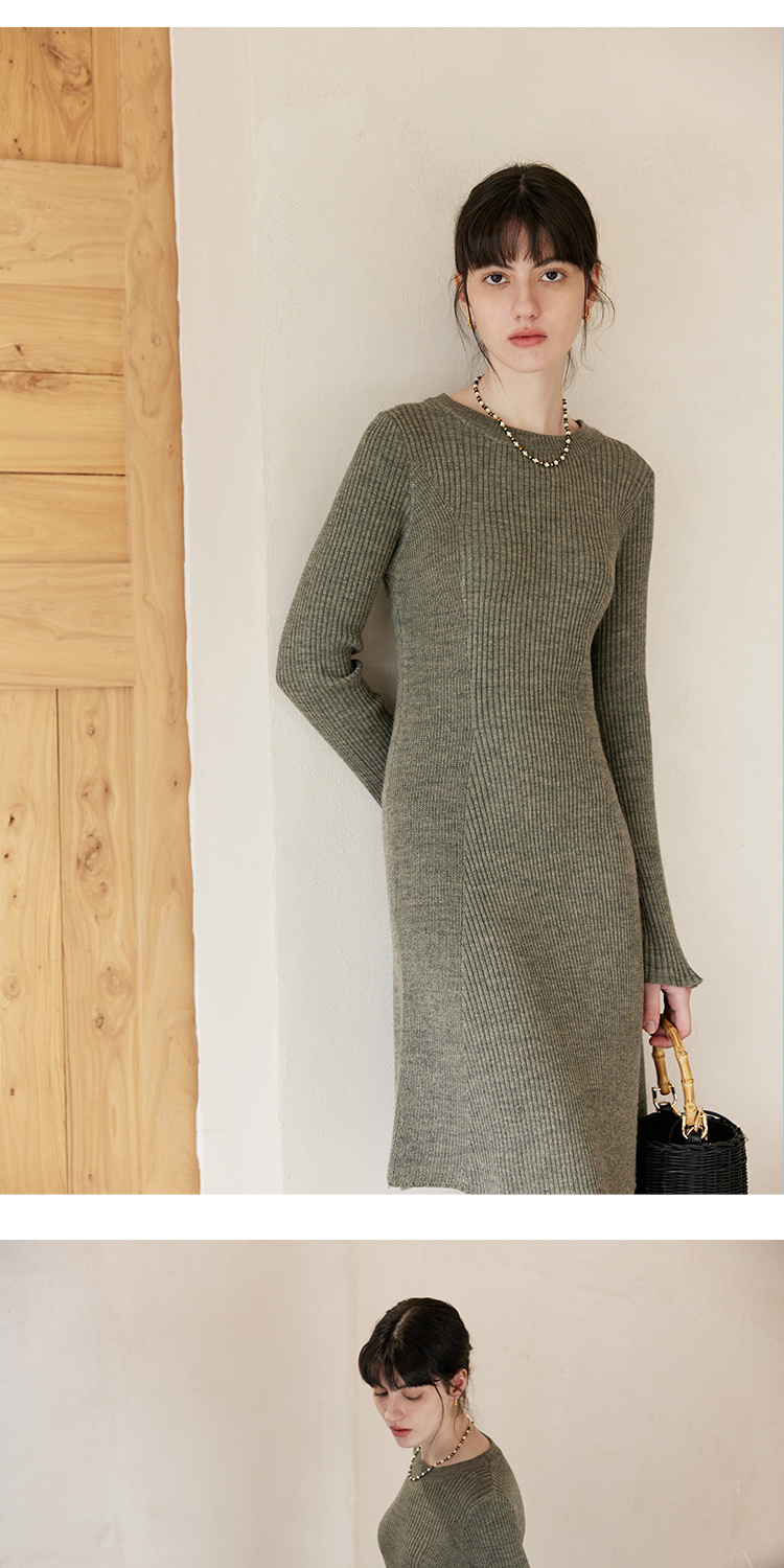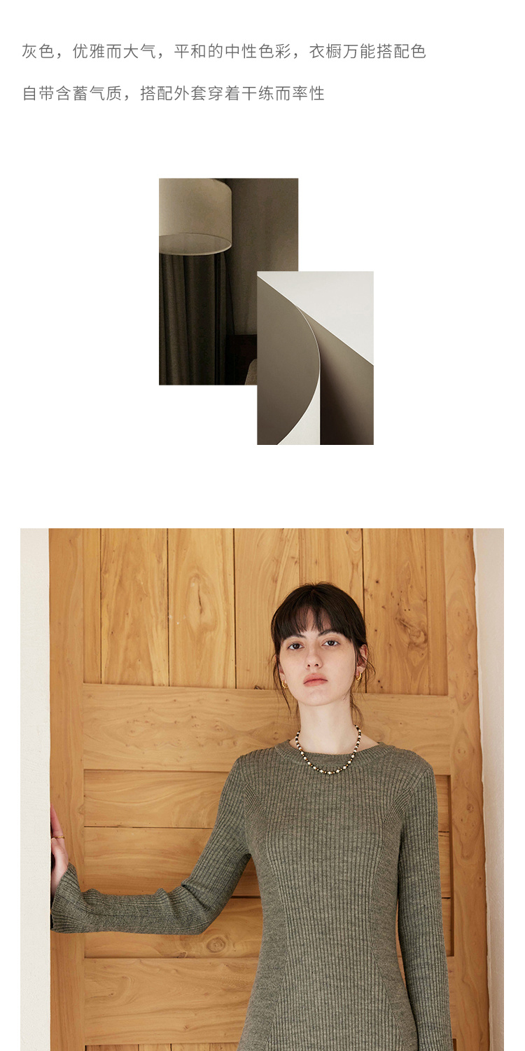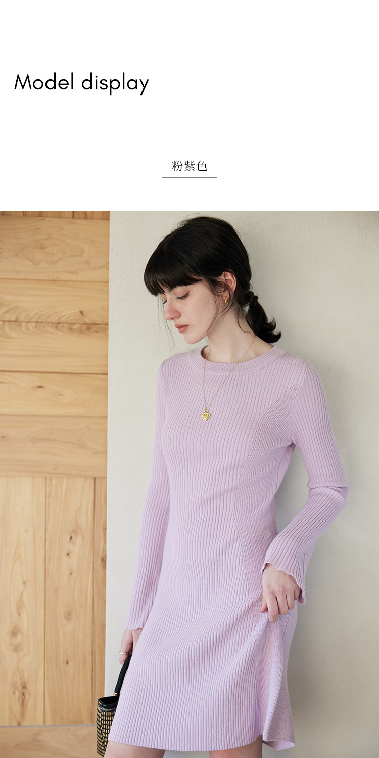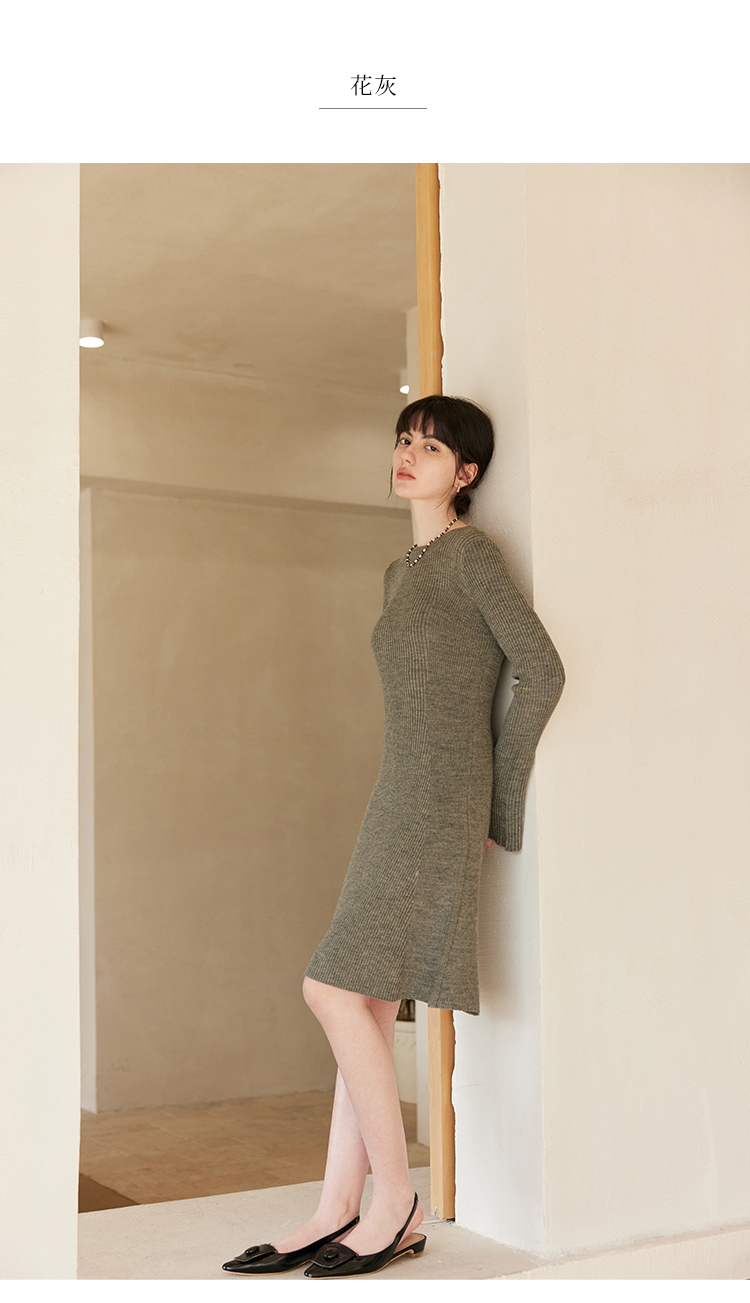 HeyDress针织连衣裙女春秋圆领收腰显瘦中长款气质羊毛内搭裙子