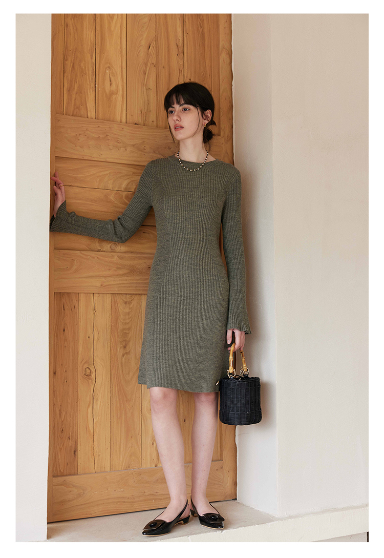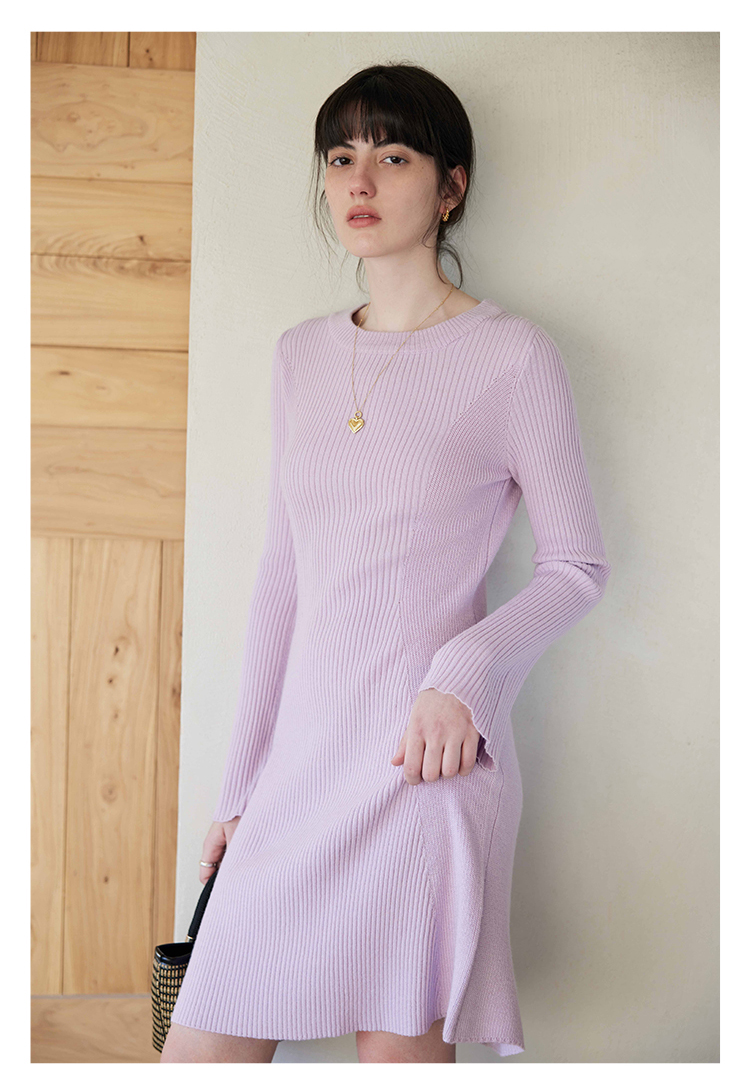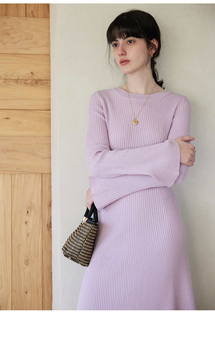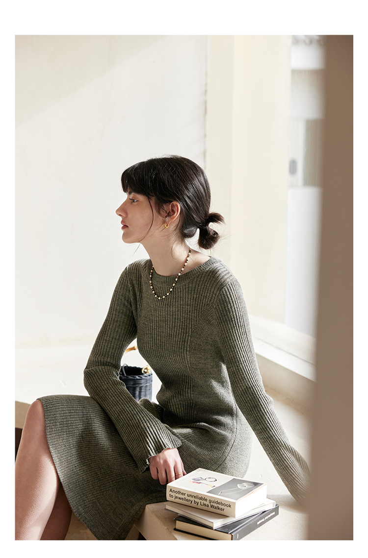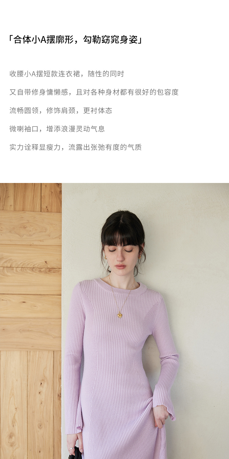 HeyDress针织连衣裙女春秋圆领收腰显瘦中长款气质羊毛内搭裙子