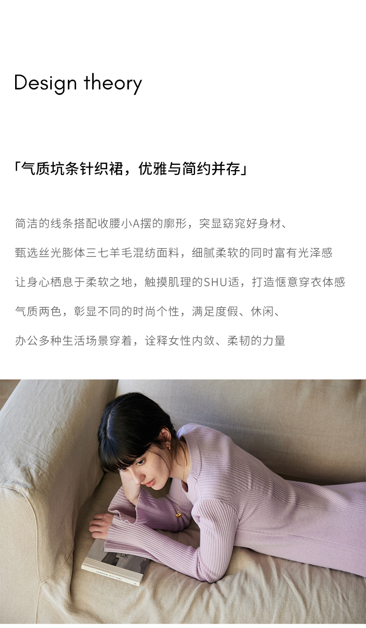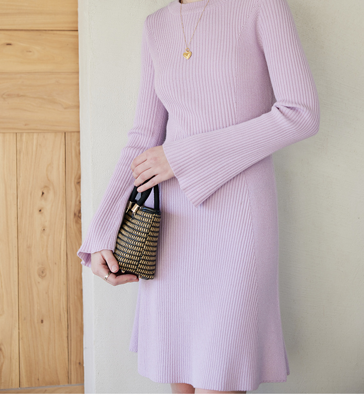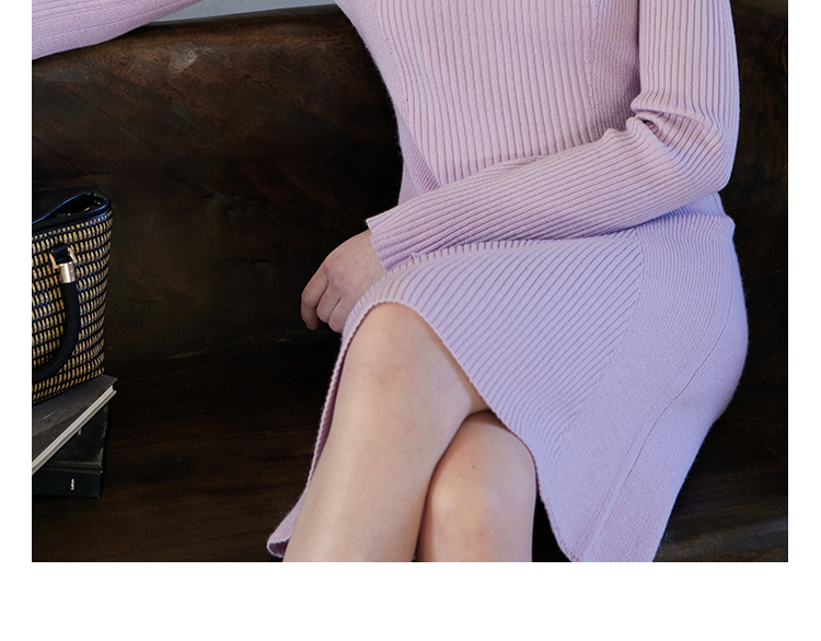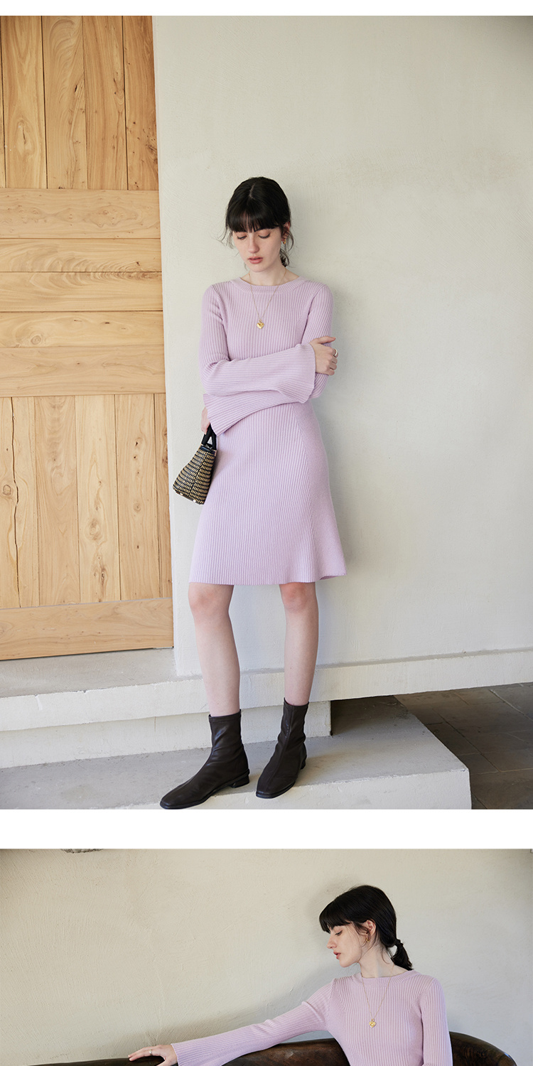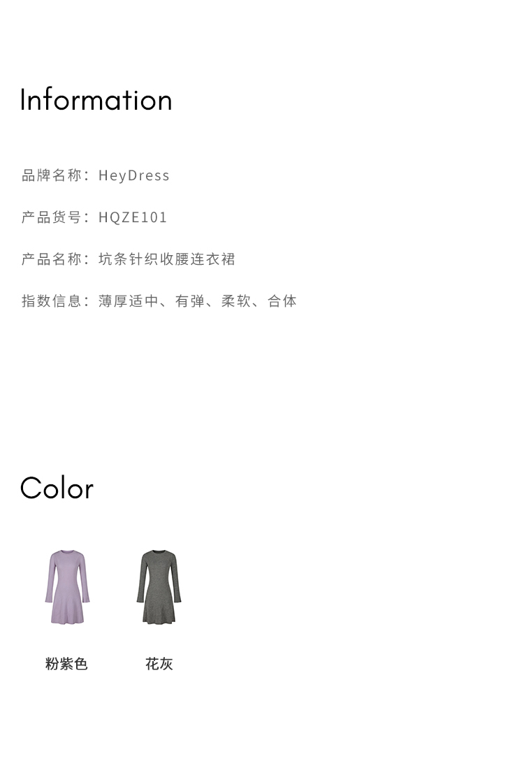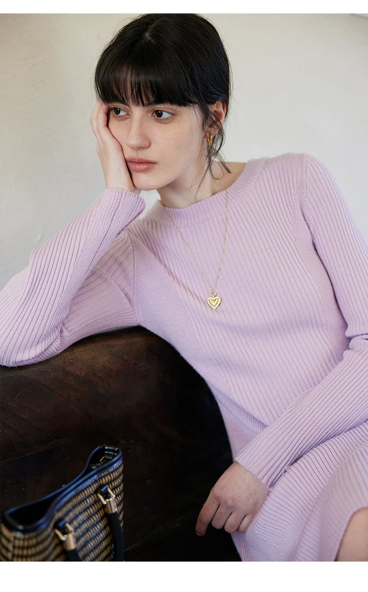HeyDress针织连衣裙女春秋圆领收腰显瘦中长款气质羊毛内搭裙子