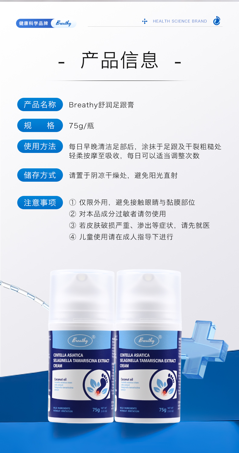 【温和润护】布雷辛Breathy舒润足跟修护膏 呵护双脚 干裂/死皮/老茧一键重启 75g/瓶