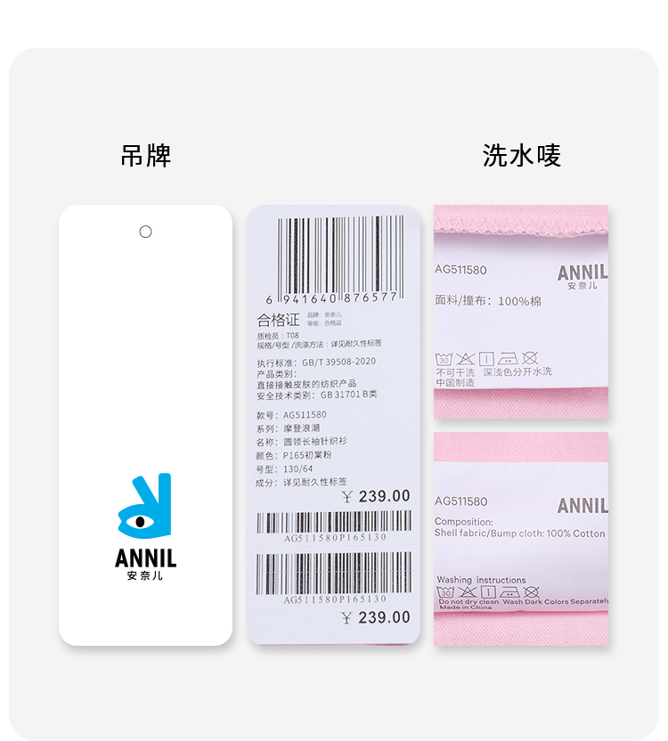 女童圆领液氨长袖针织衫春季新款安奈儿童装实体店同款AG511580