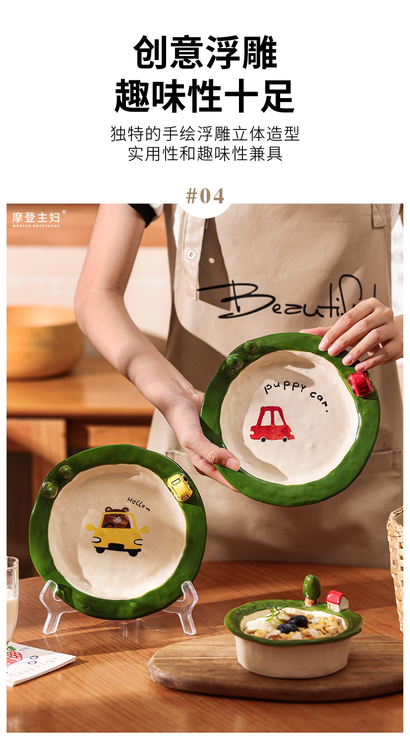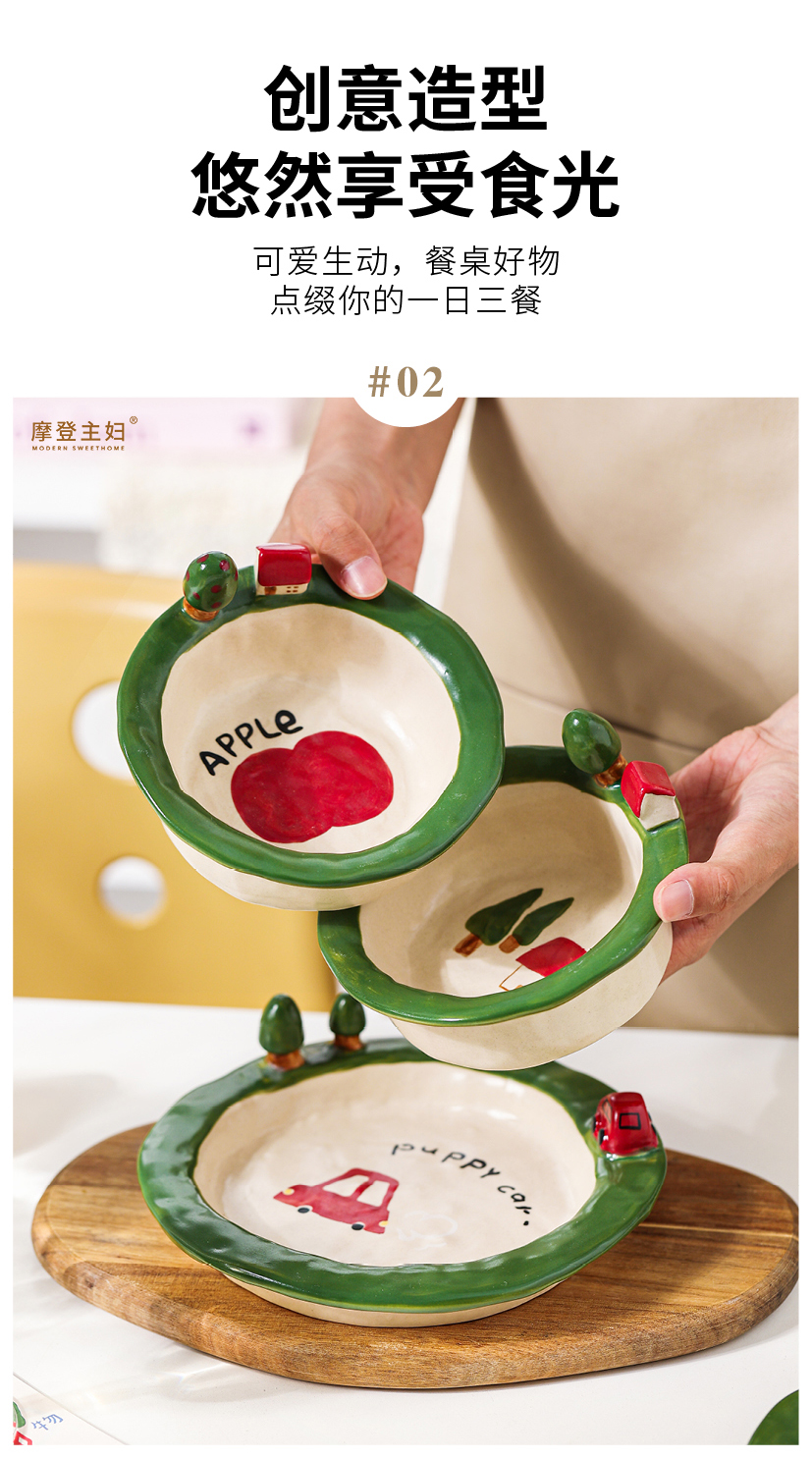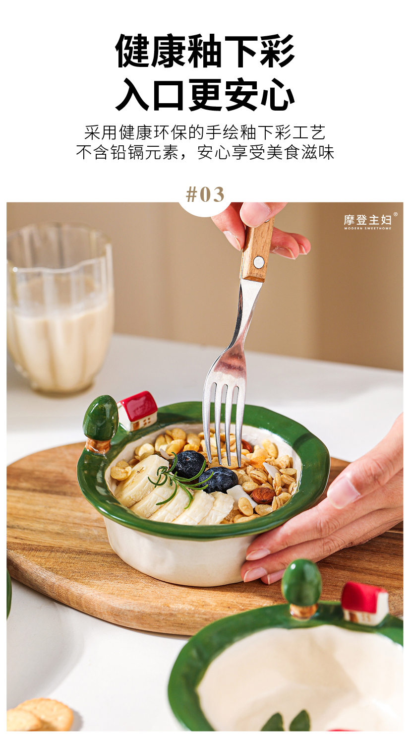 摩登主妇釉下彩水果盘子一人食可爱餐具漂亮早餐盘碗具沙拉酸奶碗