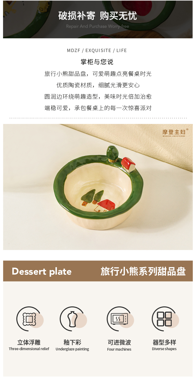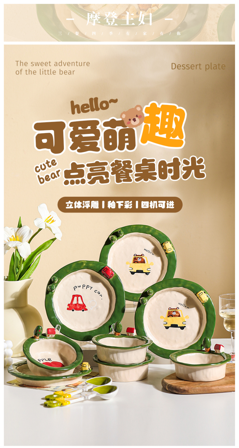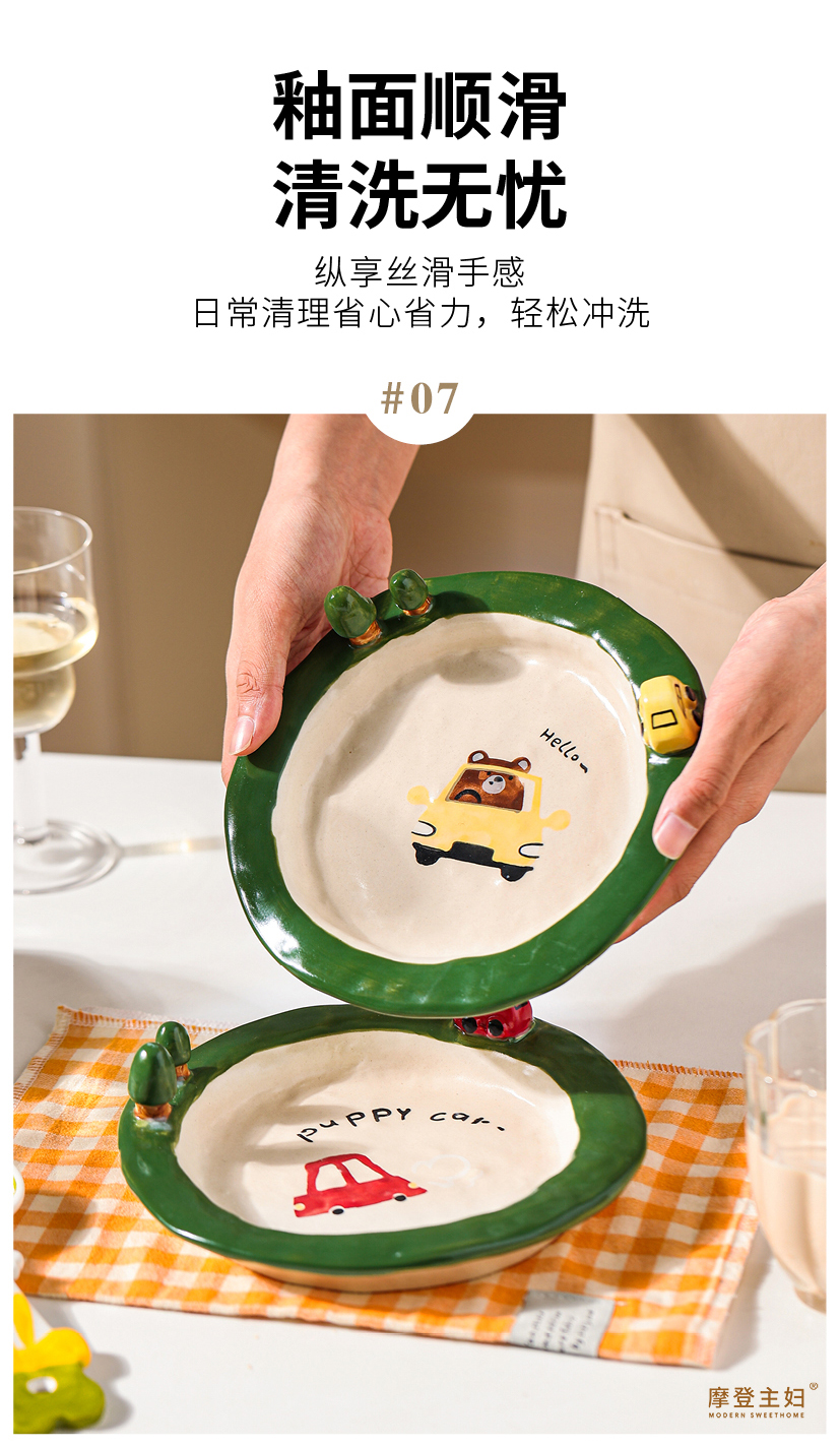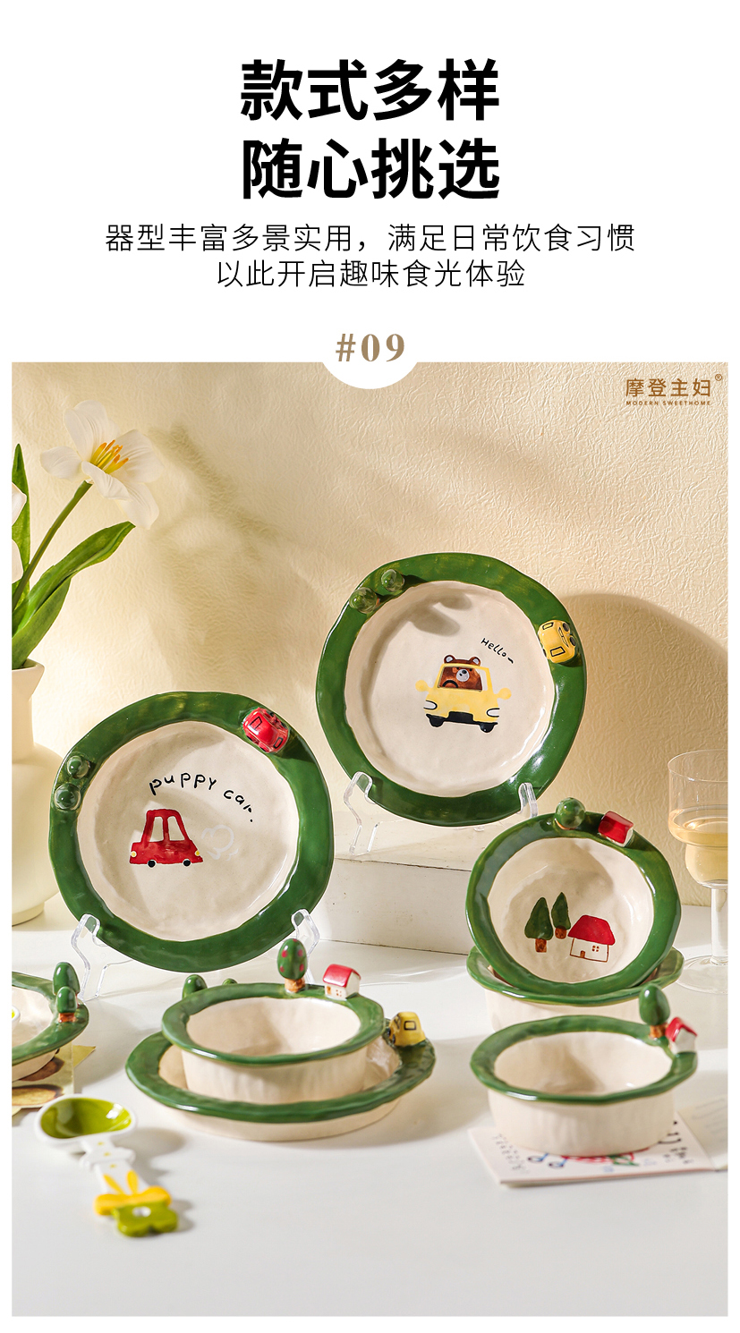 摩登主妇釉下彩水果盘子一人食可爱餐具漂亮早餐盘碗具沙拉酸奶碗