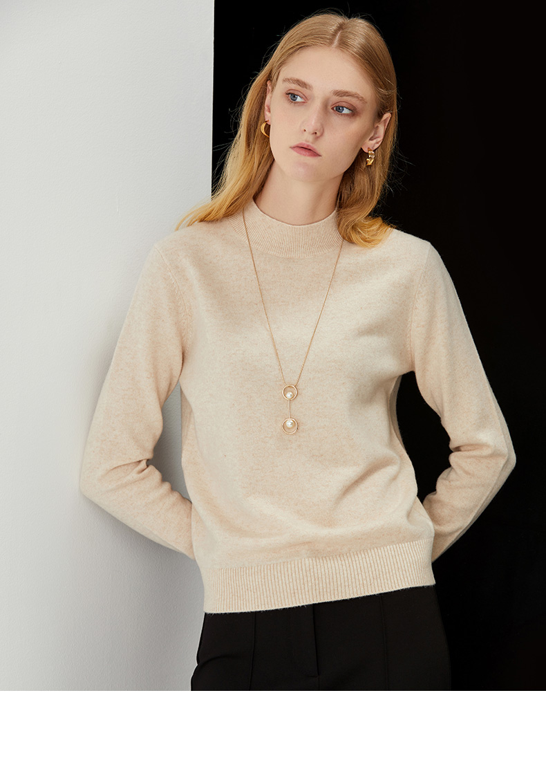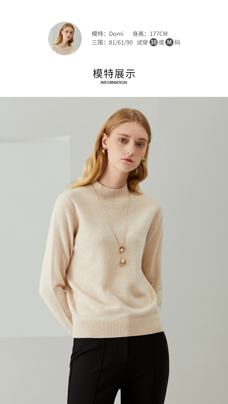 EITIE爱特爱秋季新款半高领纯色舒适纯羊毛针织衫上衣女套头C2101804