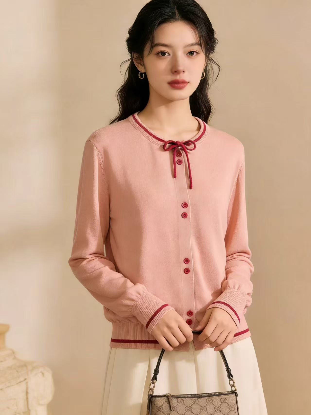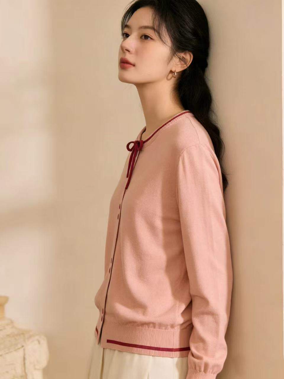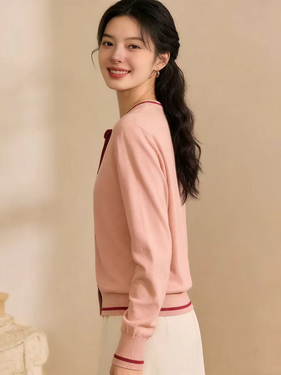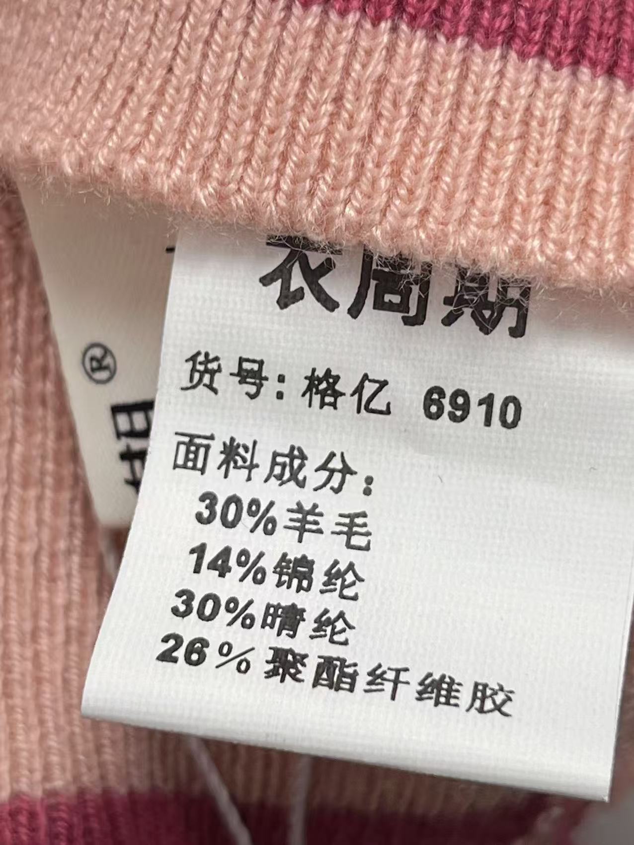品牌促➡️春薄款羊毛衫【自营】衣周期格亿(30%羊毛)6910针织拼色条羊毛开衫-喜出