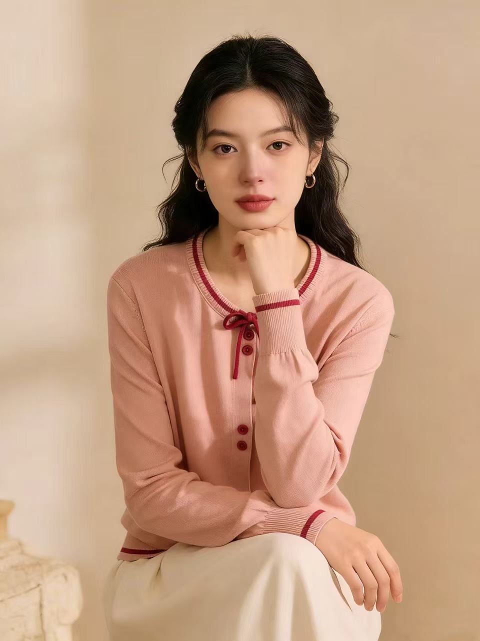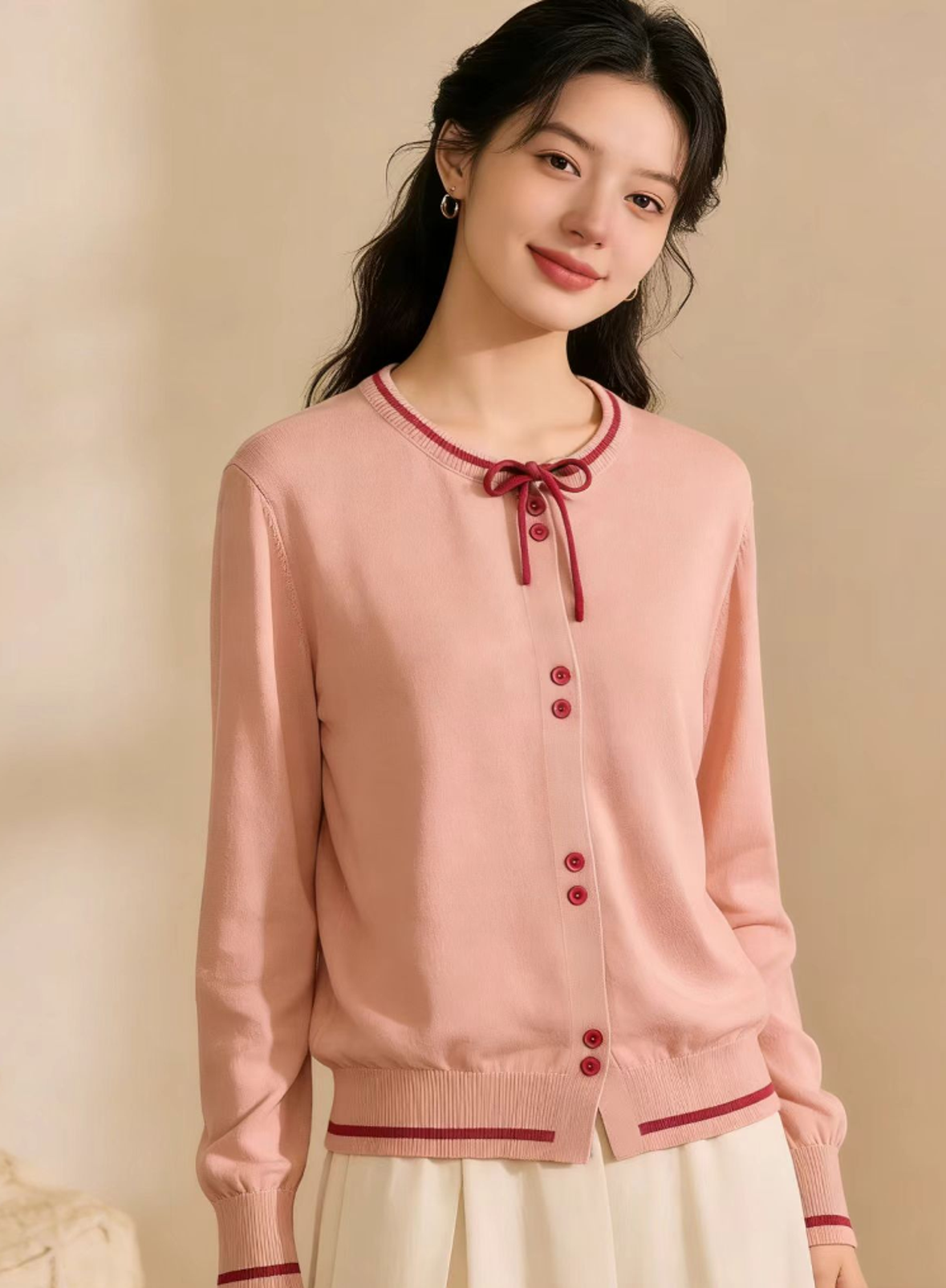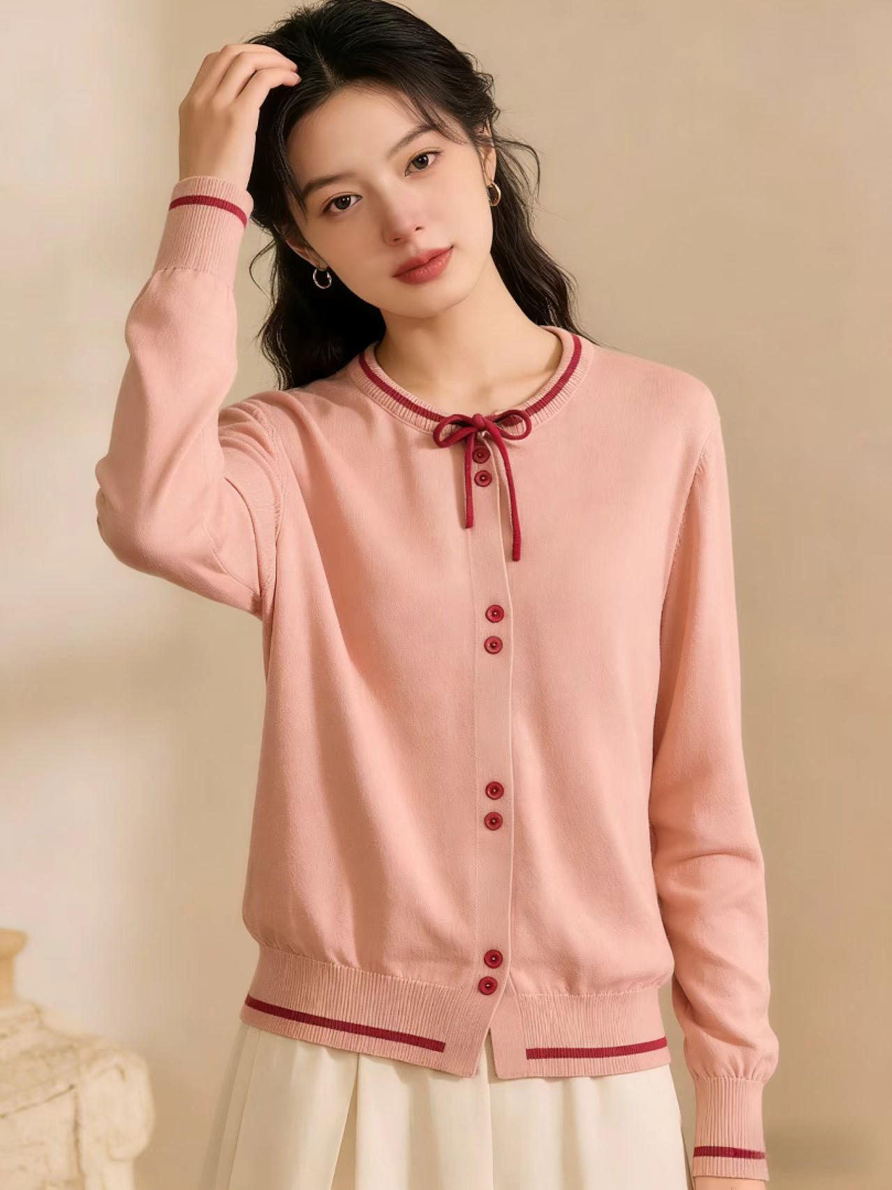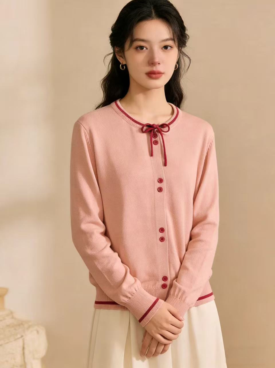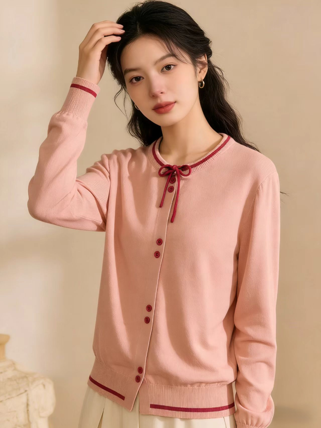 品牌促➡️春薄款羊毛衫【自营】衣周期格亿(30%羊毛)6910针织拼色条羊毛开衫-喜出