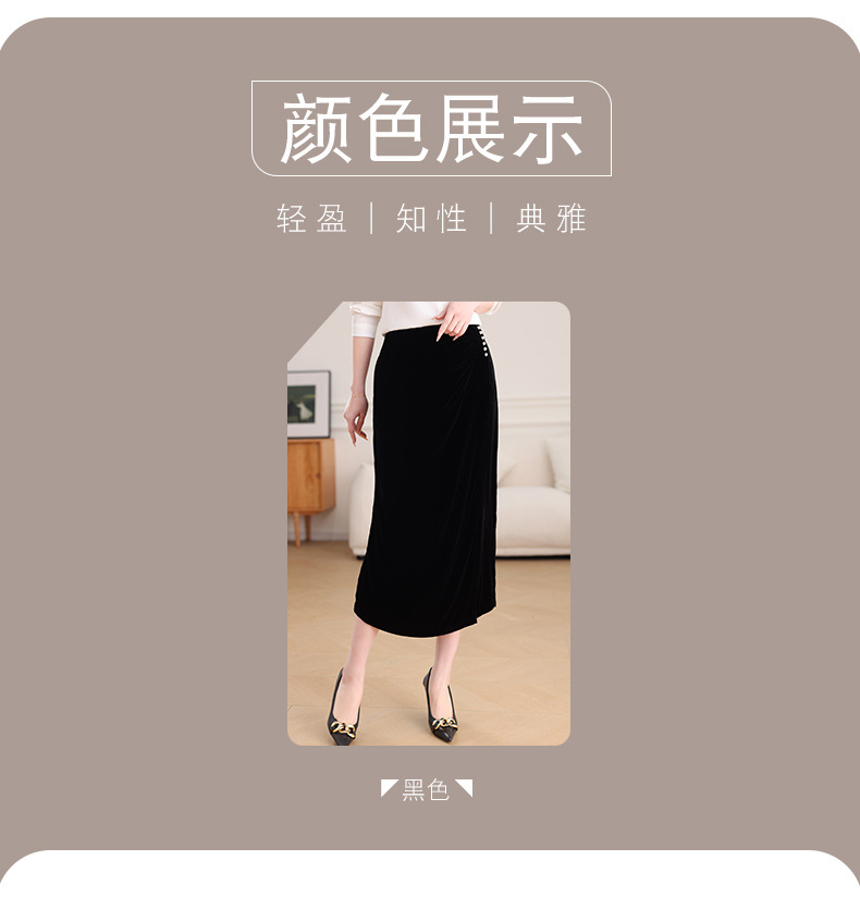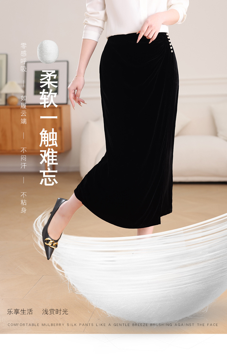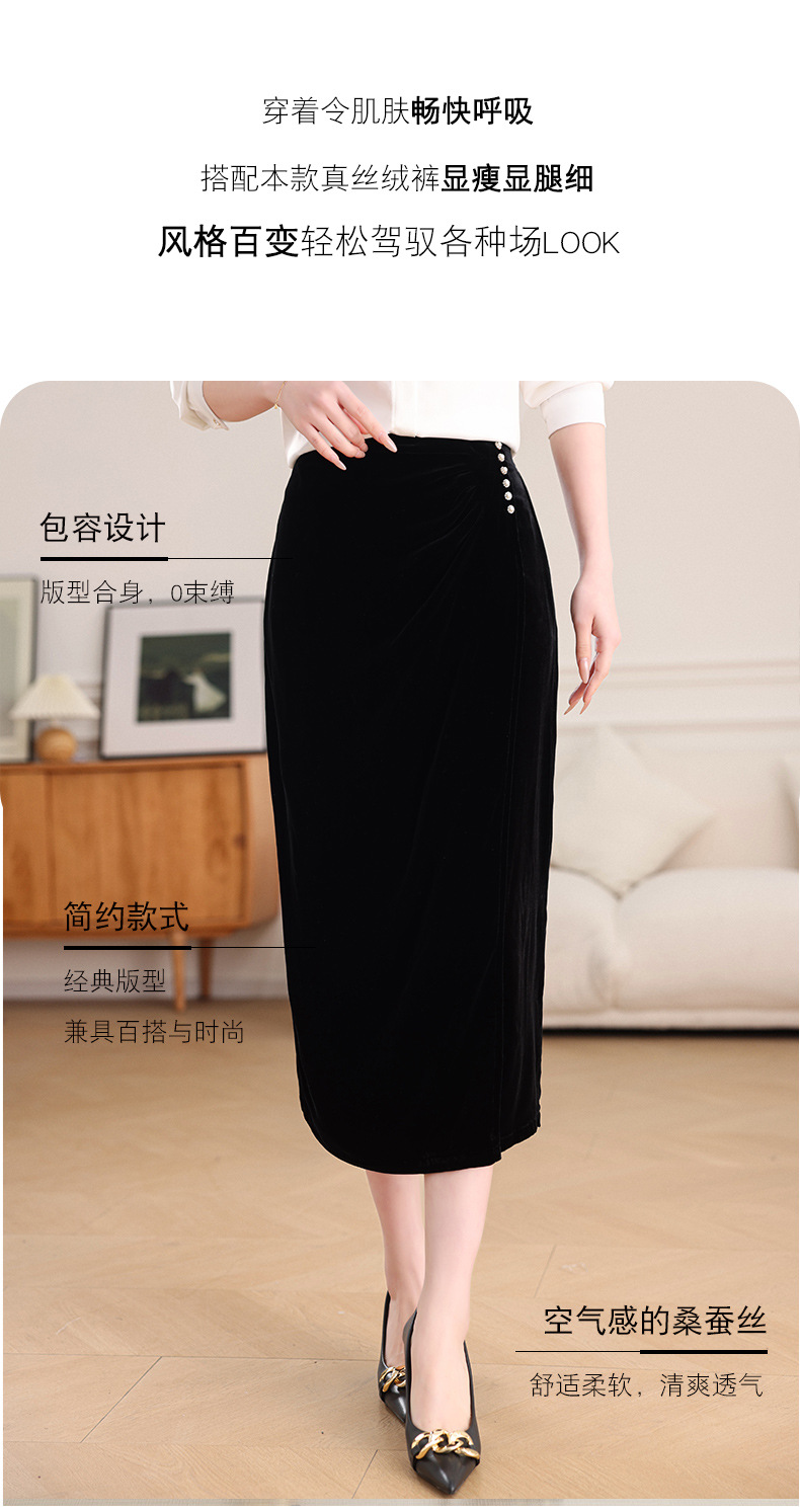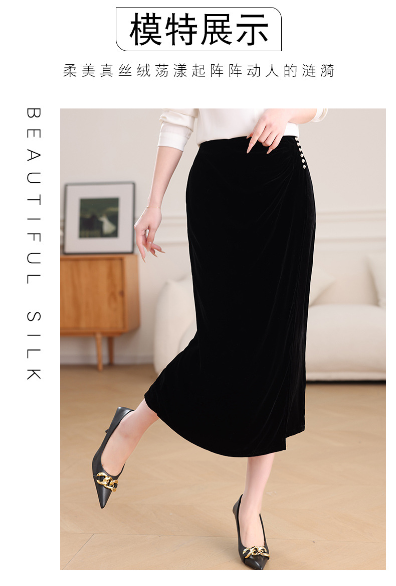 丁摩垂感真丝丝绒包臀裙女新款通勤优雅一步裙中长款显瘦半身裙AL7637