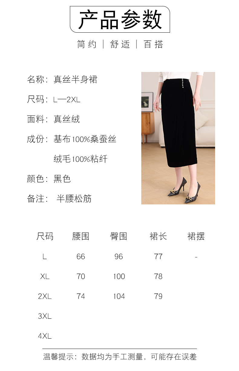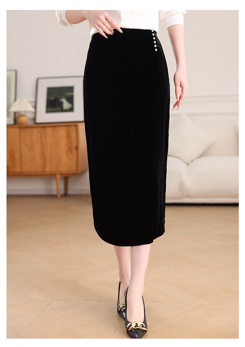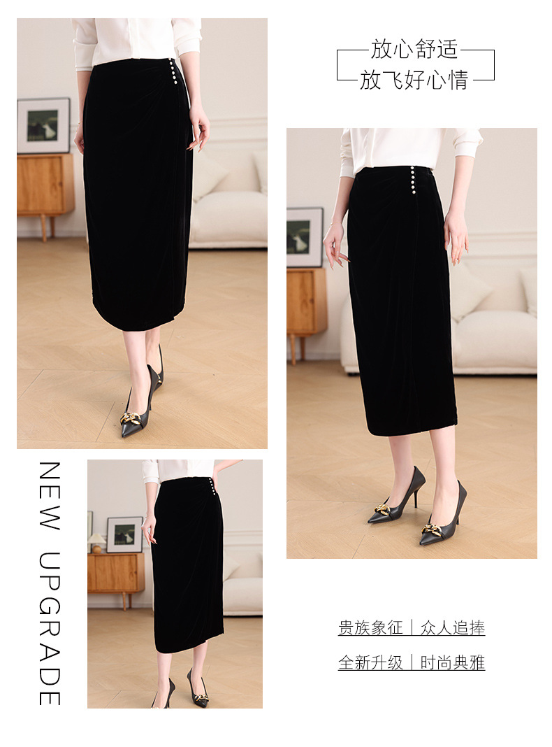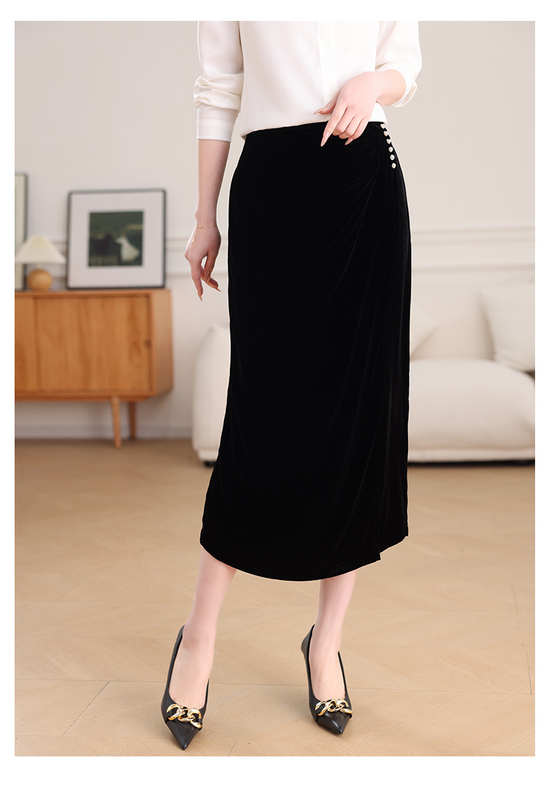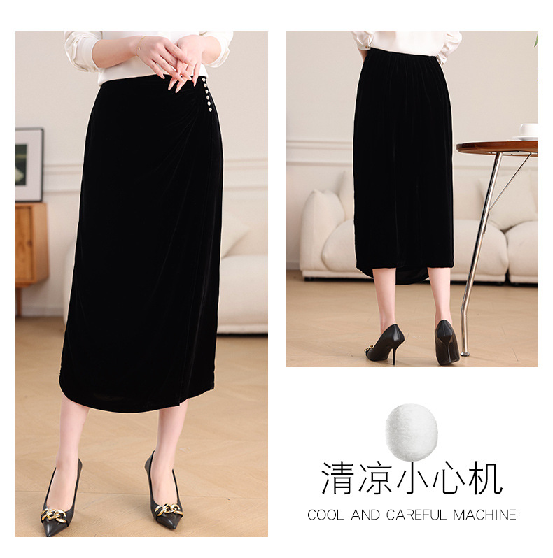 丁摩垂感真丝丝绒包臀裙女新款通勤优雅一步裙中长款显瘦半身裙AL7637