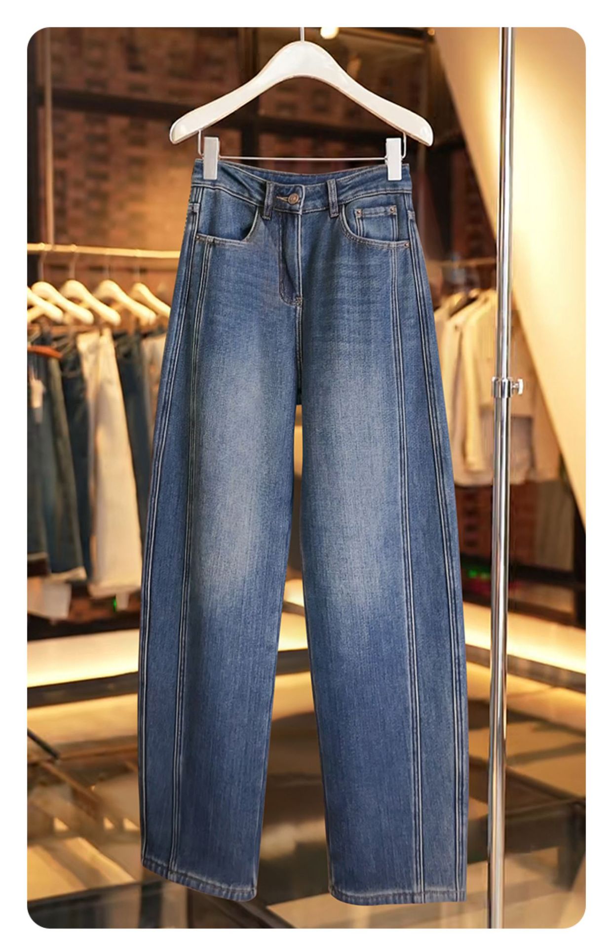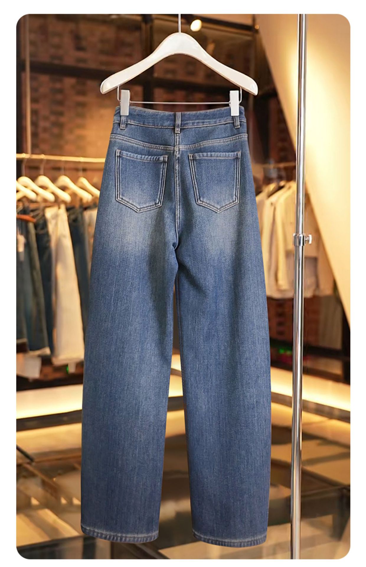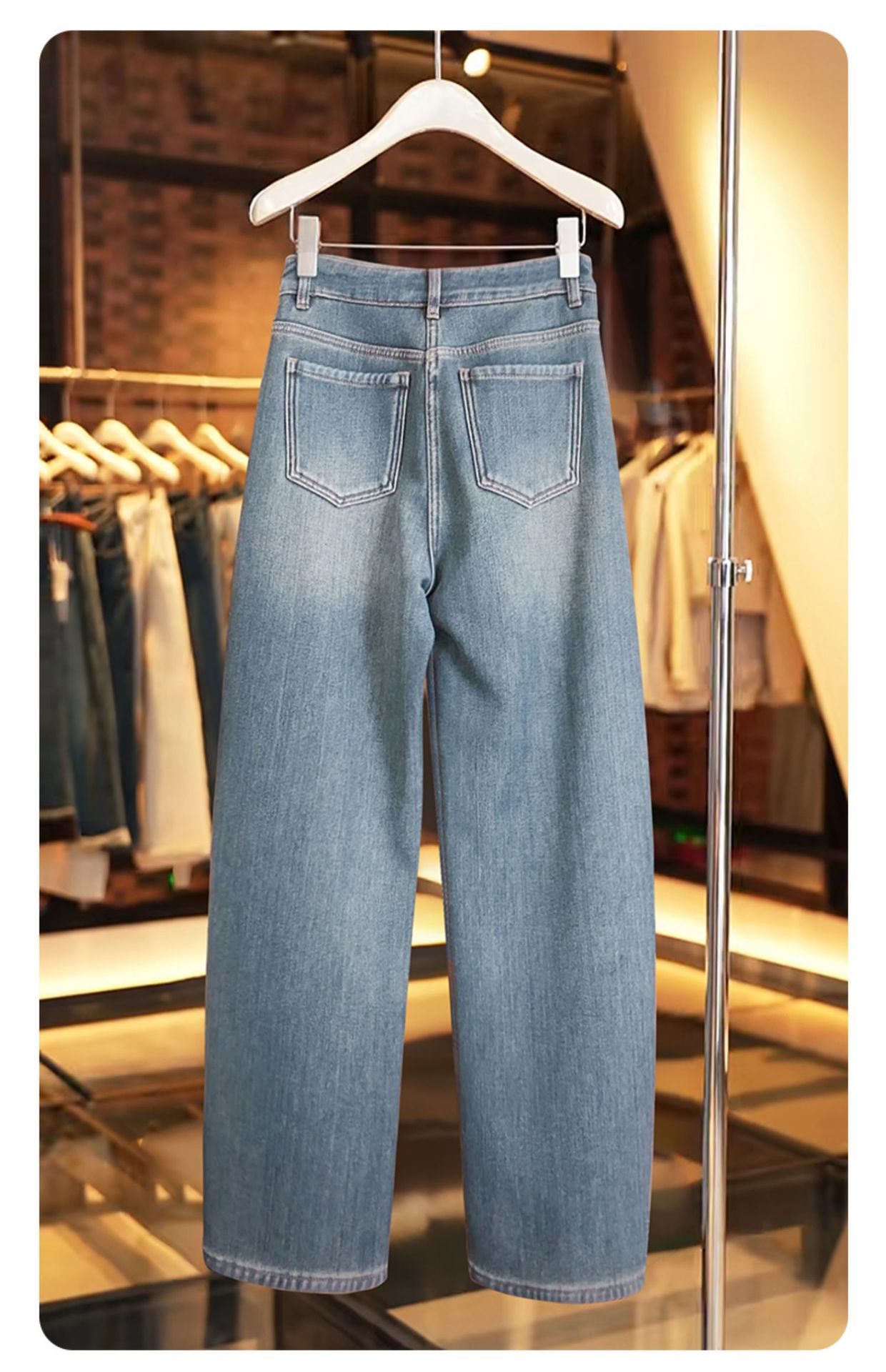 丁摩 弯刀裤小个子牛仔裤女春秋季新款时尚香蕉裤九分阔腿裤子6ZF-2538