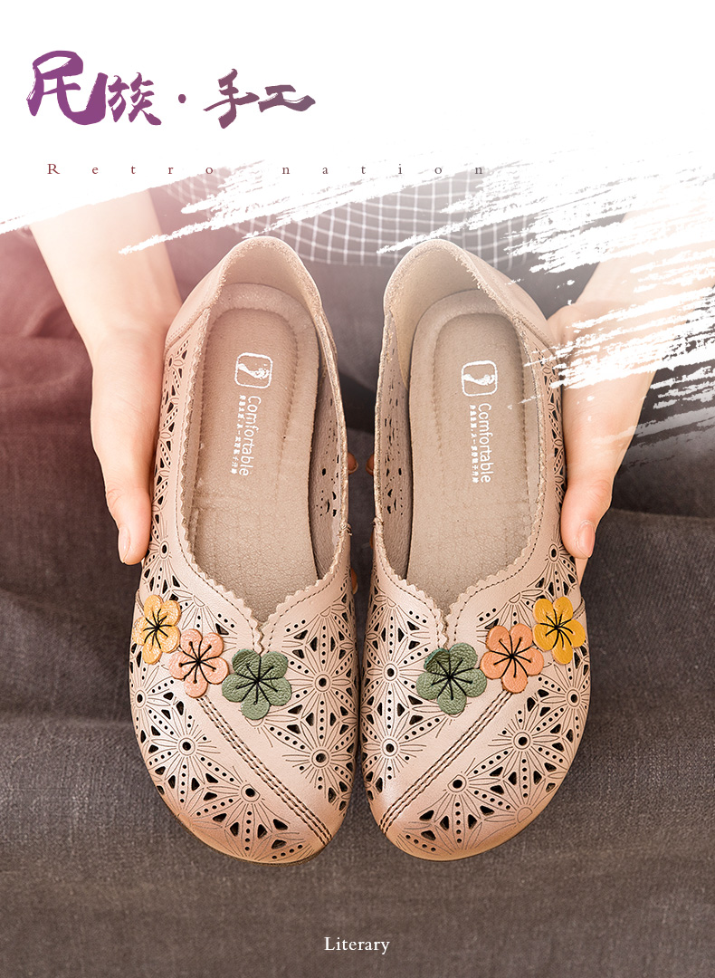 夏季民族风新款防滑软底镂空中老年洞洞鞋