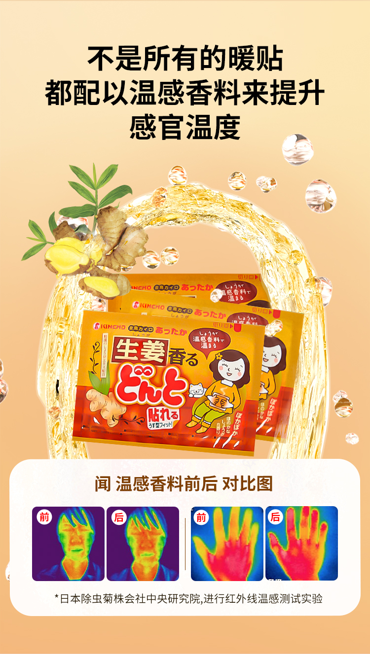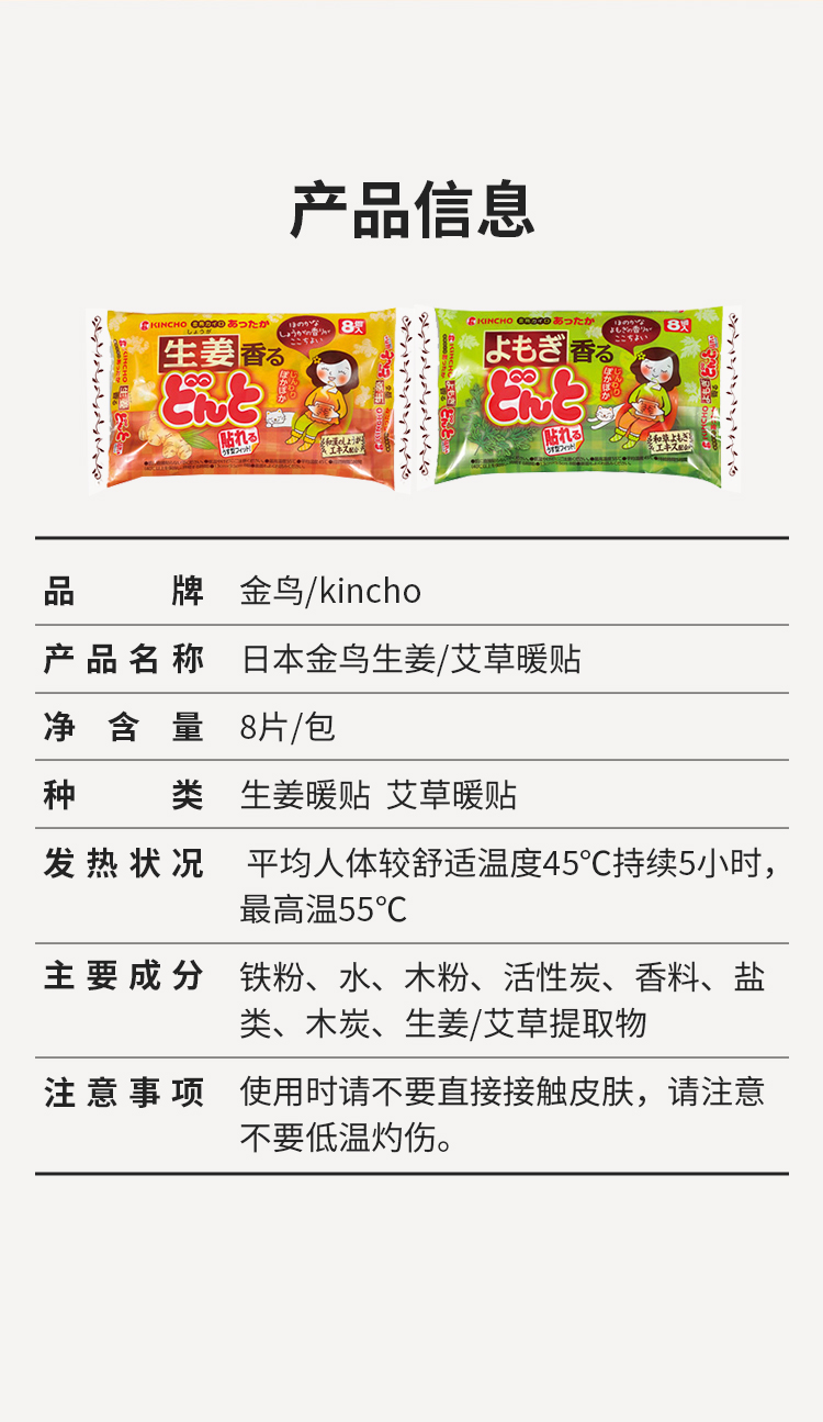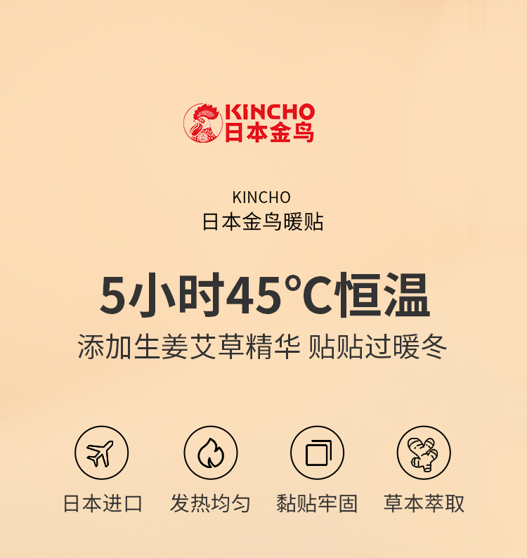 kincho金鸟日本进口暖贴暖宝宝贴女自发热温暖腹部调理艾草生姜暖贴