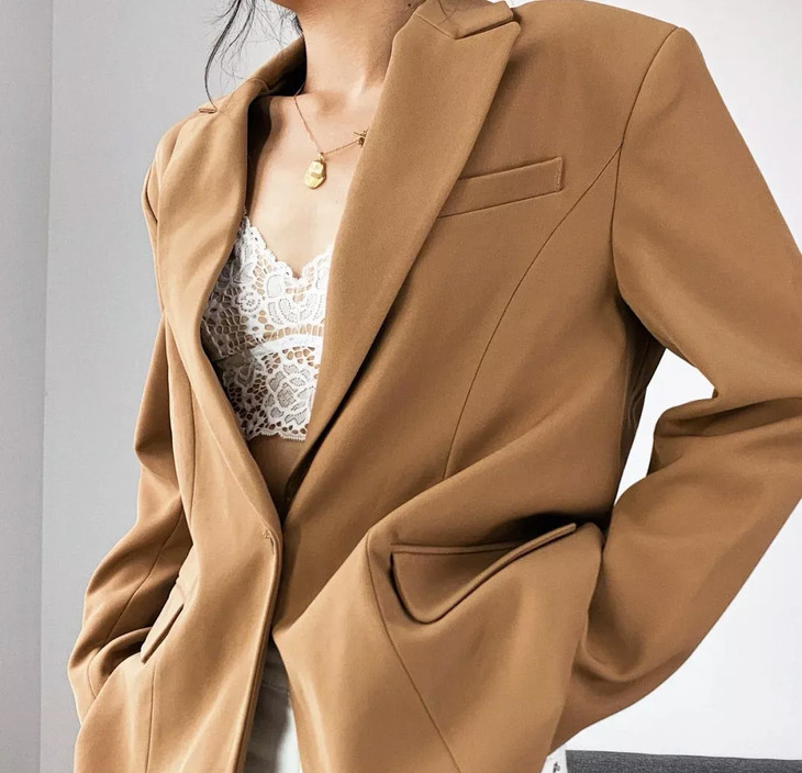 深V领设计,无论是穿T恤、衬衣还是直接穿外套,它都能最大化露出你的锁骨和事业线,优雅又性感。