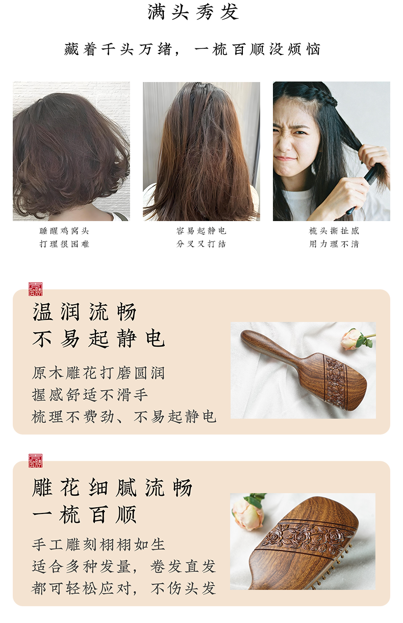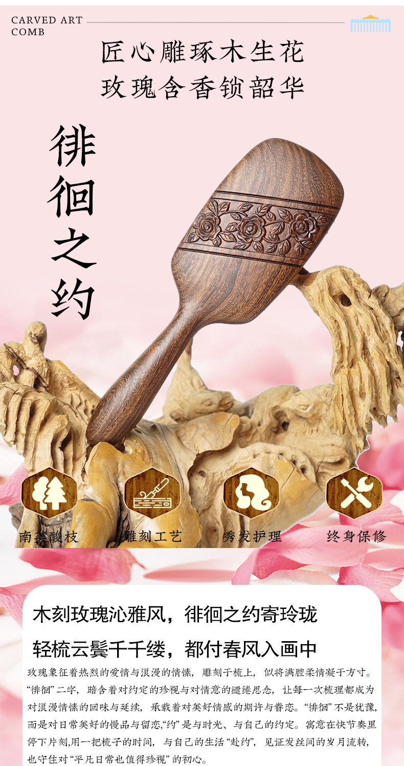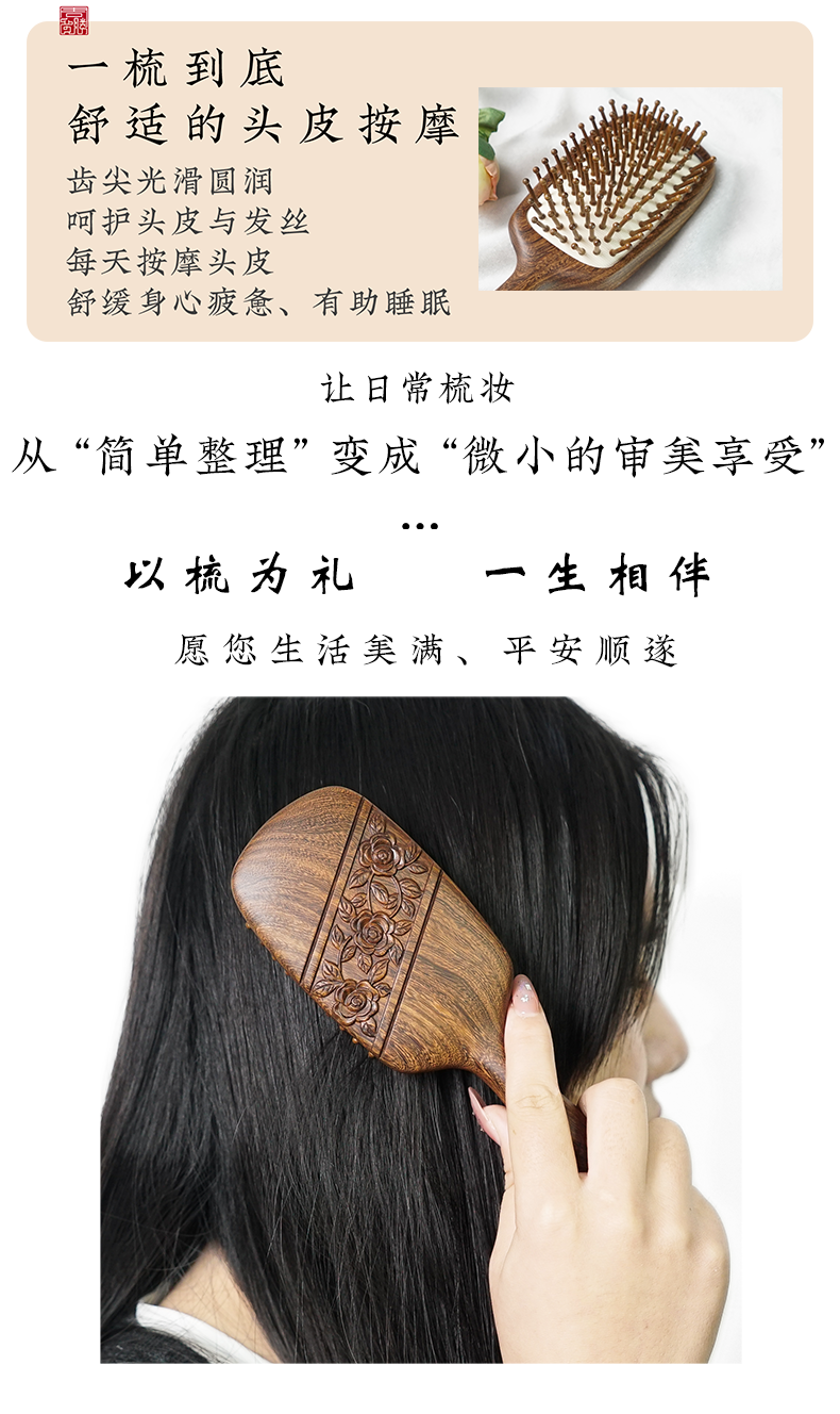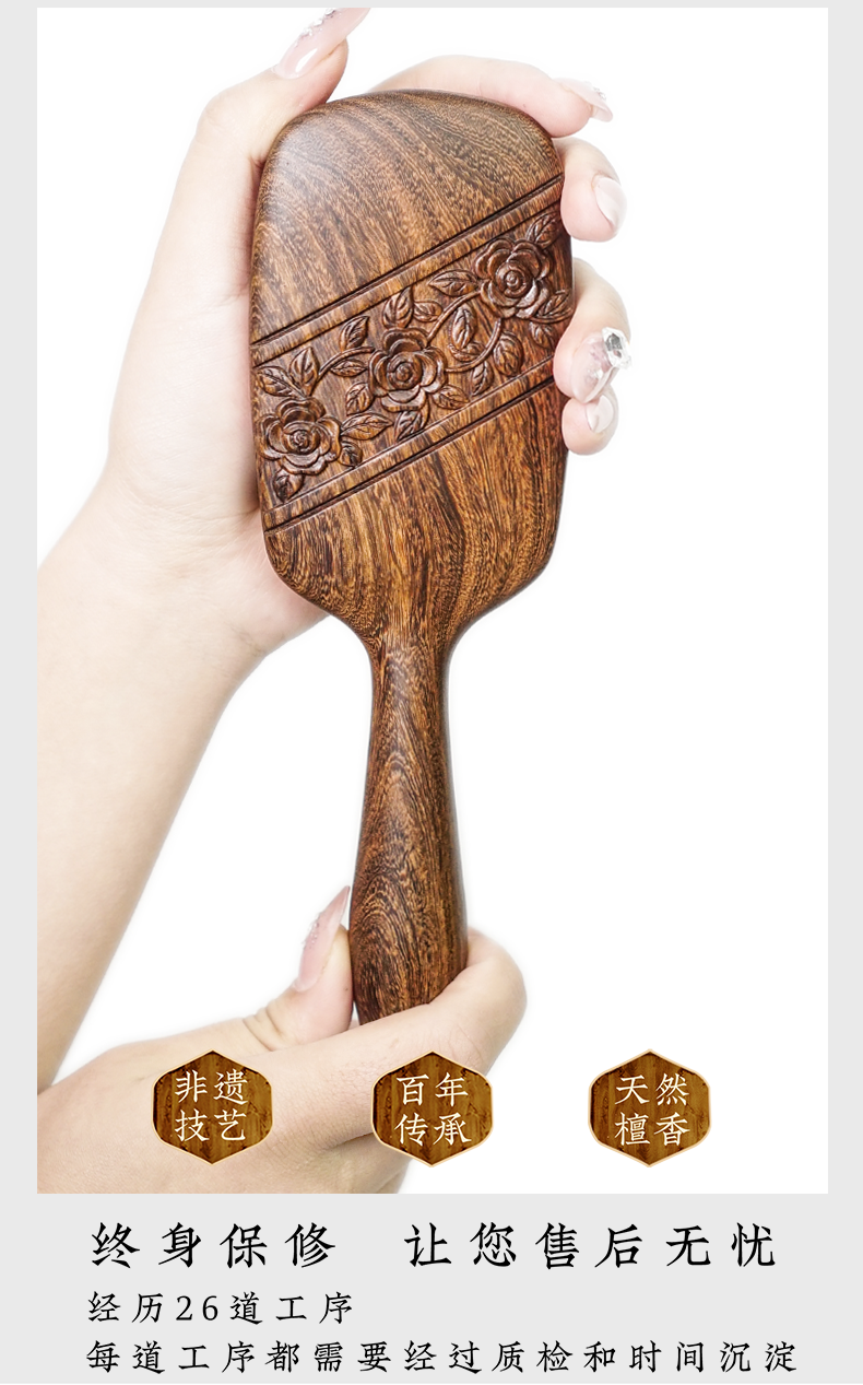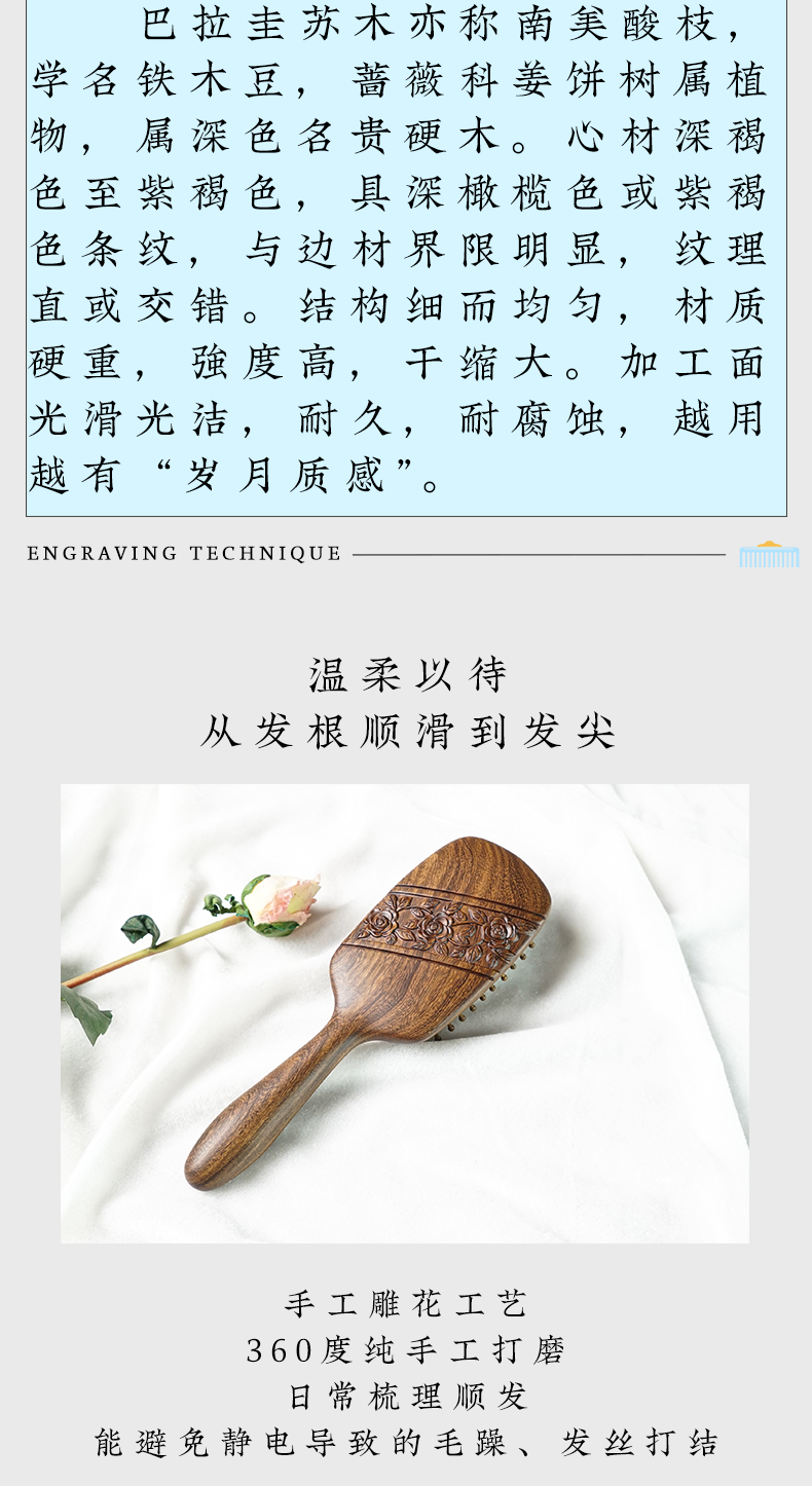 周广胜正品天然南美酸枝徘徊之约雕花气垫按摩梳女士专用顺发蓬松