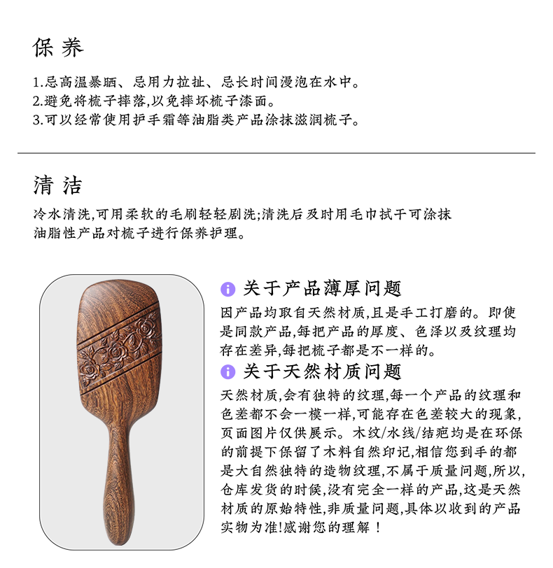 周广胜天然沉贵宝木雕花兰栖气垫梳头皮按摩便携护发蓬松