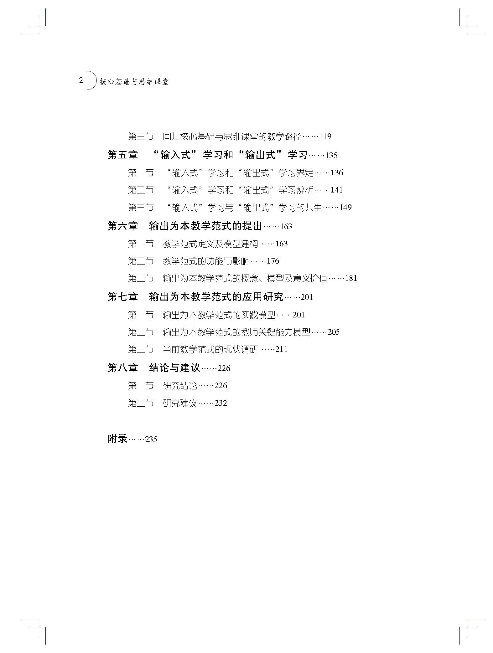 《核心基础与思维课堂》围绕“核心基础”和“思维课堂”,论述了基础教育的本质、基础教育的核心基础、基础教育的国际比较研究、回归核心基础的思维课堂教学研究、输入式学习和输出式学习、输出为本教学范式的提出、输出为本教学范式的应用研究等问题,探索出打造思维型课堂的关键举措,并进一步开发出思维型课堂的关键工具,以及落实思维型课堂的学具。这些工具和学具有效且普遍适用于各学科的课堂教学。