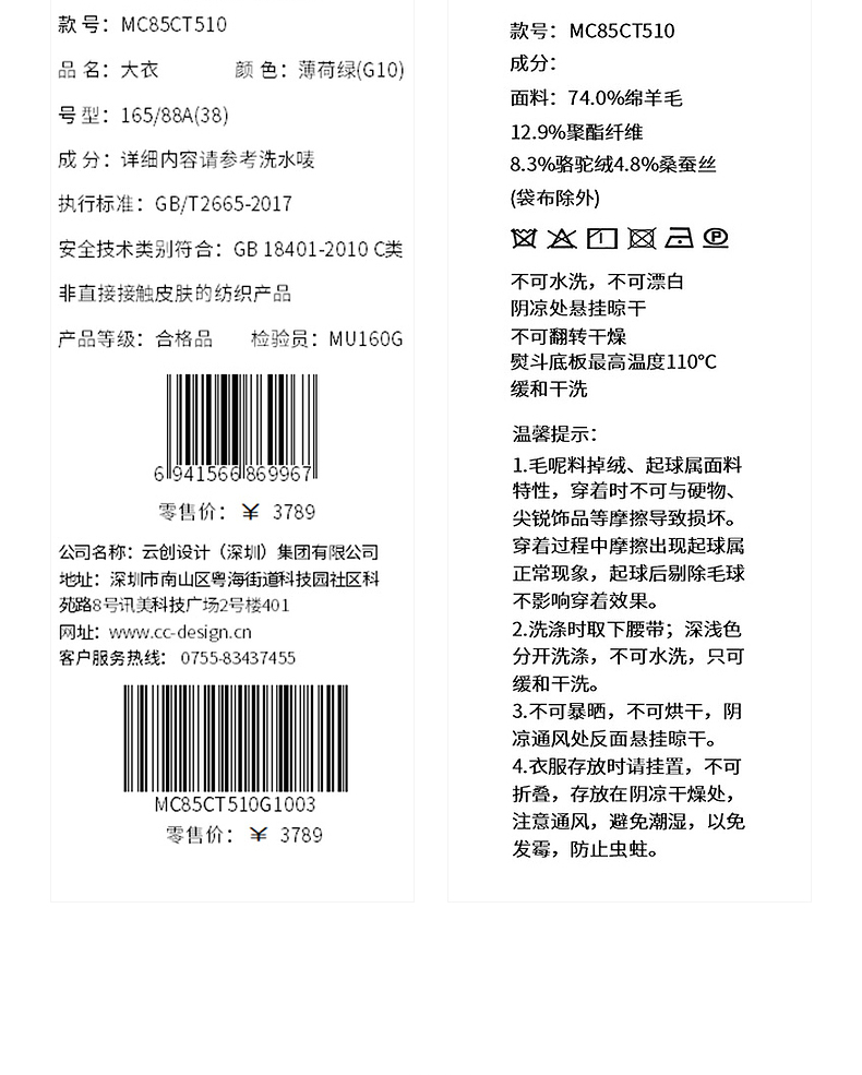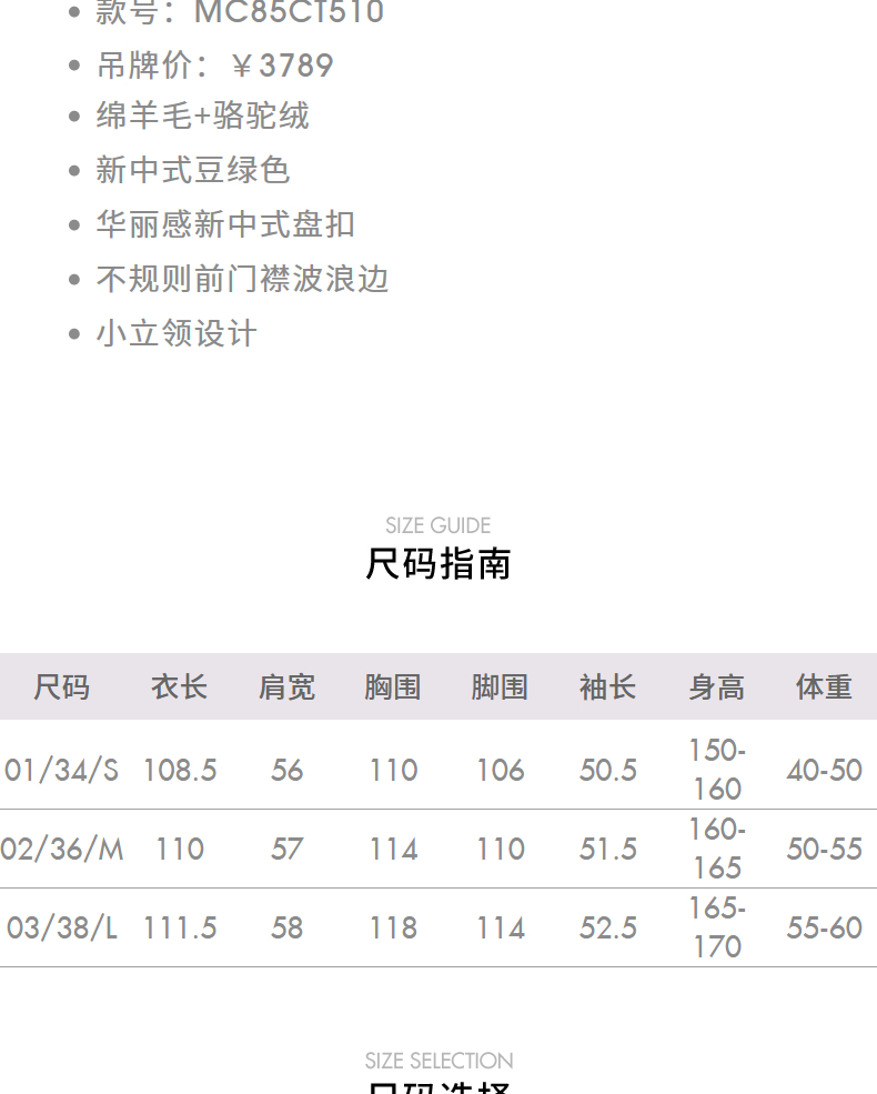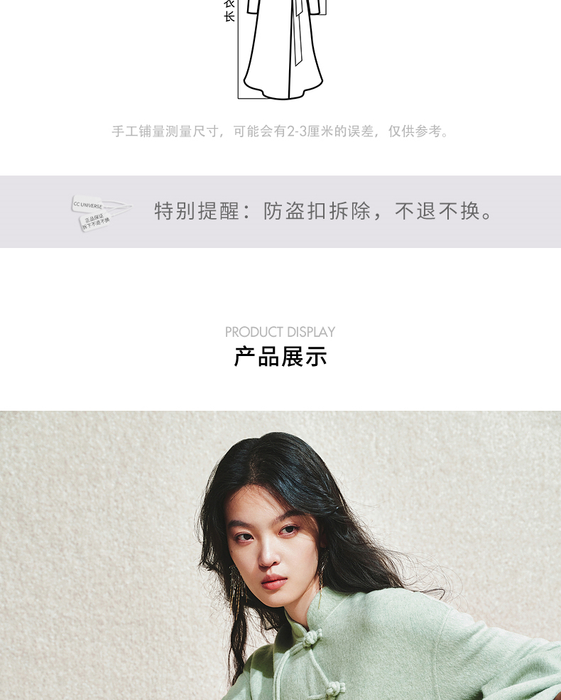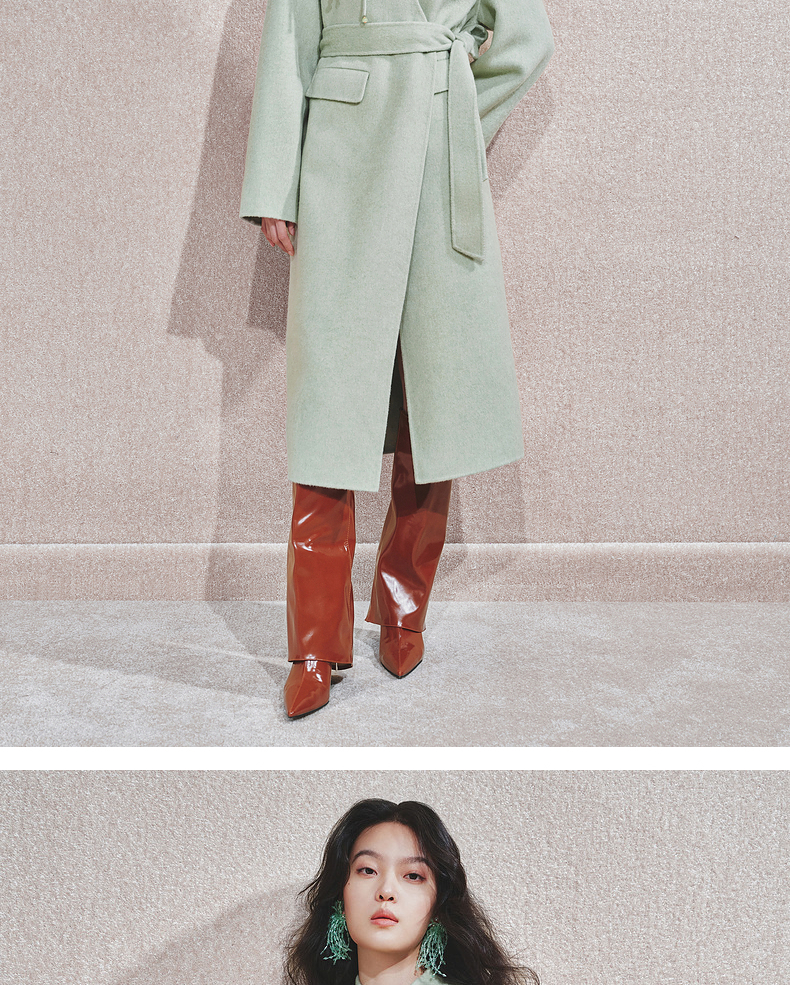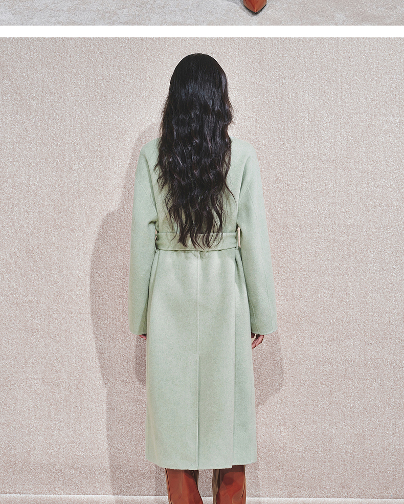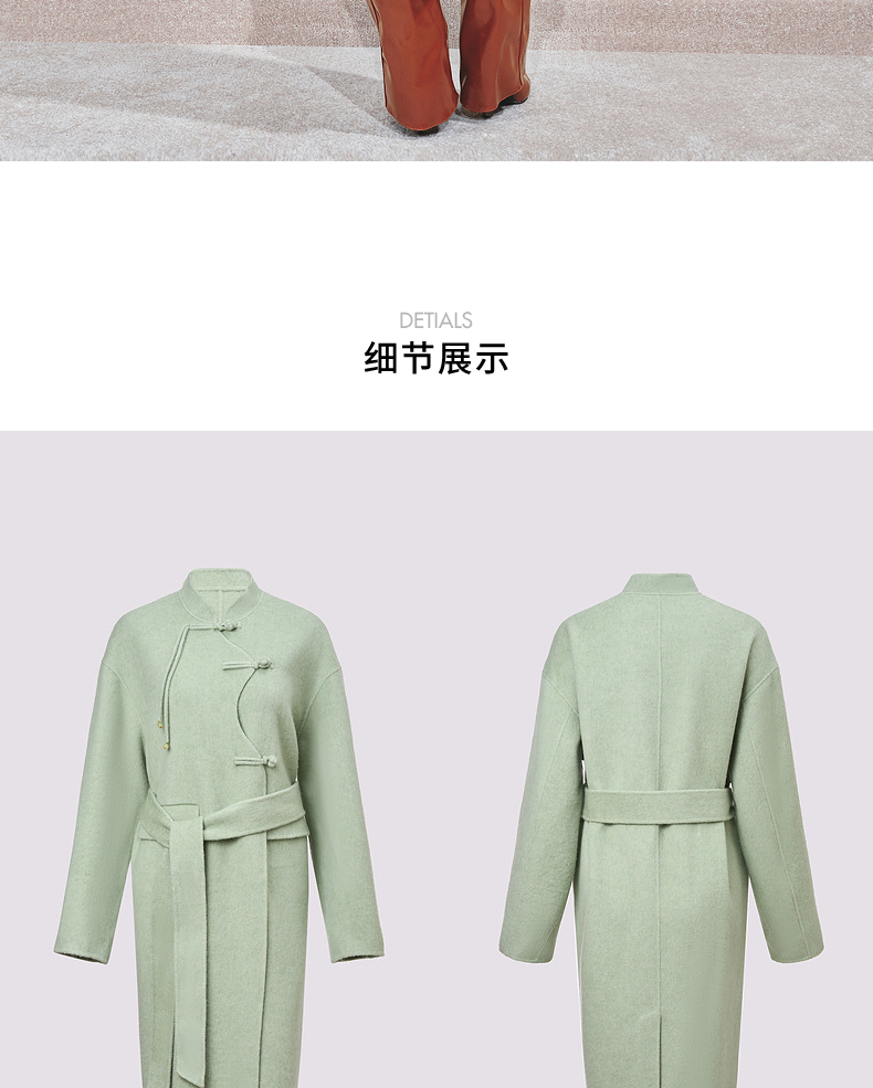 【商场同款】MAXRIENY豆绿流苏盘扣羊毛大衣女24冬保暖外套中长款(货号:MC85CT510)