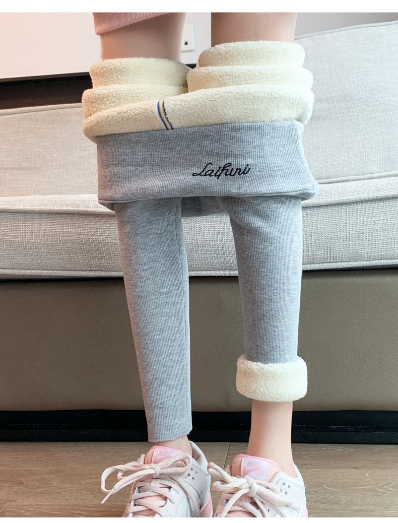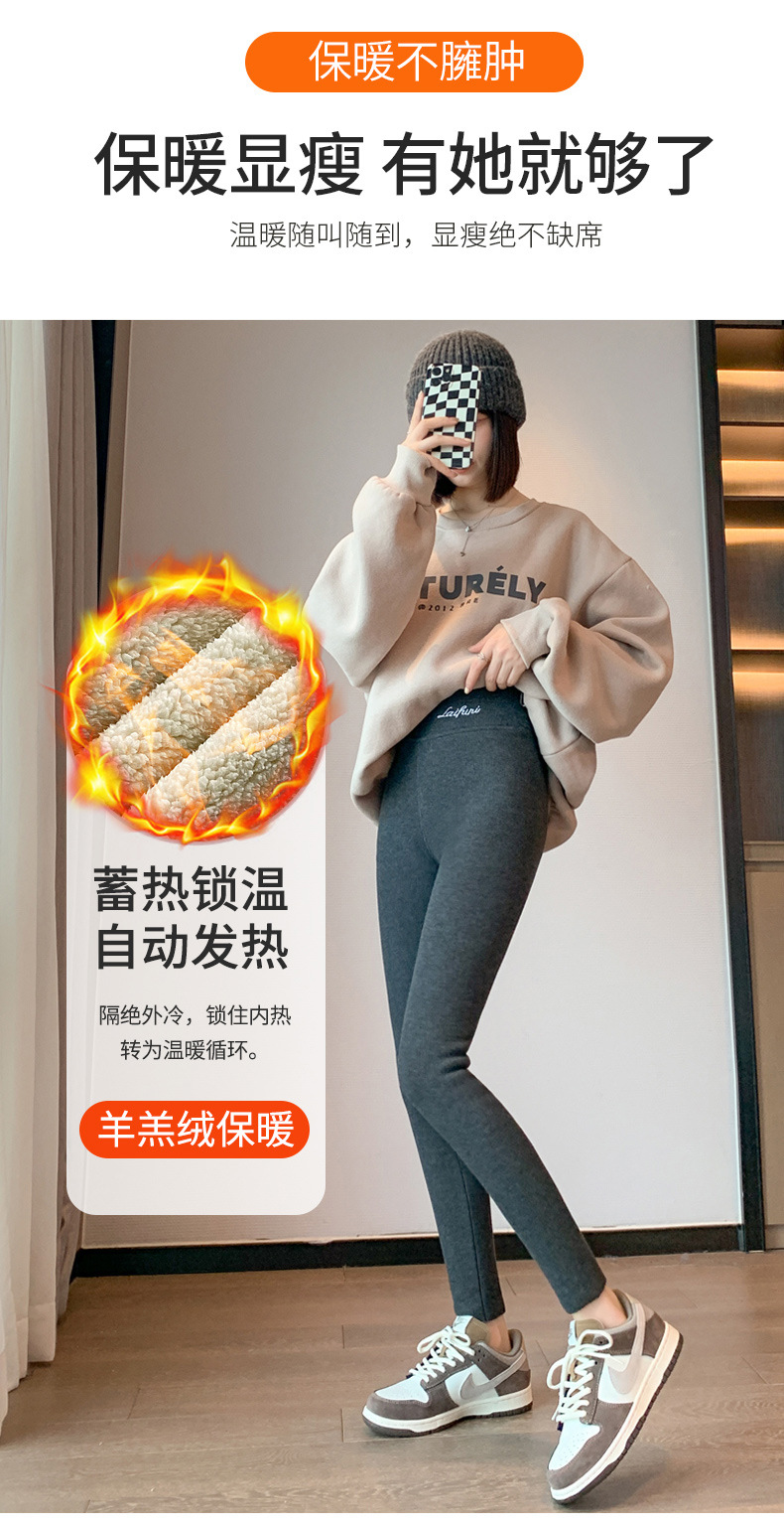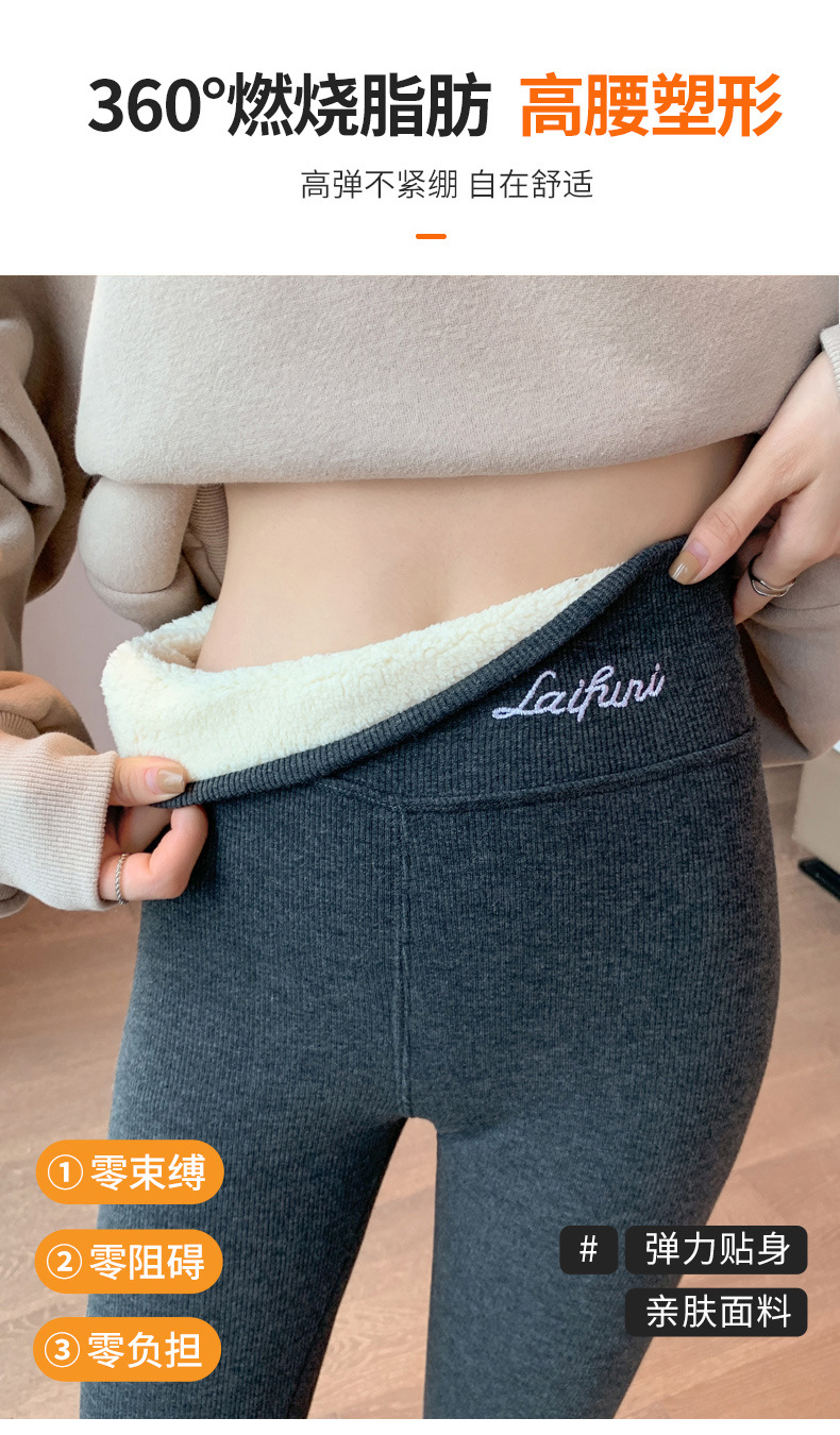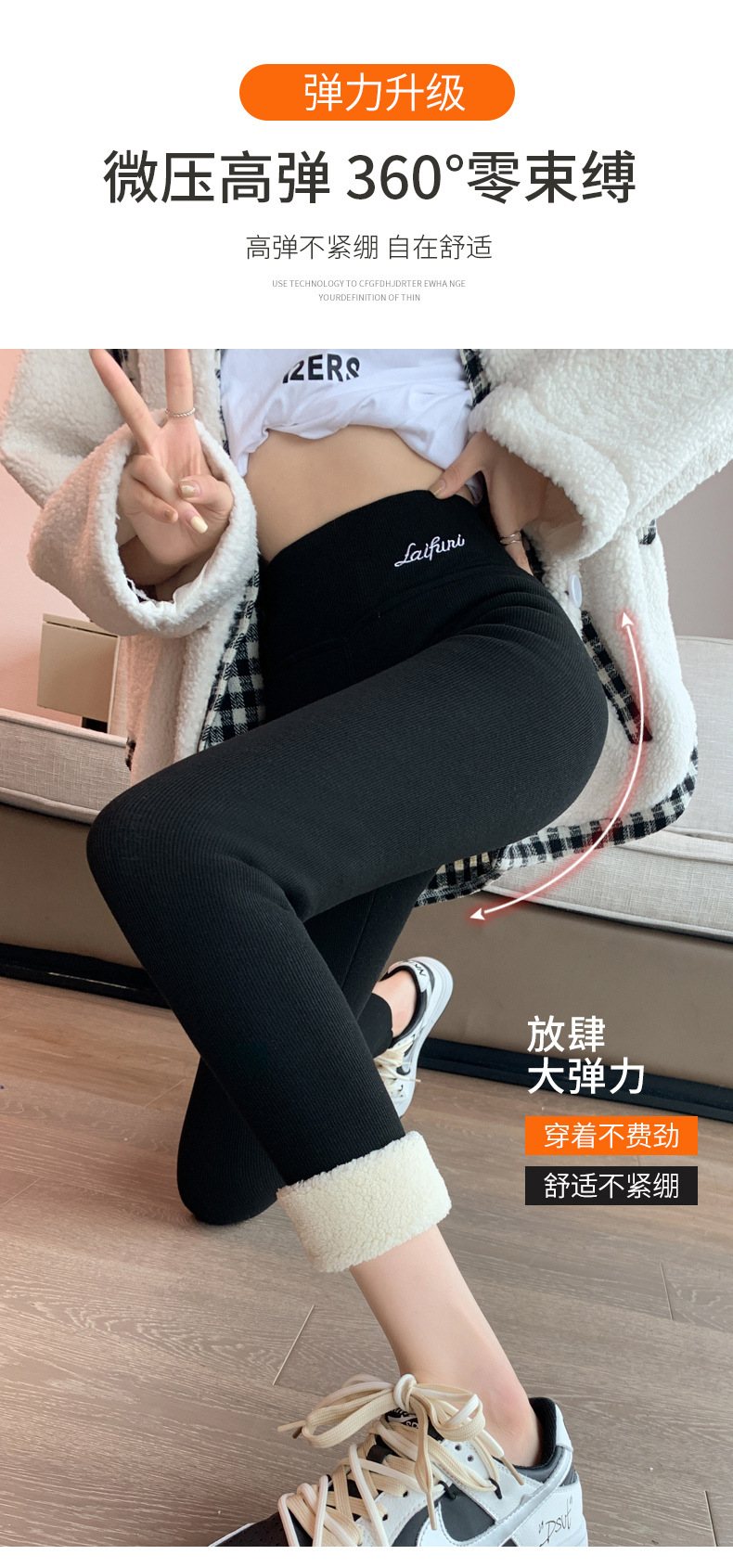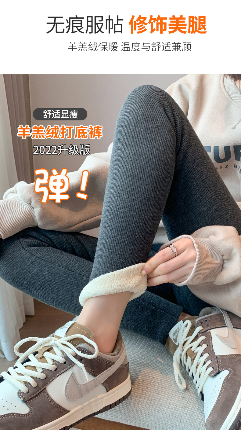 百媚生 棉裤女士特厚羊羔绒打底裤外穿 H795