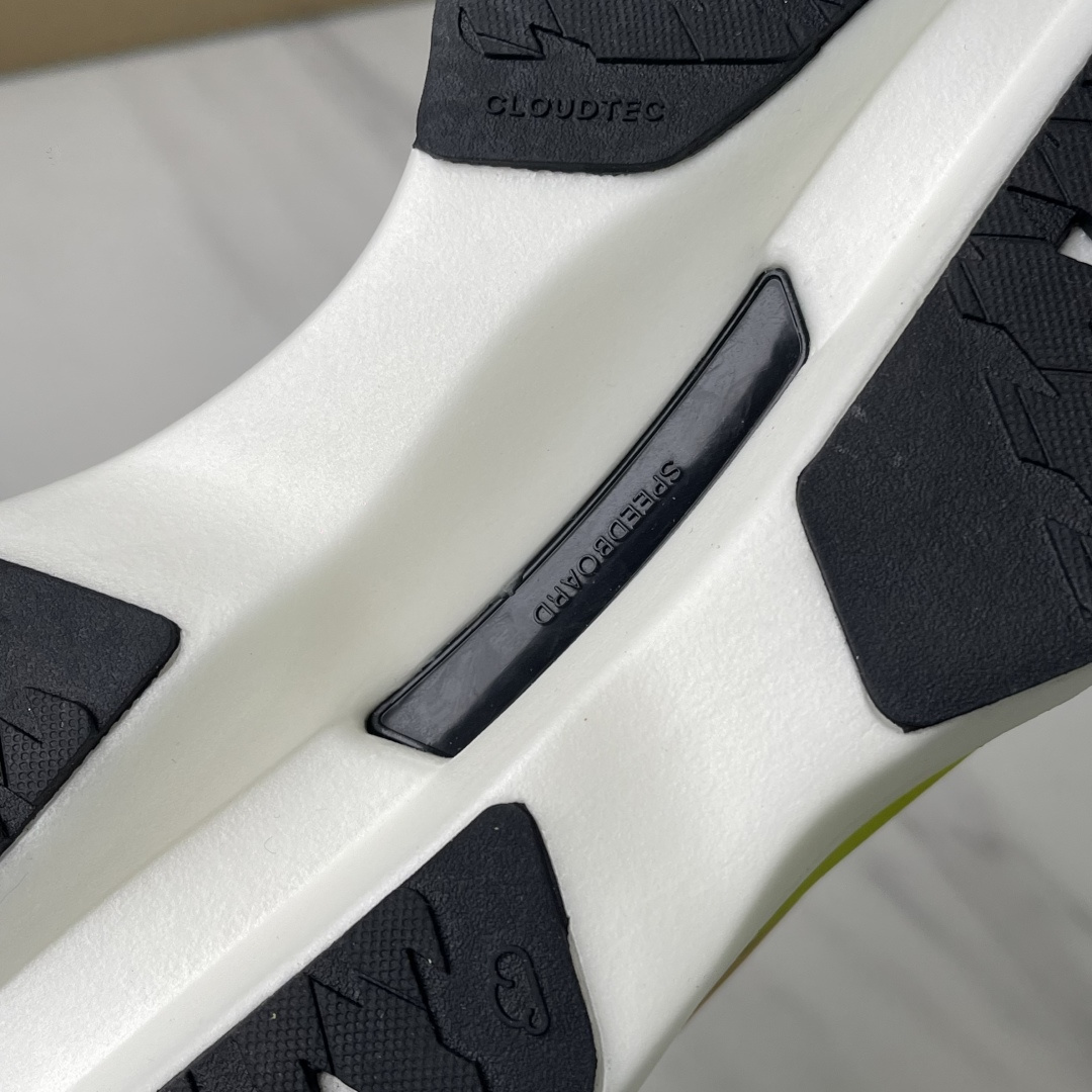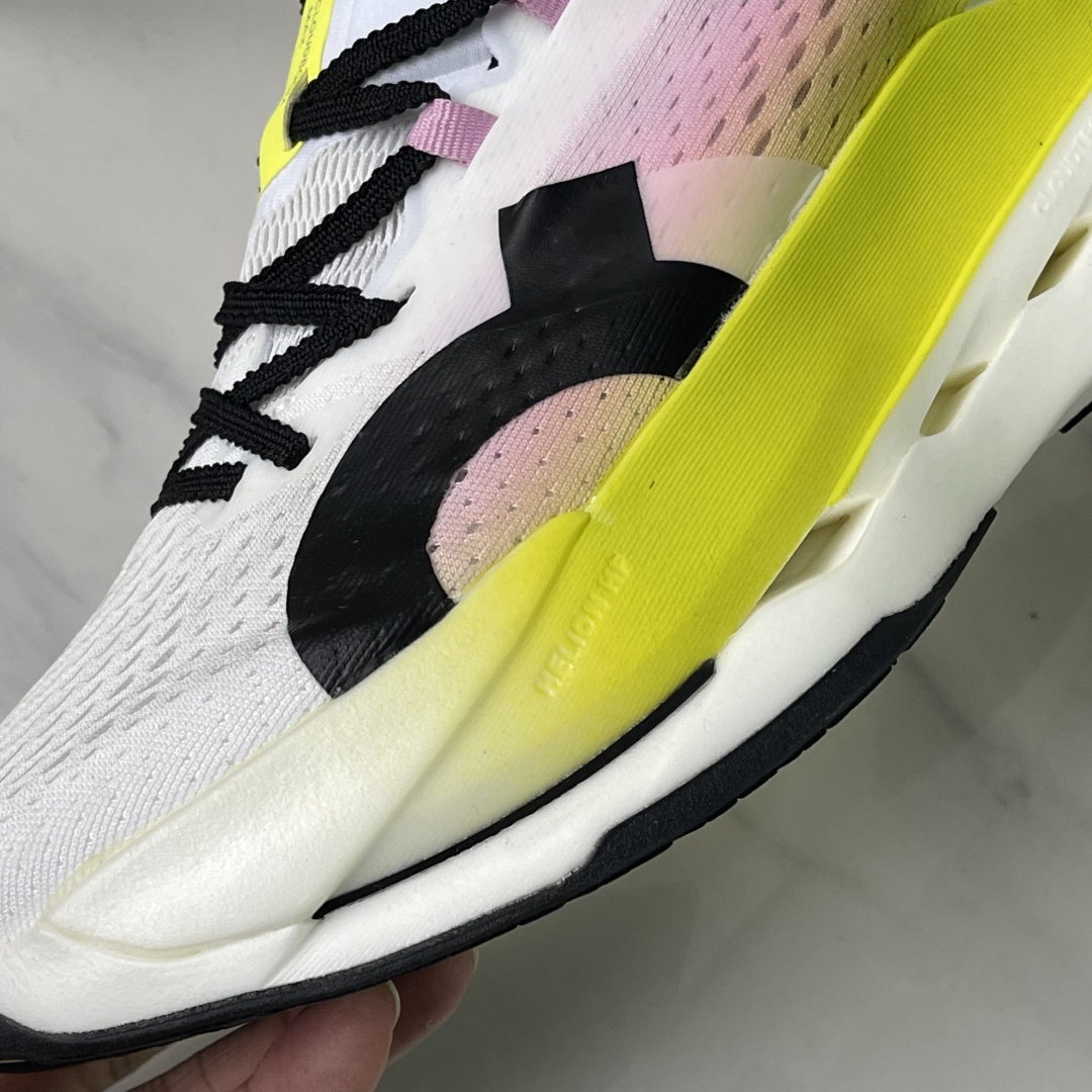 中底做了双层Helion TMHF hyper foam泡棉+玻璃纤维SpeedboardR速度板的三明治结构设计 不像普通竞速鞋那么硬弹 而是缓震与推进兼具的那种 支撑性和推进力都更优 也更能适应长距离跑步场景!!