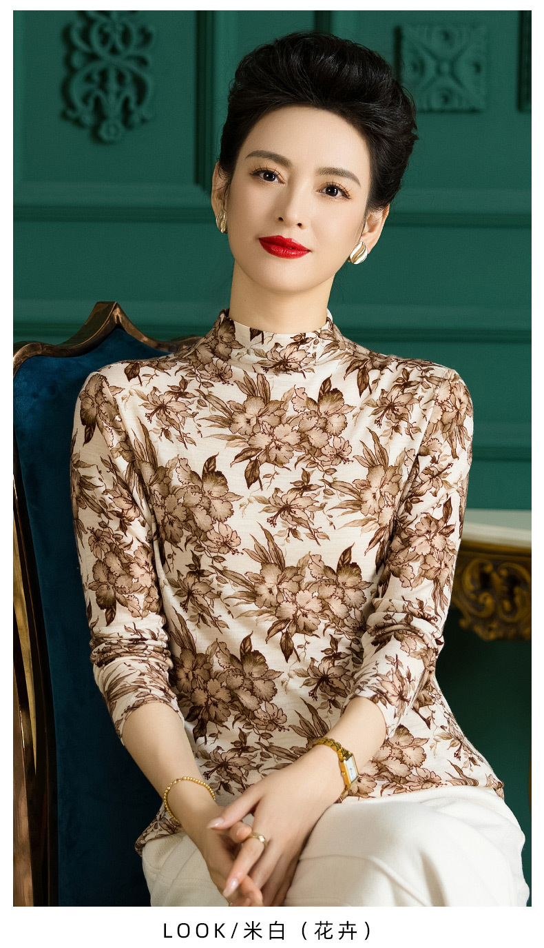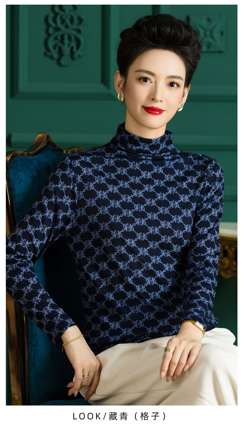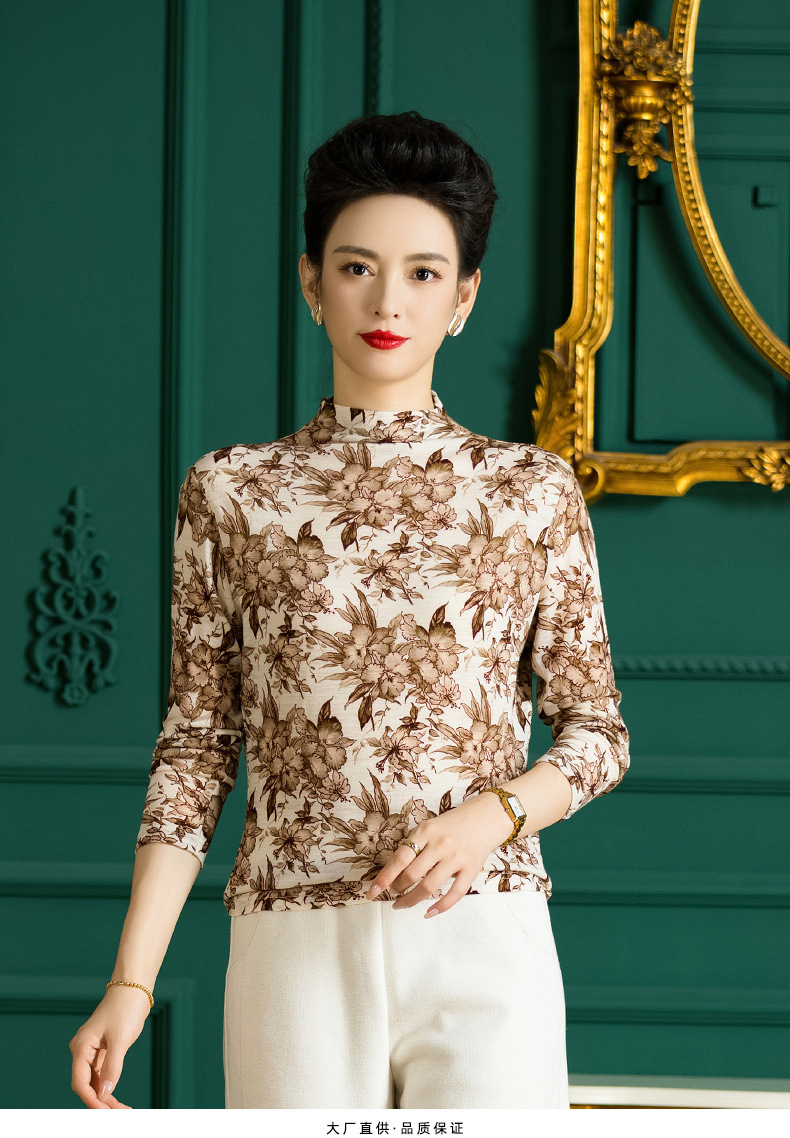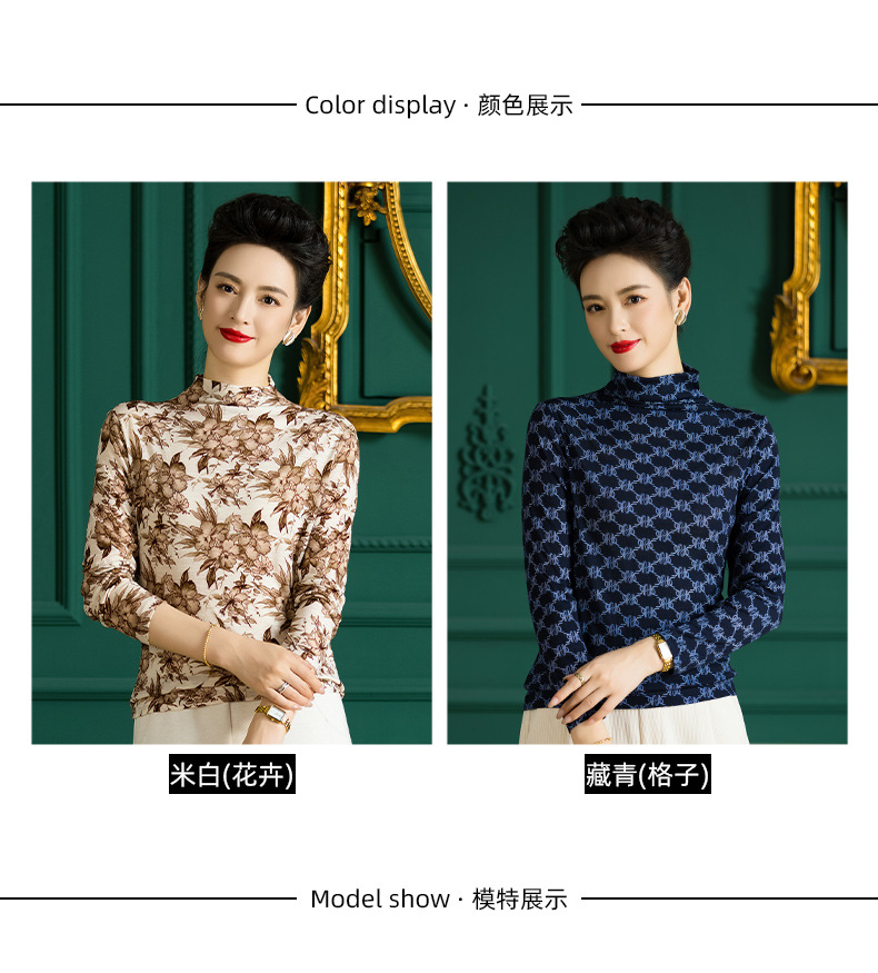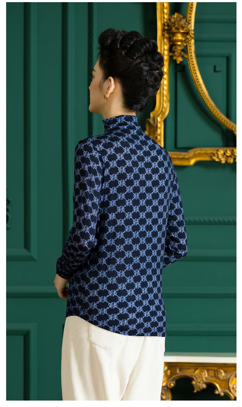 雀说精纺羊毛印花针织衫薄款套头羊毛衫女半高领打底衫ALF2549