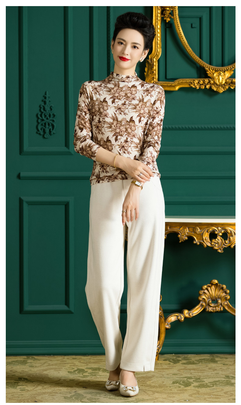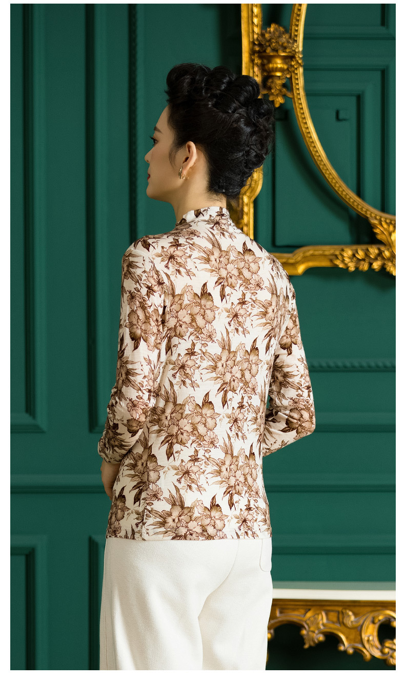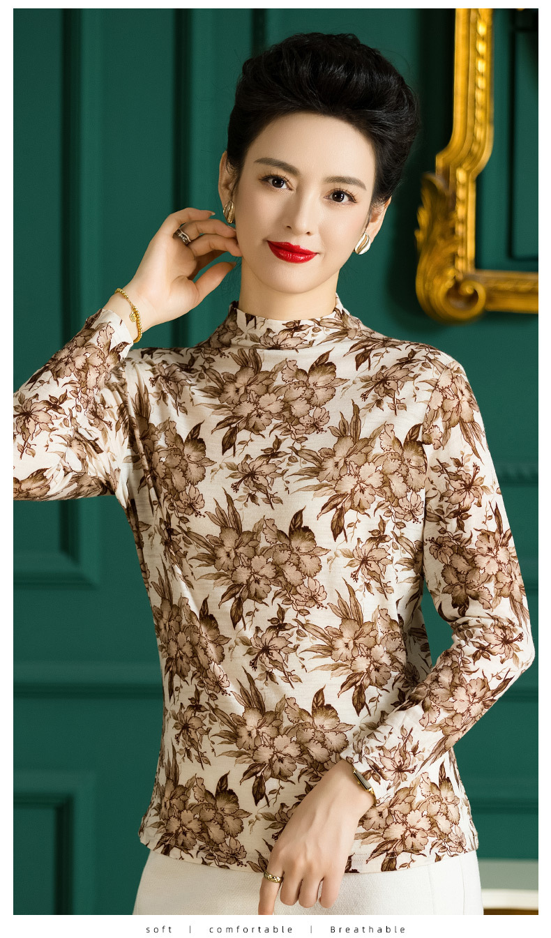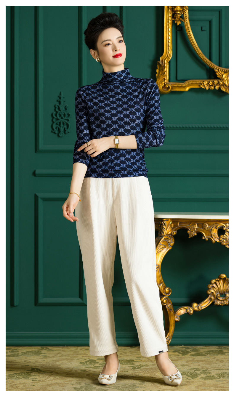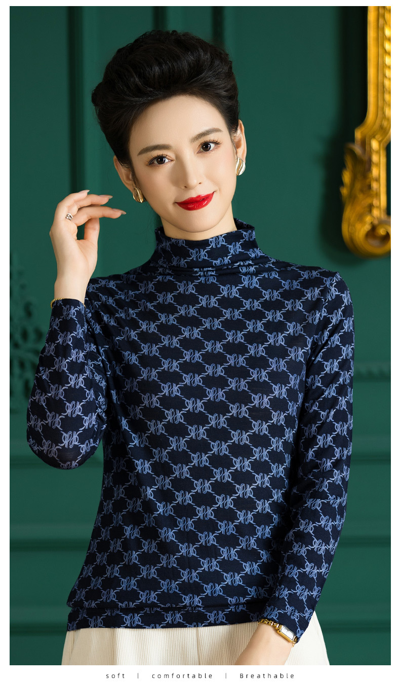 雀说精纺羊毛印花针织衫薄款套头羊毛衫女半高领打底衫ALF2549