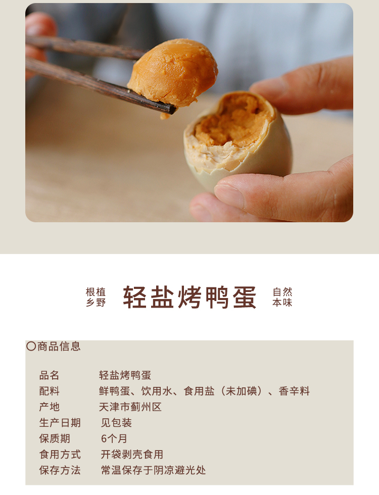 乡野人家【轻盐烤鸭蛋】比流油鸭蛋更健康 熟食零食卤蛋开袋即食中秋礼盒 咸鸭蛋鸡蛋咸蛋黄