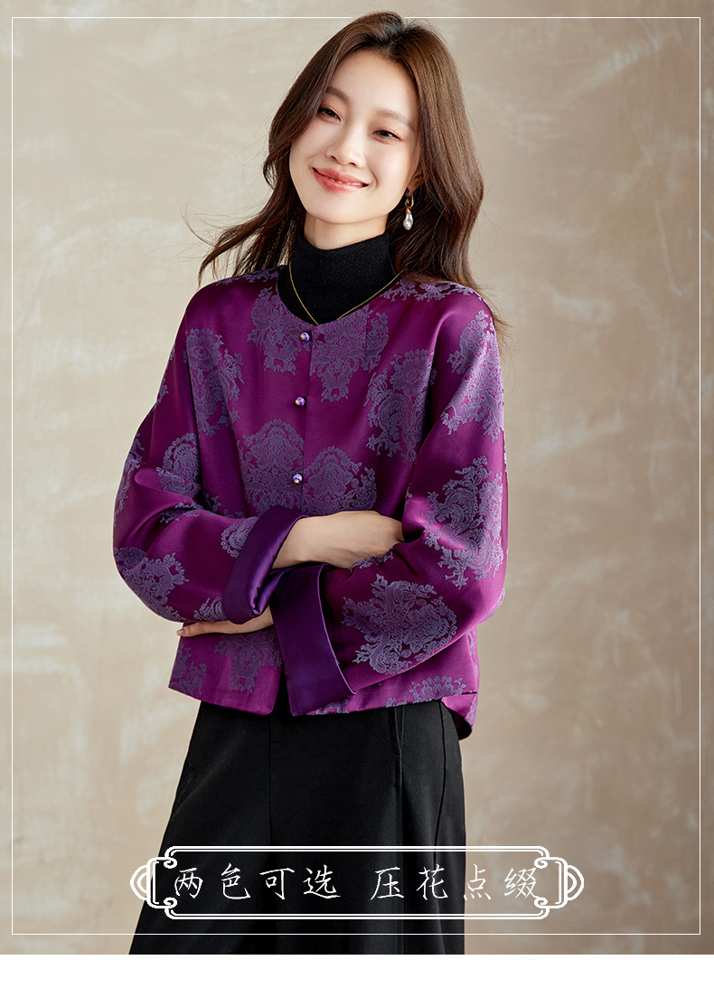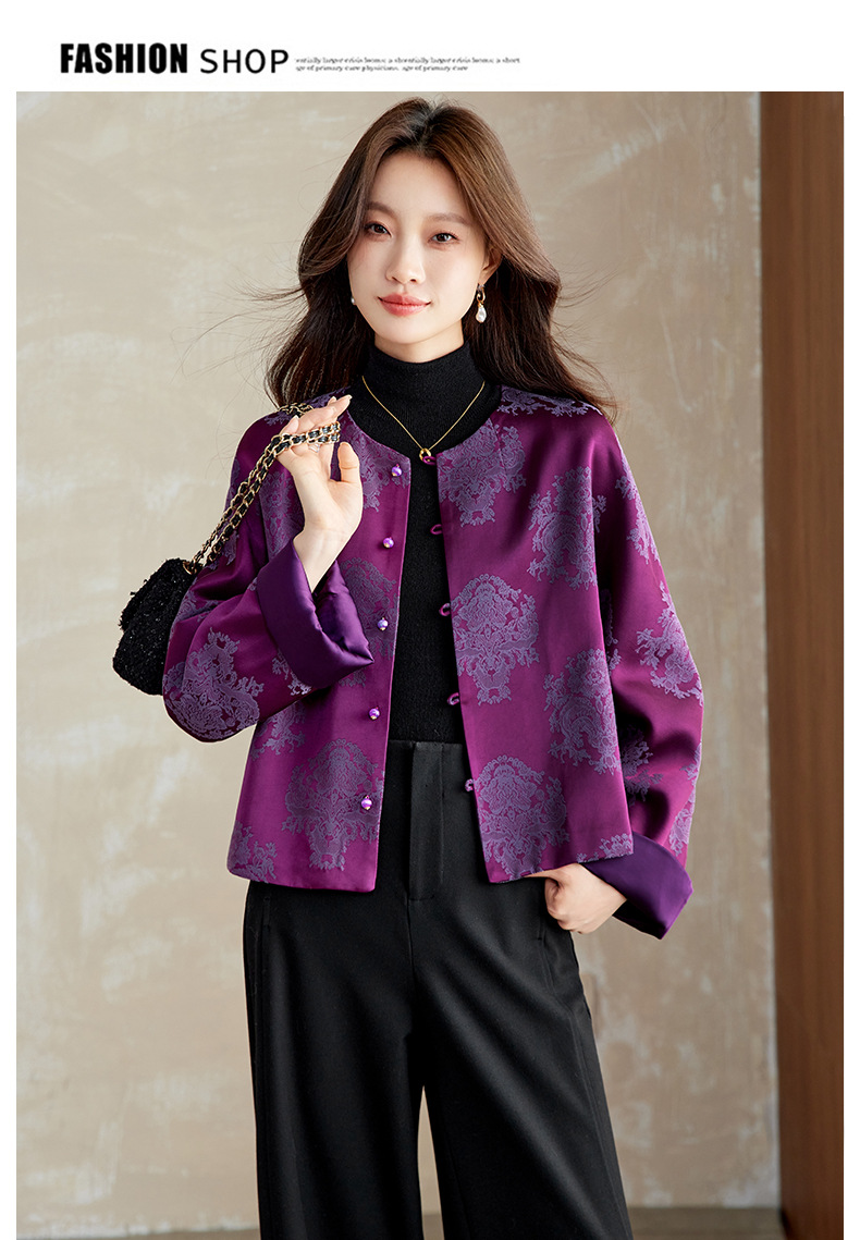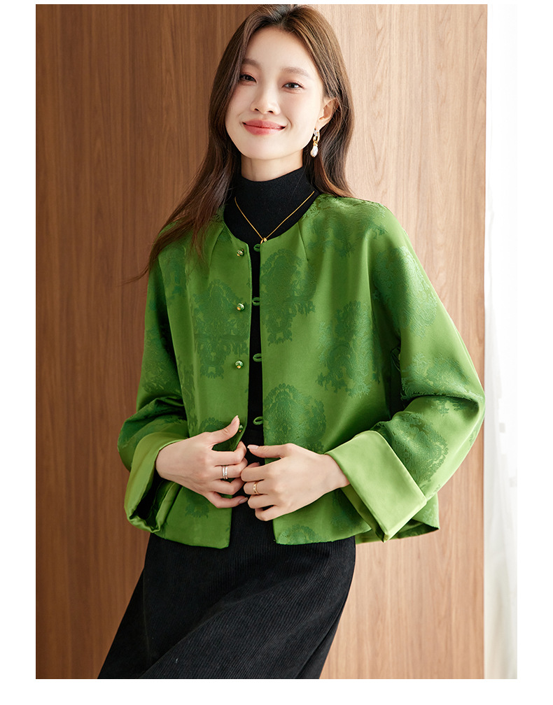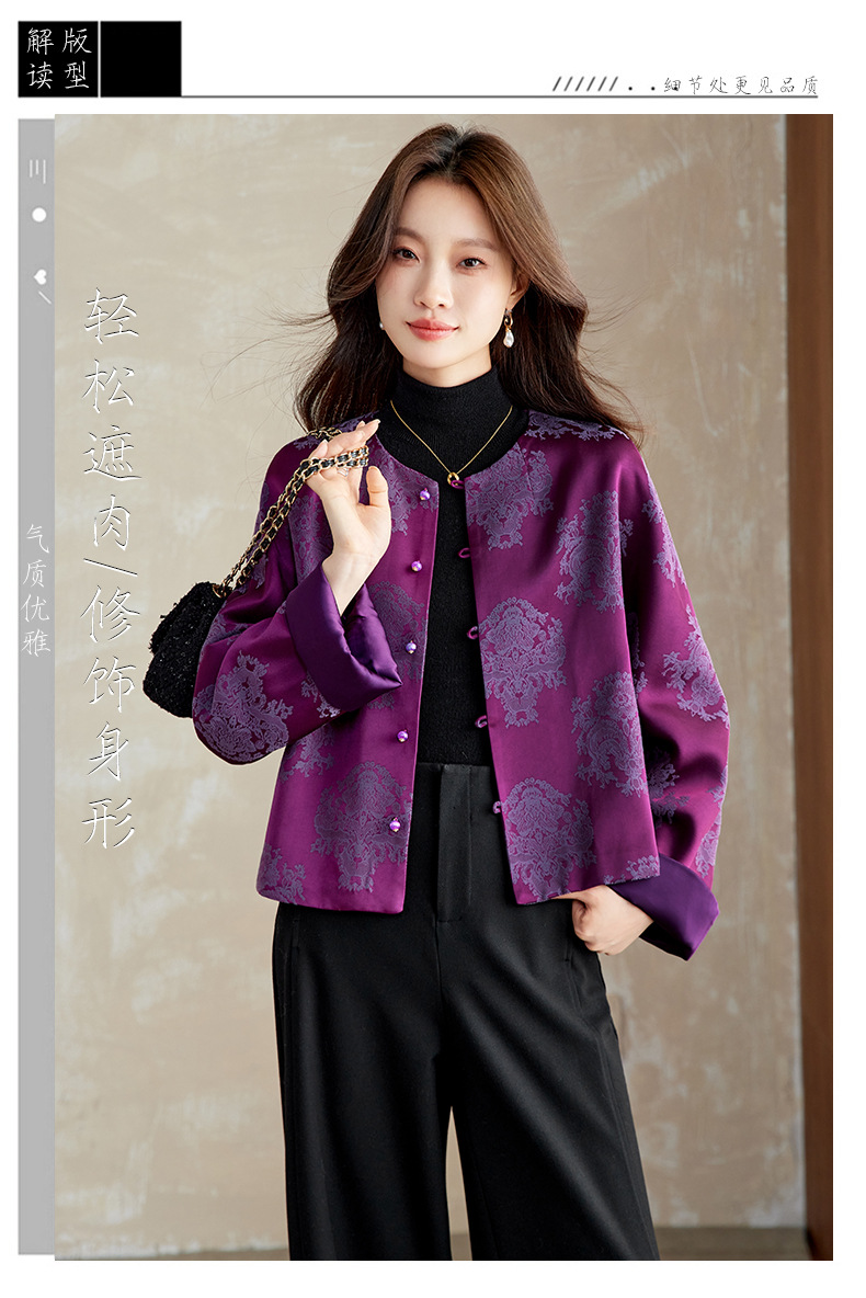 百媚生 醋酸提花短外套复古新中式国风上衣6087 商品图0