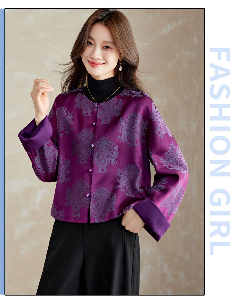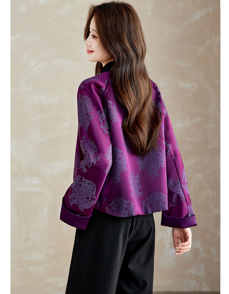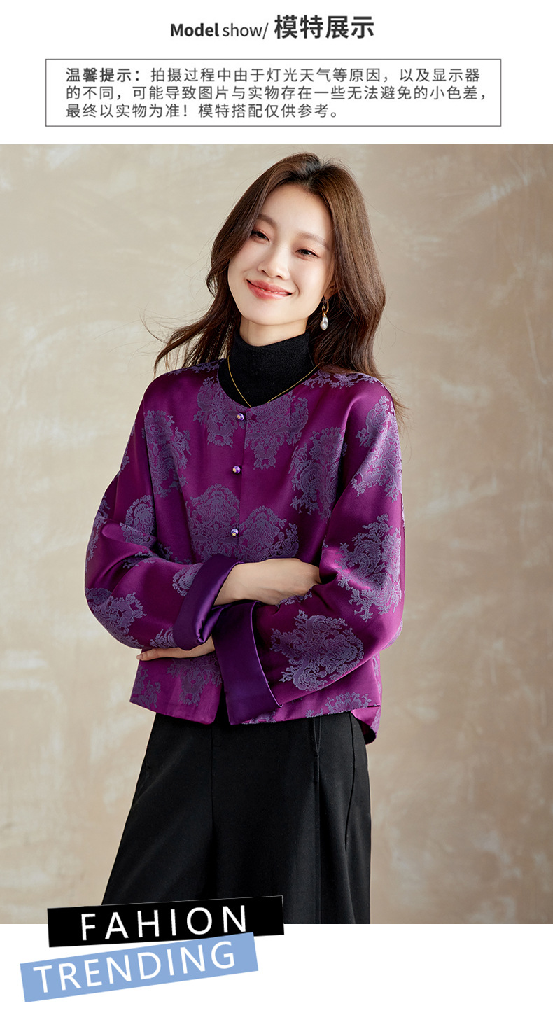 百媚生 醋酸提花短外套复古新中式国风上衣6087 商品图0