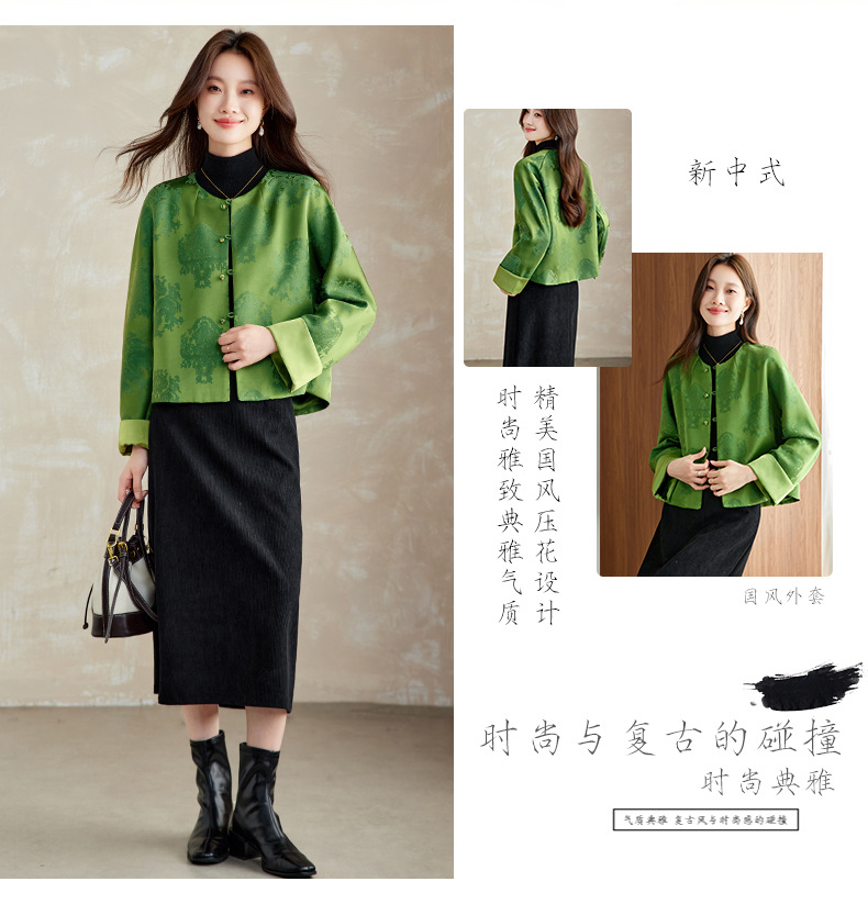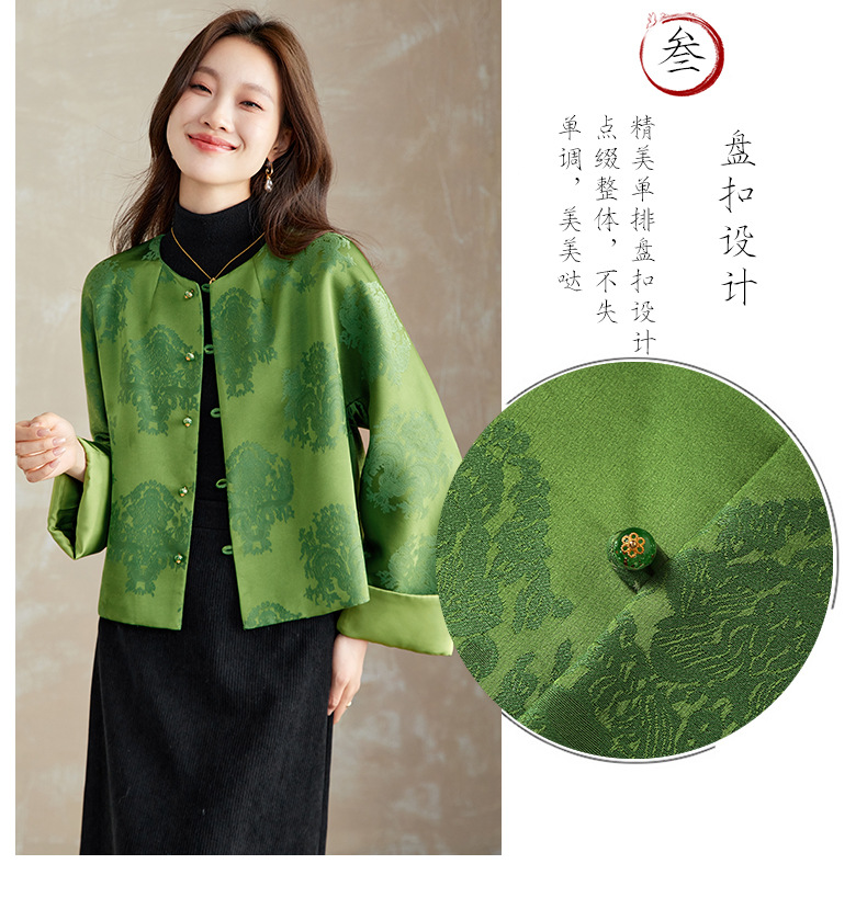 百媚生 醋酸提花短外套复古新中式国风上衣6087 商品图3