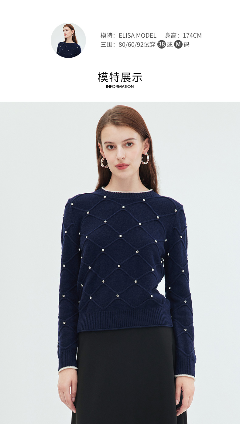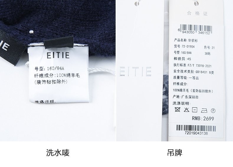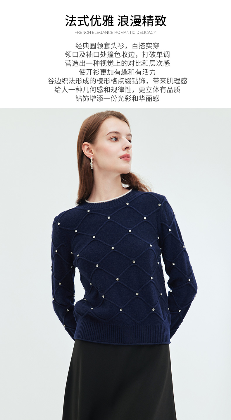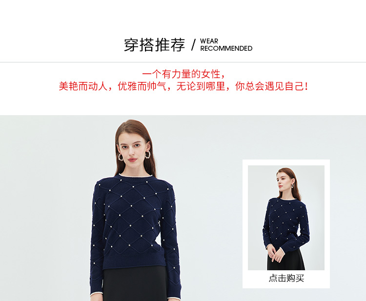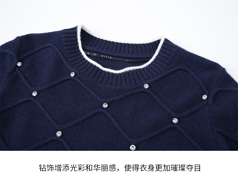 EITIE爱特爱冬季100%绵羊毛套头纯色打底基础款修身针织衫7201904