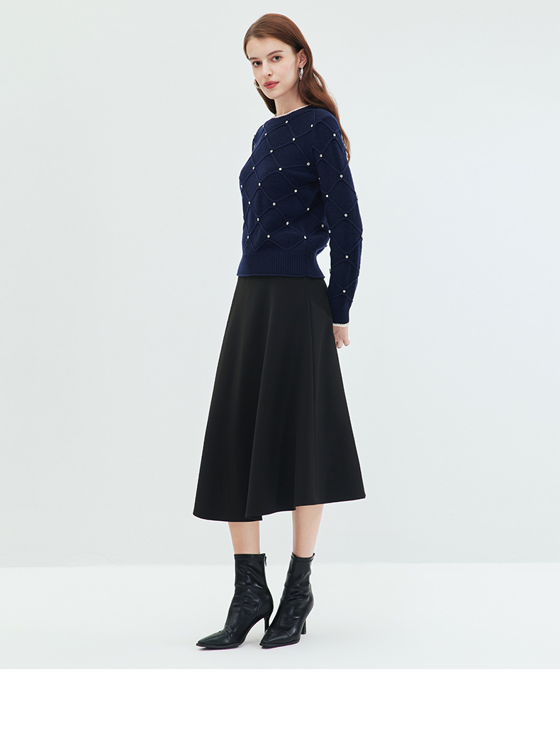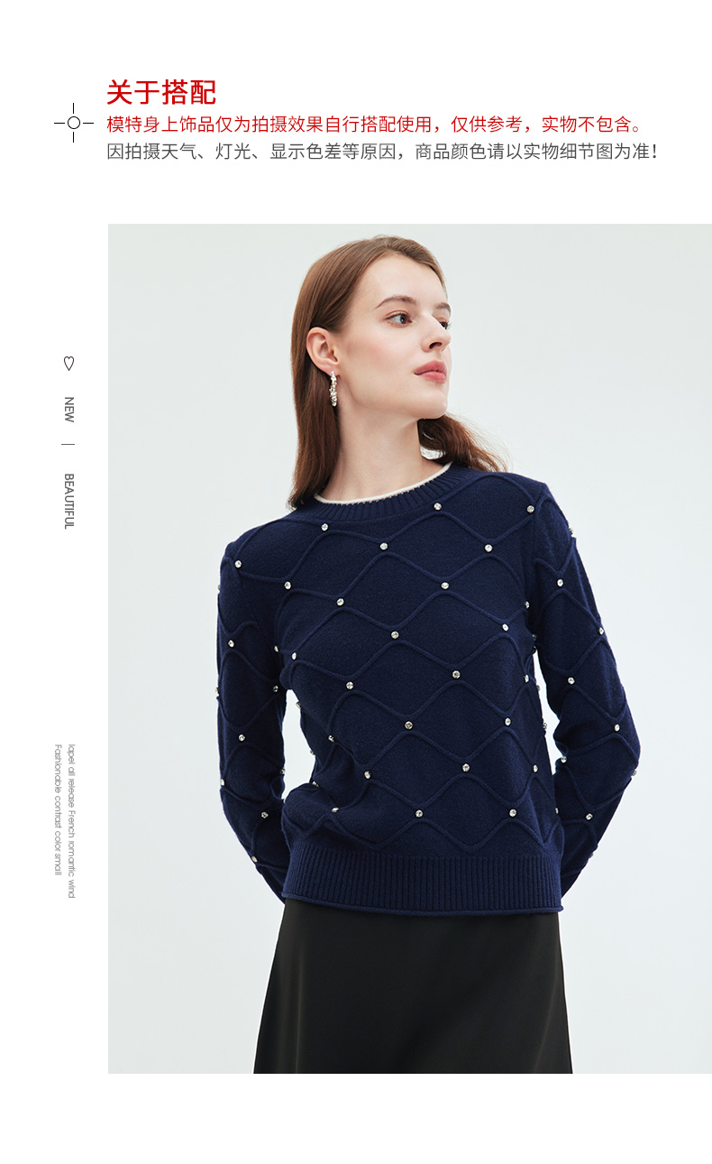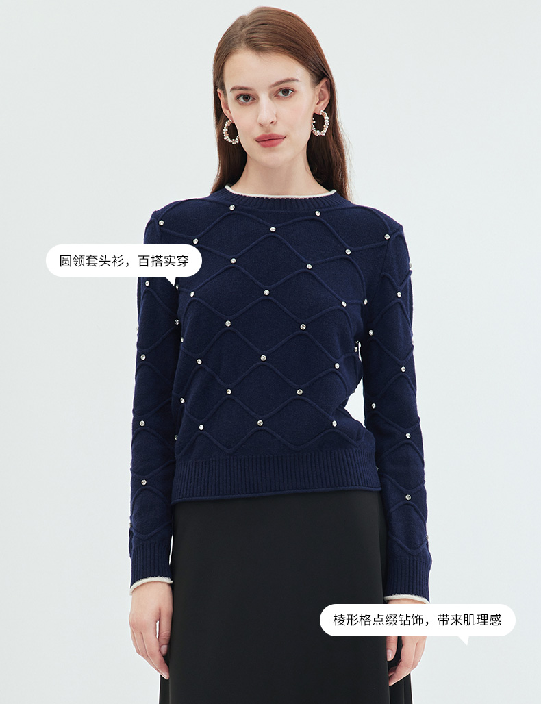 EITIE爱特爱冬季100%绵羊毛套头纯色打底基础款修身针织衫7201904