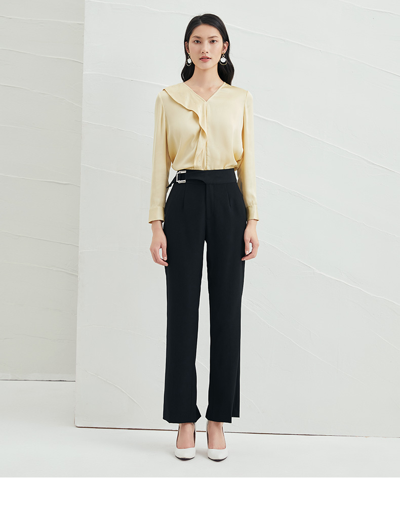 EITIE爱特爱品牌女装夏款时尚通勤职业条纹显腿长高腰阔腿裤6105810