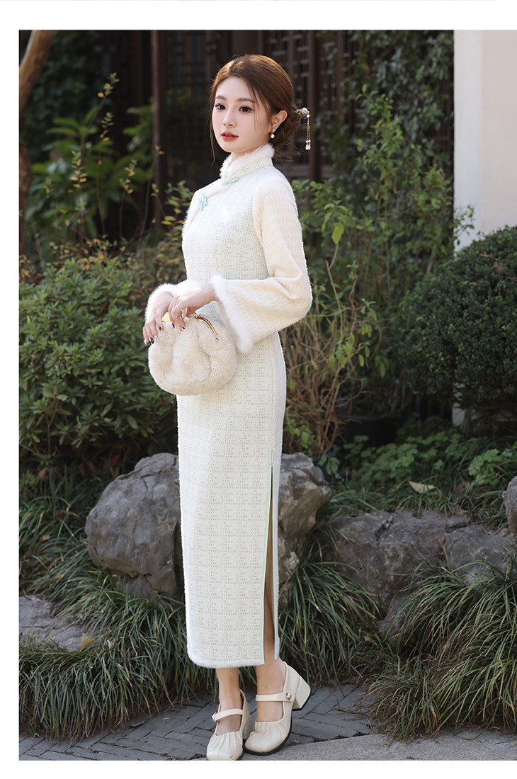 加绒仿水貂绒复合超柔年轻款长款修身旗袍MLS6830