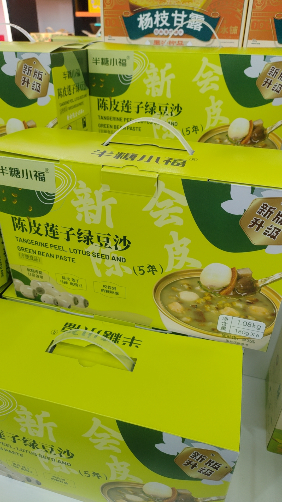 【新版版陈皮绿豆粥/燕窝牛奶】滋养系列,粘稠的口感,莲子和红豆放进嘴里稍微抿一抿就变得粉粉得,很不错!陈皮的清香味正好中和了豆沙的甜