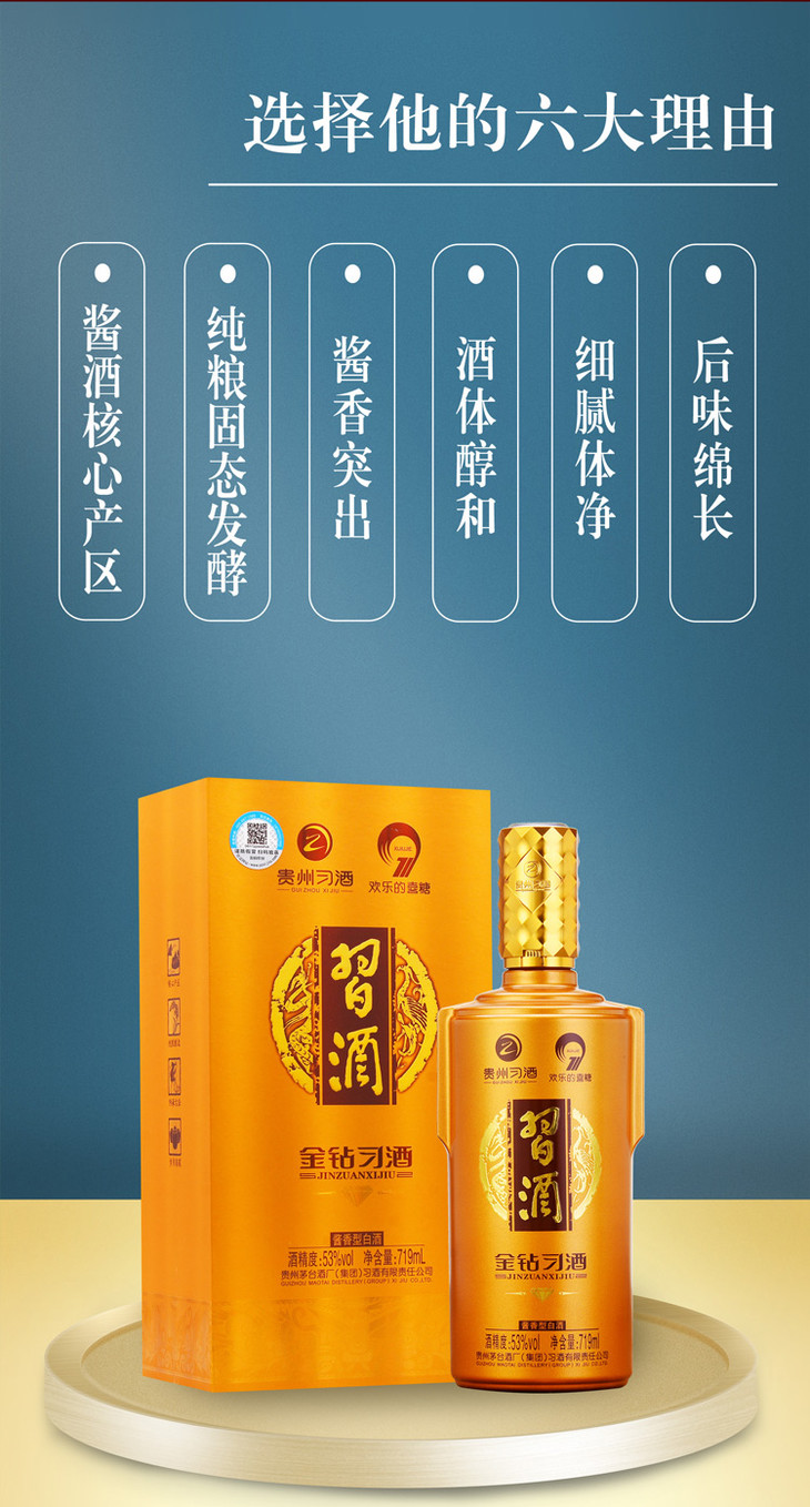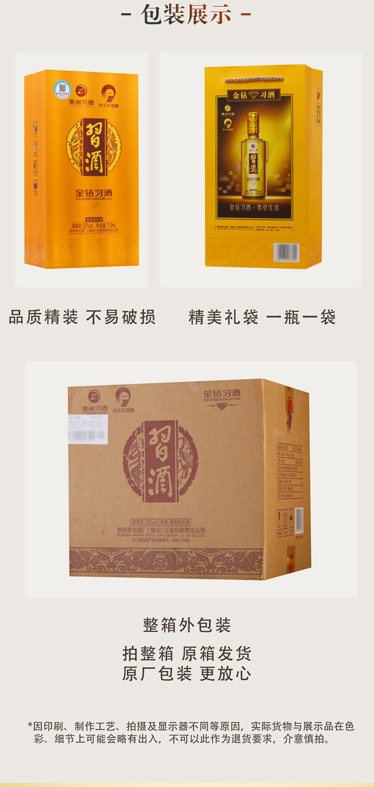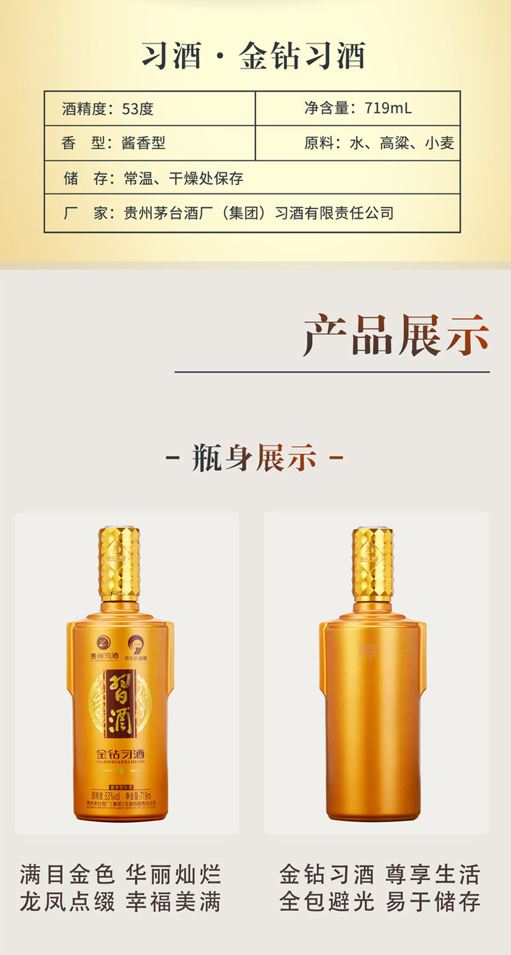 【推荐】贵州习酒 酱香型白酒礼盒 53度金钻习酒(金质习酒钻石版) 719ml*6瓶