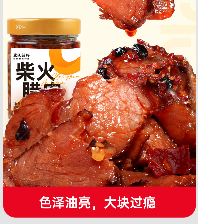 【鲜食】黑色经典柴火腊肉238g/瓶 柴火慢熏 腊香十足
