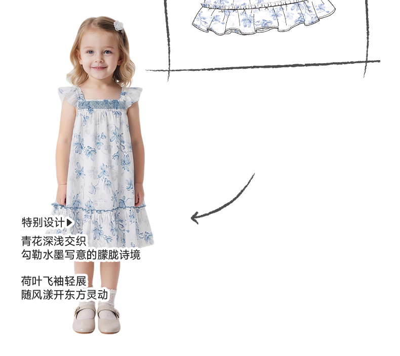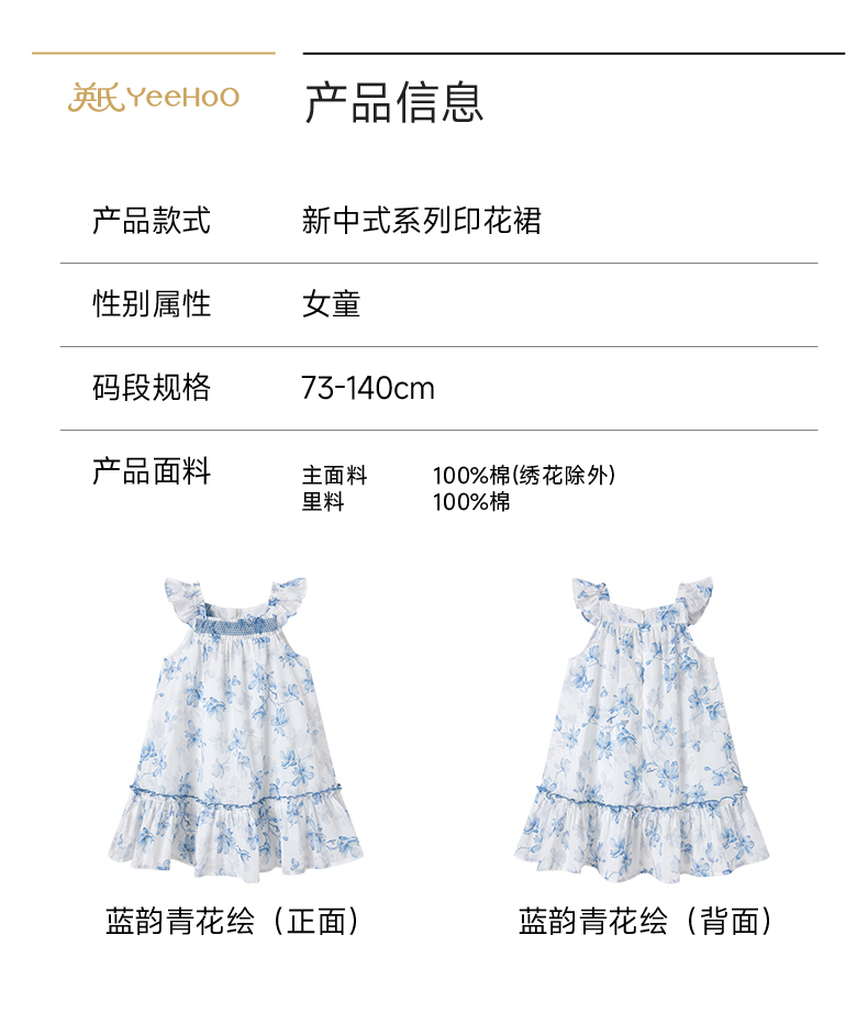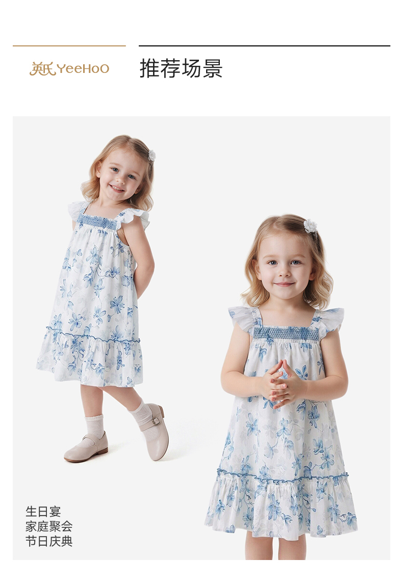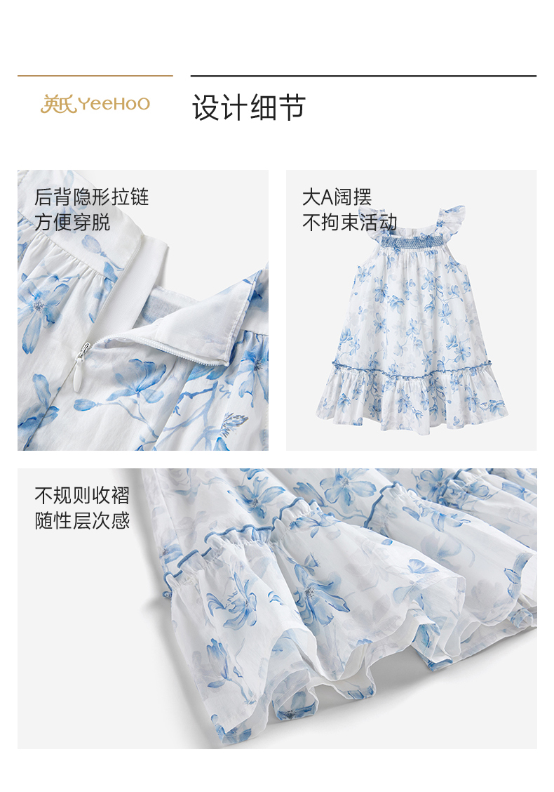 【商场同款】英氏女童背心裙春夏季新款纯棉连衣裙儿童短袖公主裙