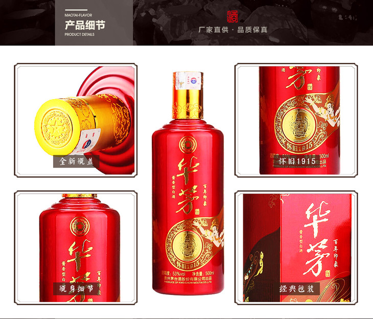 【推荐】清仓(2016.2017年随机发货)拆箱 贵州茅台酒股份 53°华茅酒(百年印象)500ml*6瓶 酱香型白酒 优级