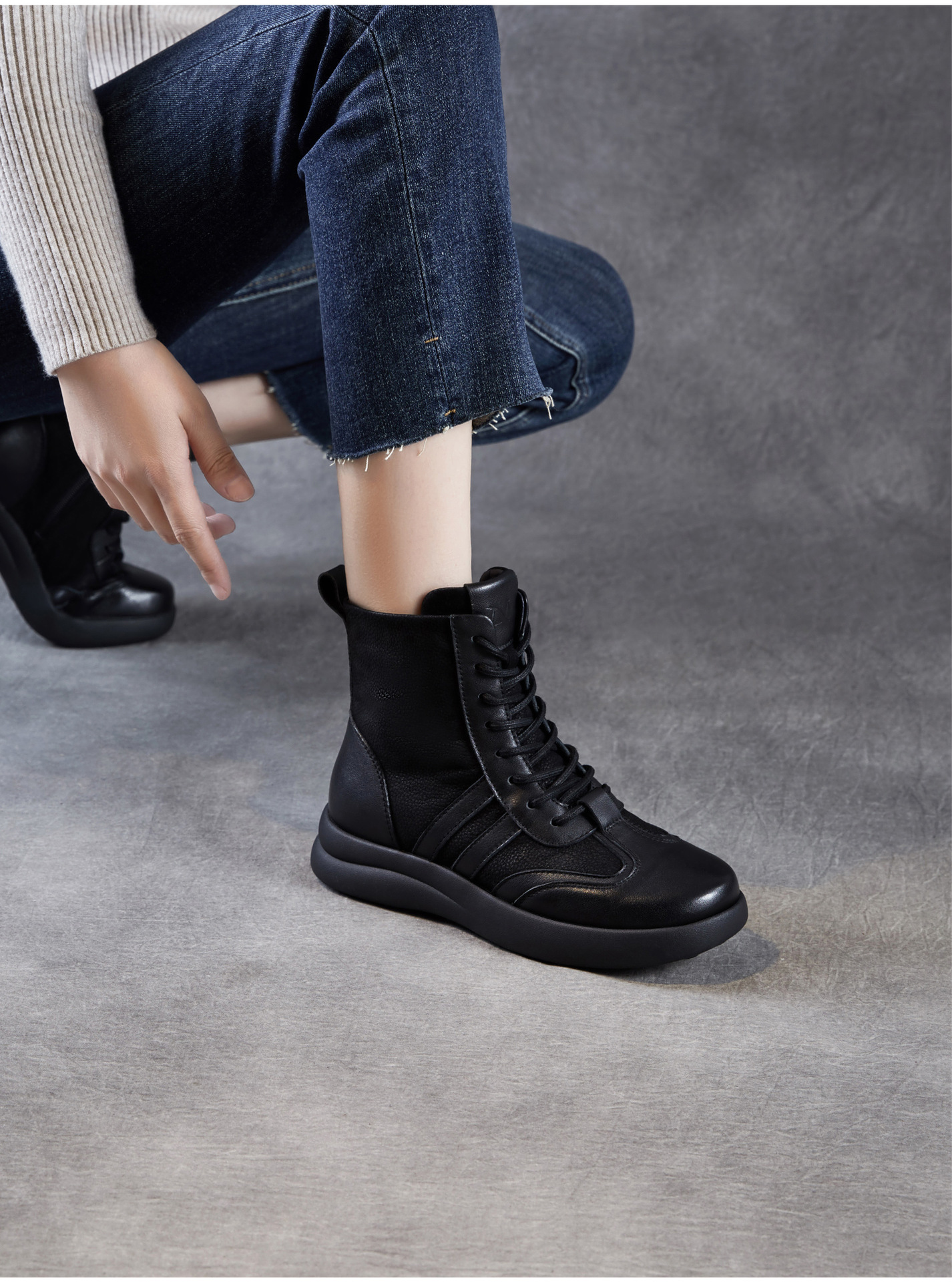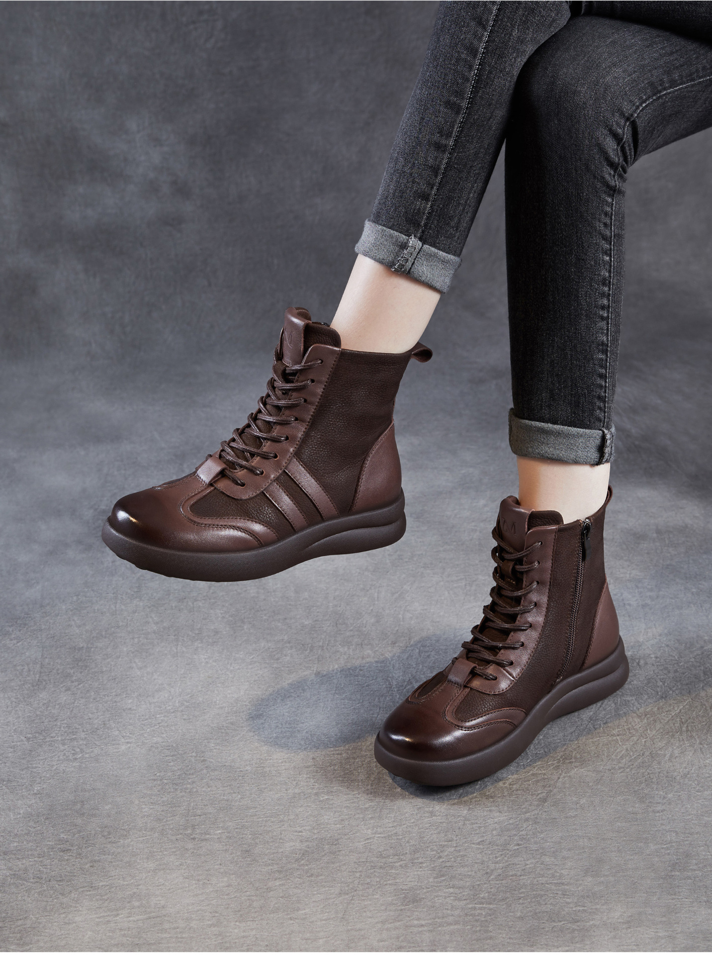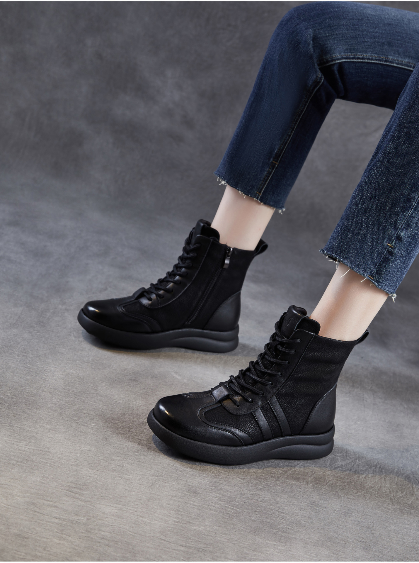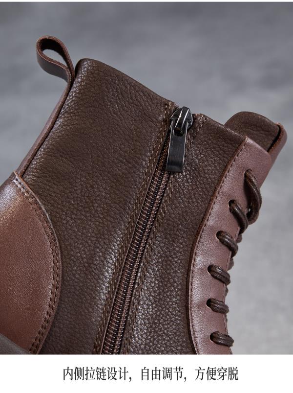 头层牛皮马丁靴靴,复古休闲百搭短筒系带真皮德训女鞋ZM258703