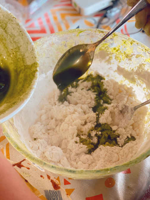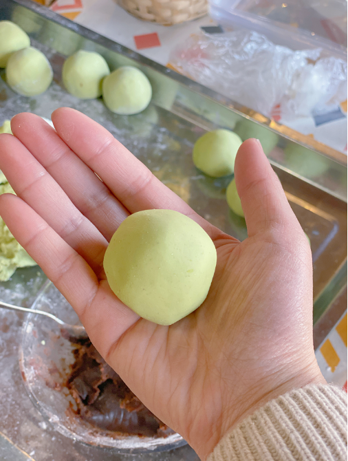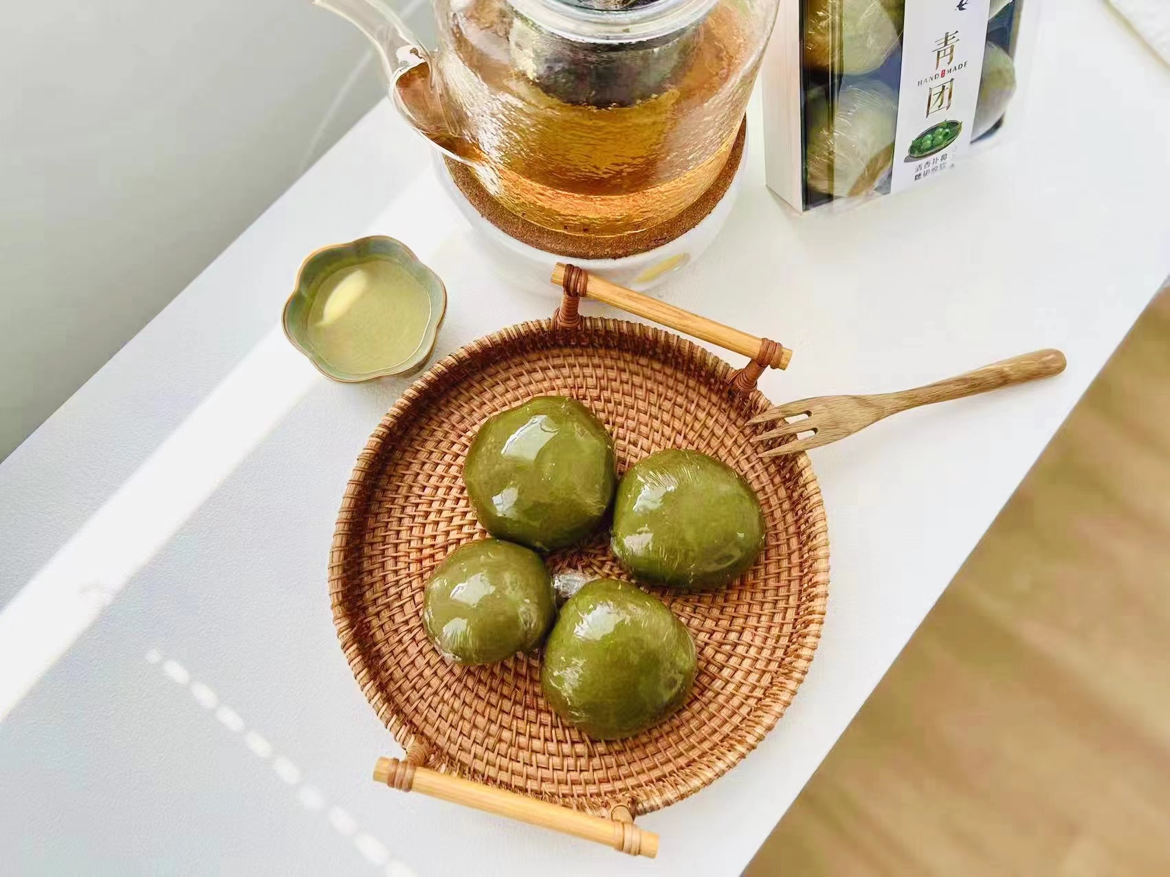 这是关于春天的记忆,总绕不开香糯可口的艾草青团。浸泡、捣碎、用纱布包裹挤出汁水、糯米充分浸泡,磨成粉浆入盆,倒入青汁,揉搓成团……不多时一颗颗饱满的青团就诞生啦~