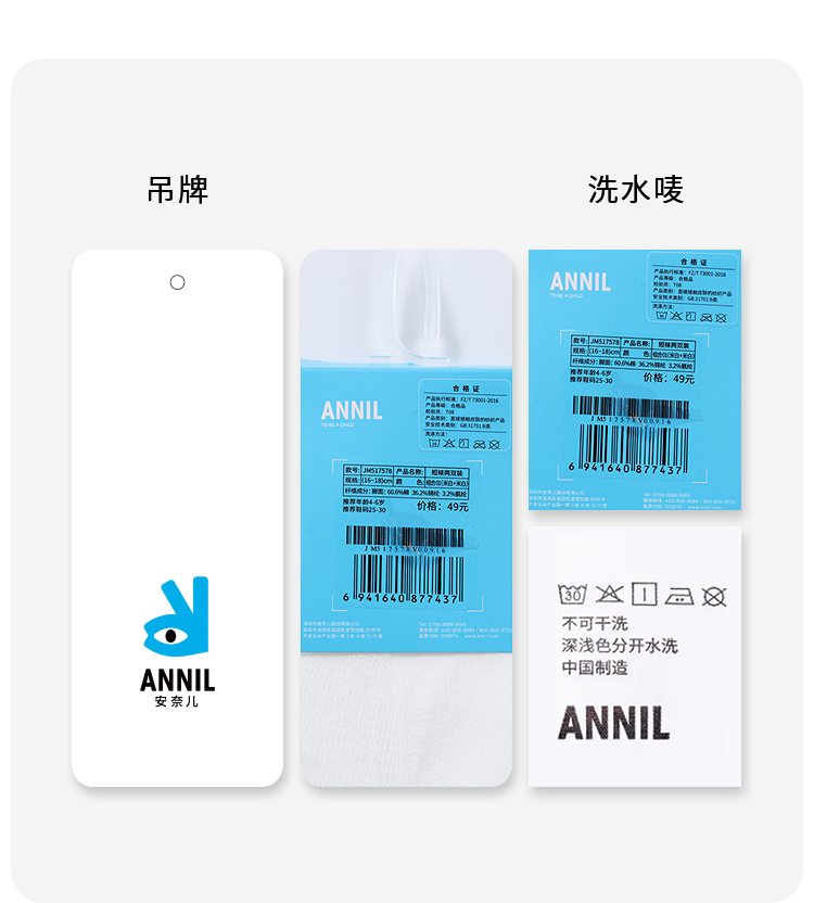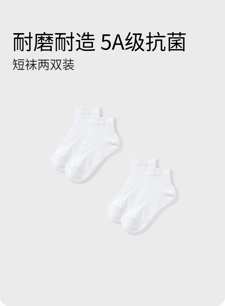 【5A抗菌】男女童短袜两双装春季新款安奈儿童装实体店同款JM517578