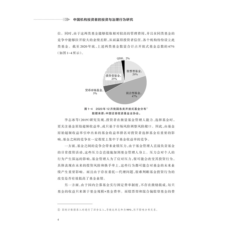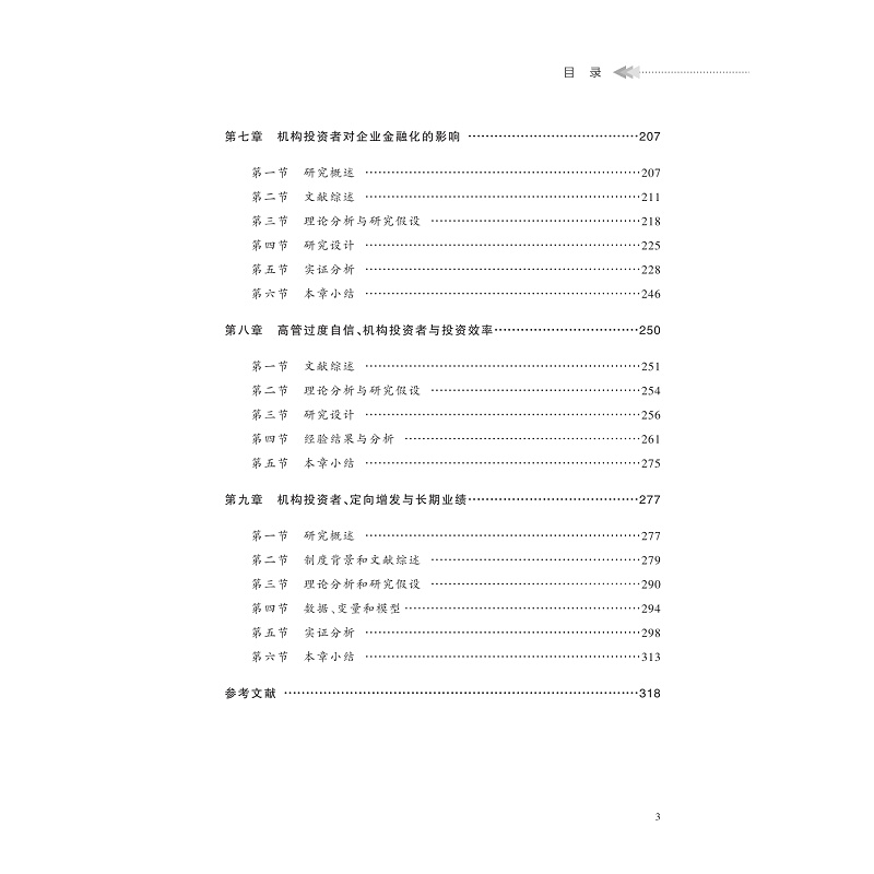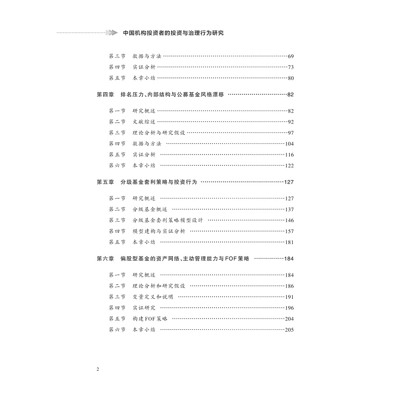 本书为国家自然科学基金面上项目(71873122)研究成果。在研究分级基金套利策略的基础上,根据基金的资产网络和主动管理能力构建FoF策略,研究机构投资者的投资对于上市公司治理的影响。机构投资者通过投资上市公司的股票,进而通过“用手投票”和“用脚投票”影响上市公司的行为。本书从企业投资效率、企业金融化、企业定向增发与长期业绩等方面进行研究,有助于更加准确认识机构投资者在现代上市公司发展中的重要作用,在当前投资环境和背景下具有重大的实践价值。