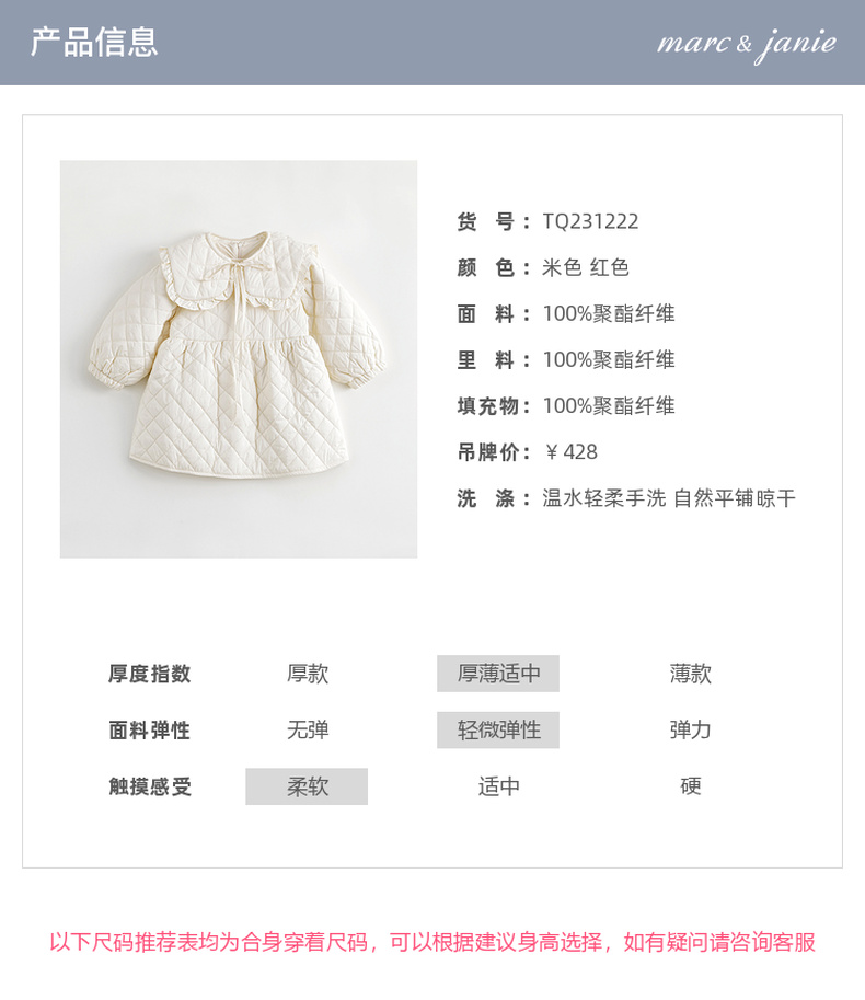 【三防】马克珍妮秋冬新款 女童娃娃领A字摆连衣裙231222