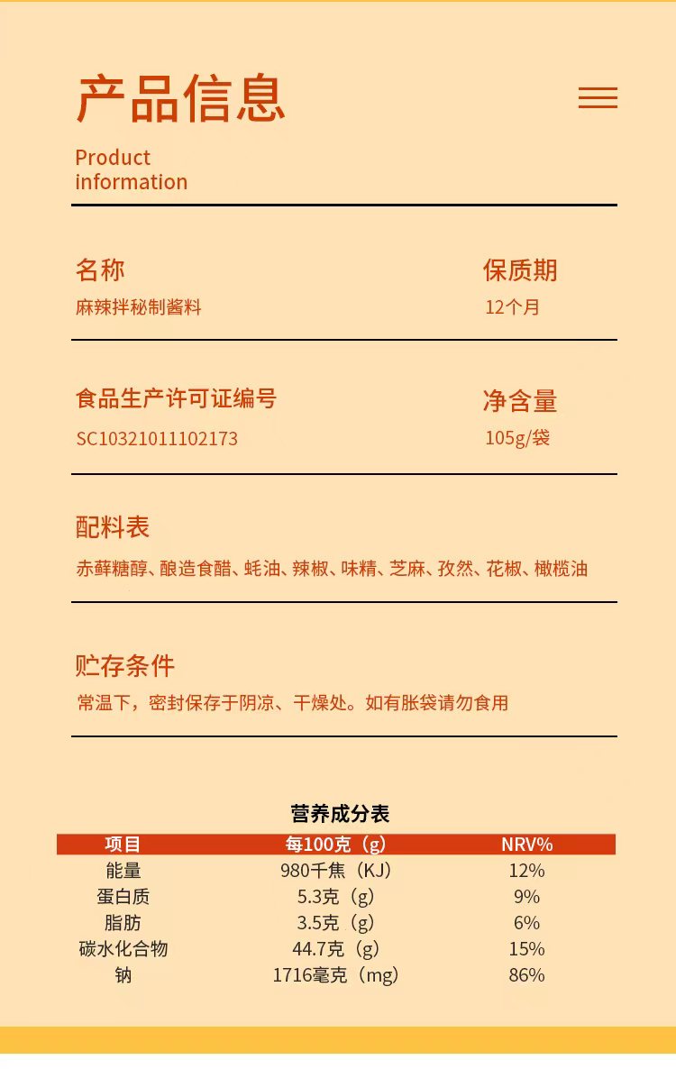 专属 低卡博士麻辣拌酱料汁 105g/袋