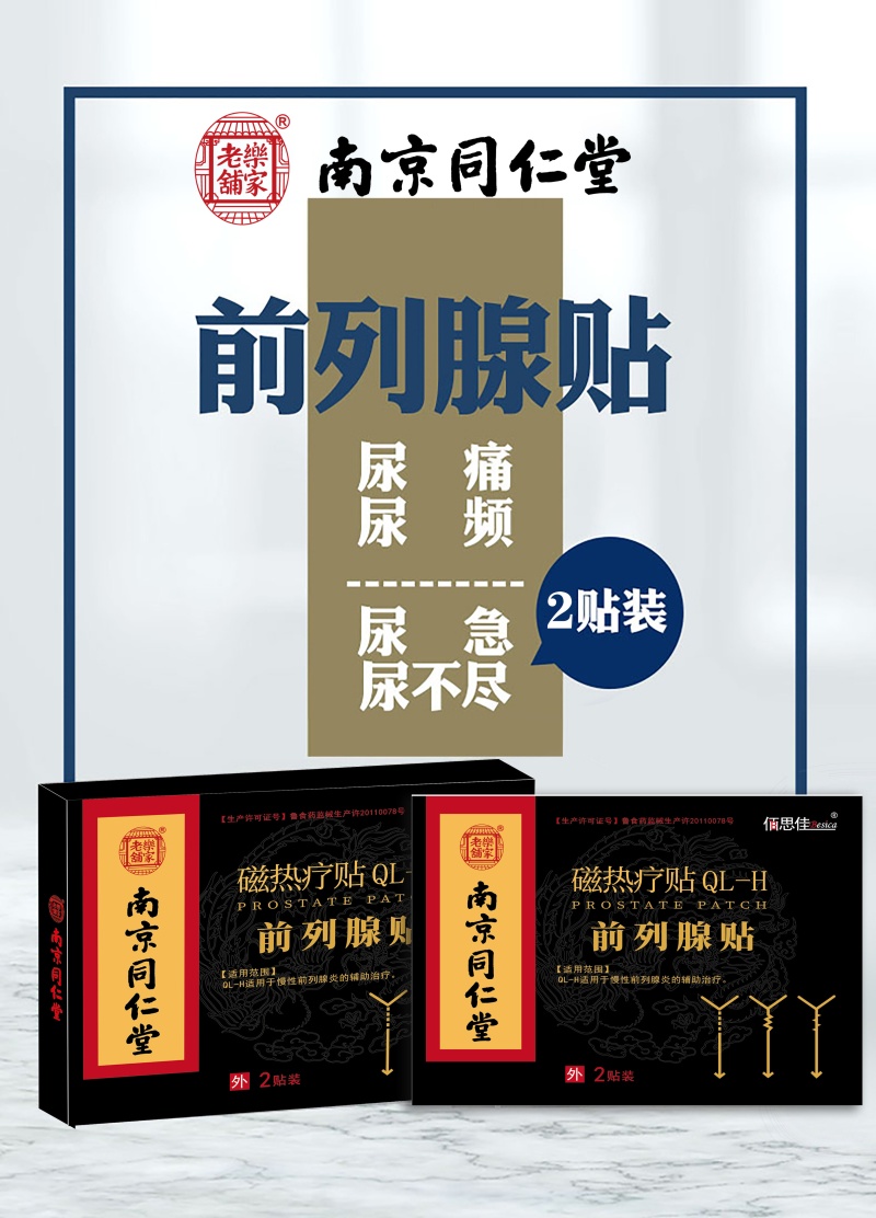 【男人不受“腺”制】前列腺磁热疗贴南京同仁堂出品尿频尿急尿痛排尿不畅尿不尽捍卫男人私处健康膏药贴2贴/盒