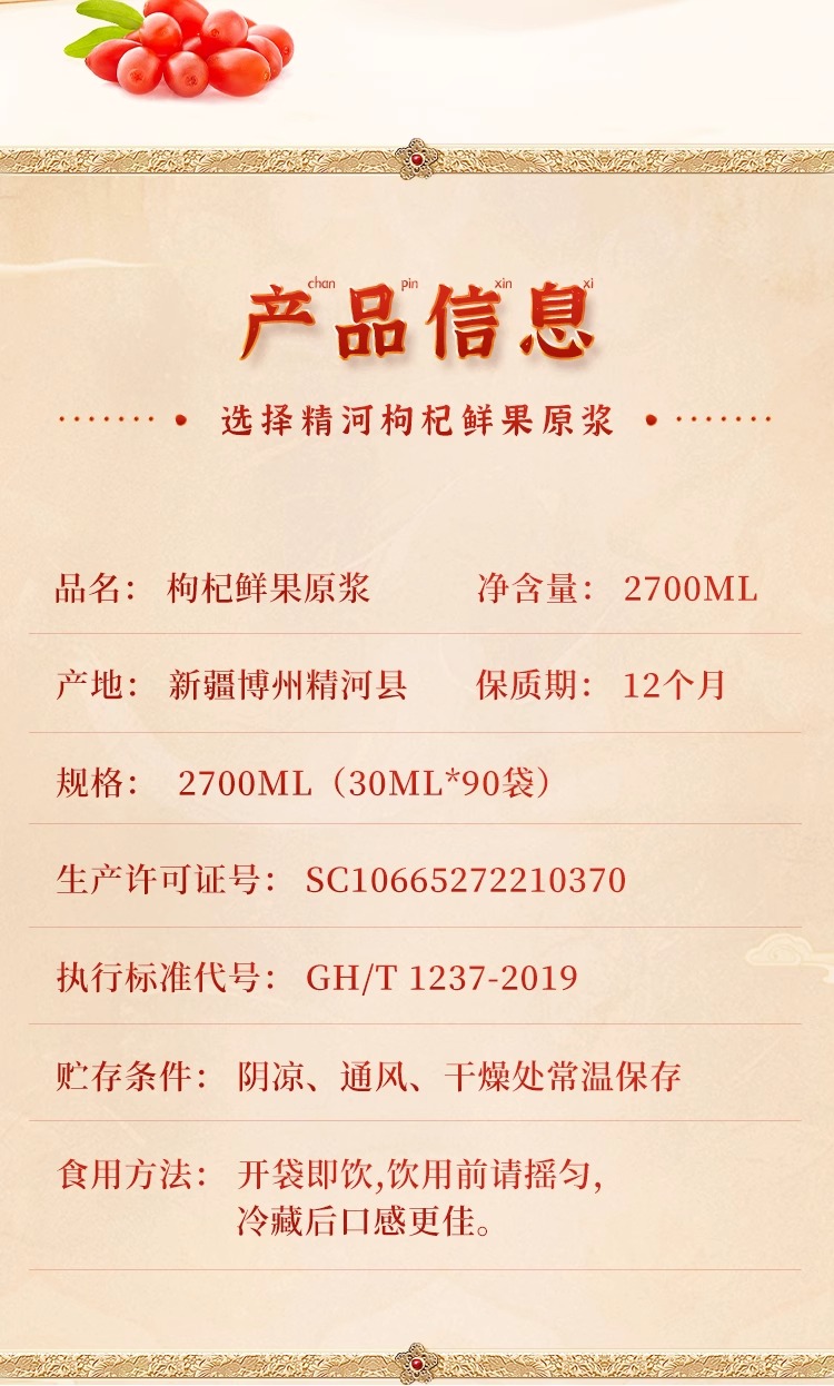 精河枸杞·精河枸杞原浆·30ml*90袋/箱 直接喝的枸杞汁