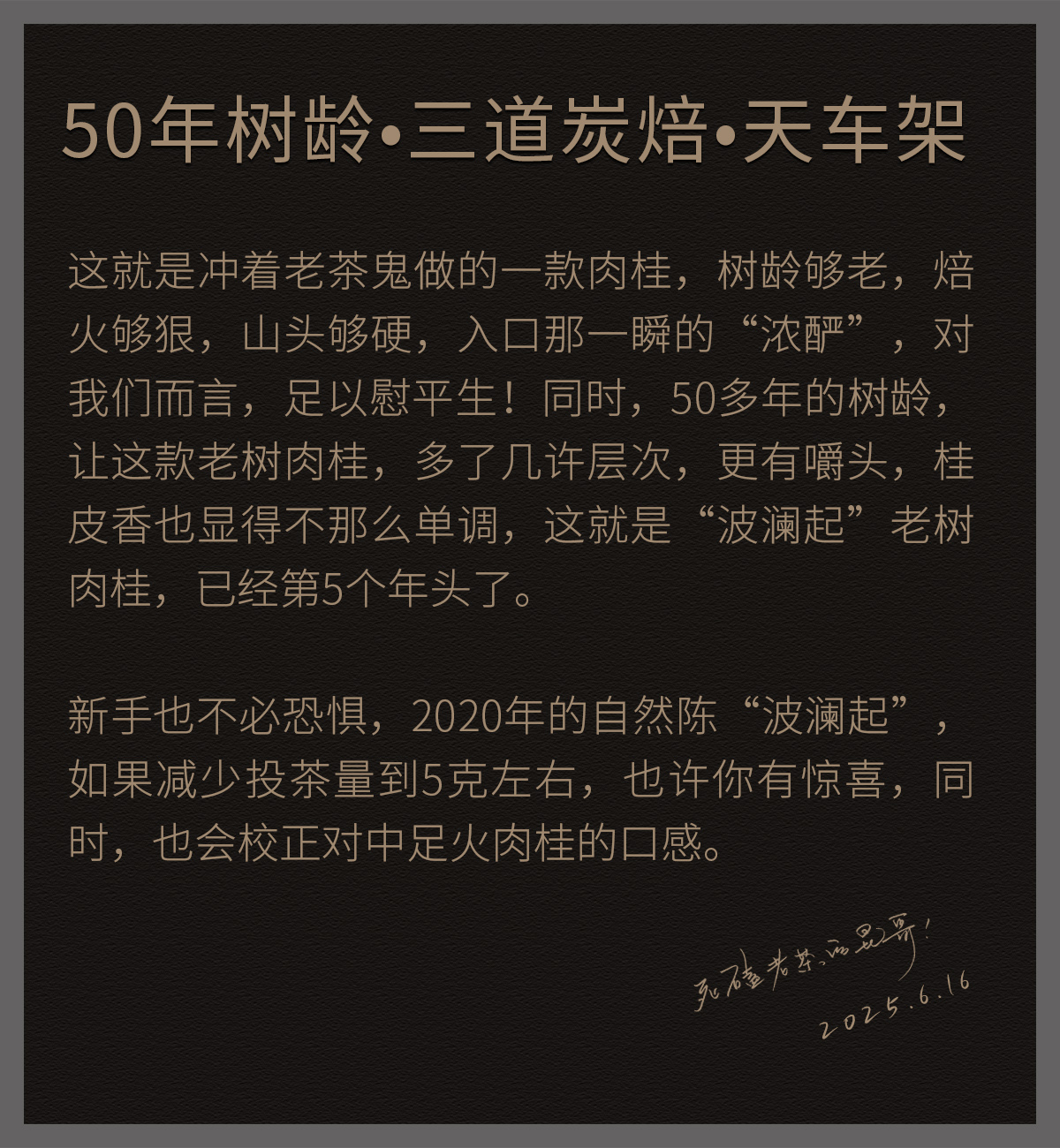 【波澜起】老树肉桂50年树龄武夷正岩中足火炭焙 藏茶密室[督造]