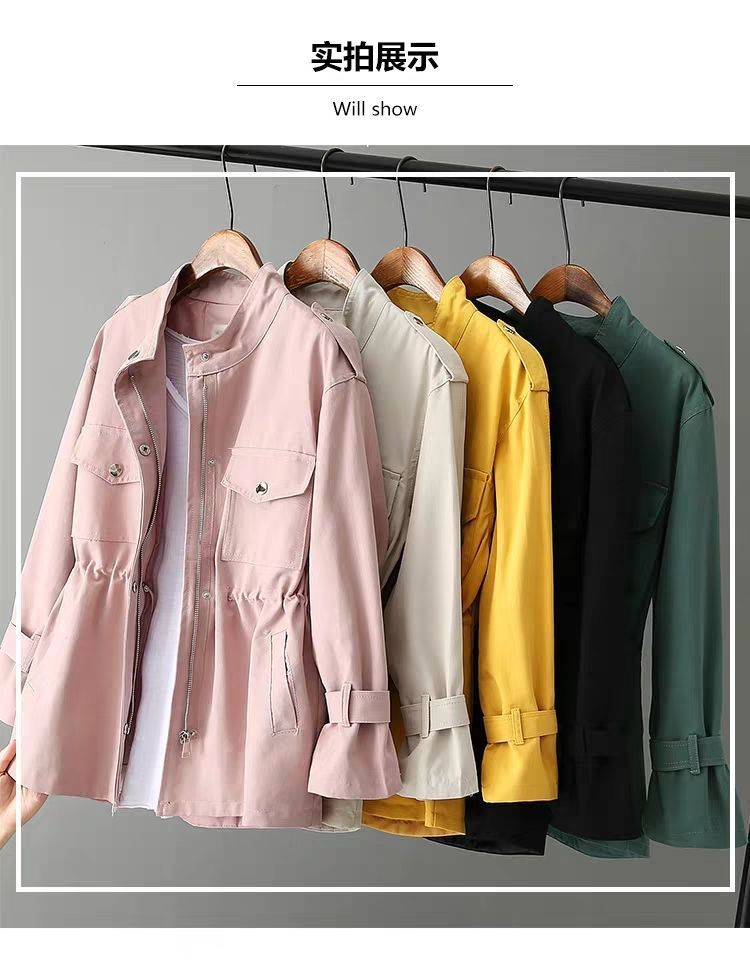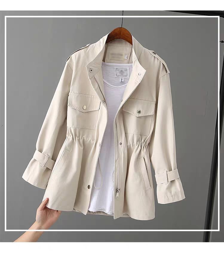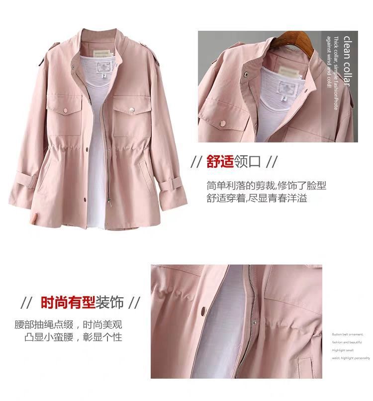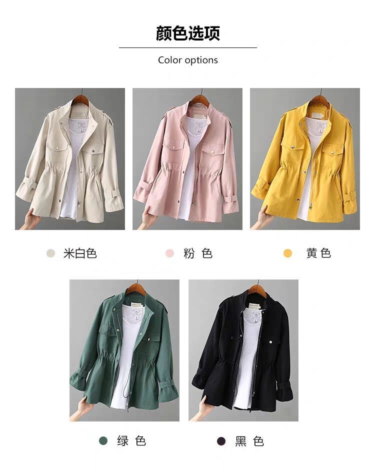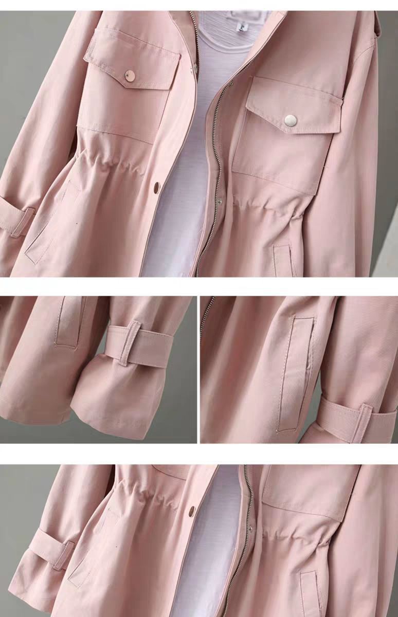 百媚生 风衣女中长款纯棉宽松夹克收腰显瘦小个子上衣