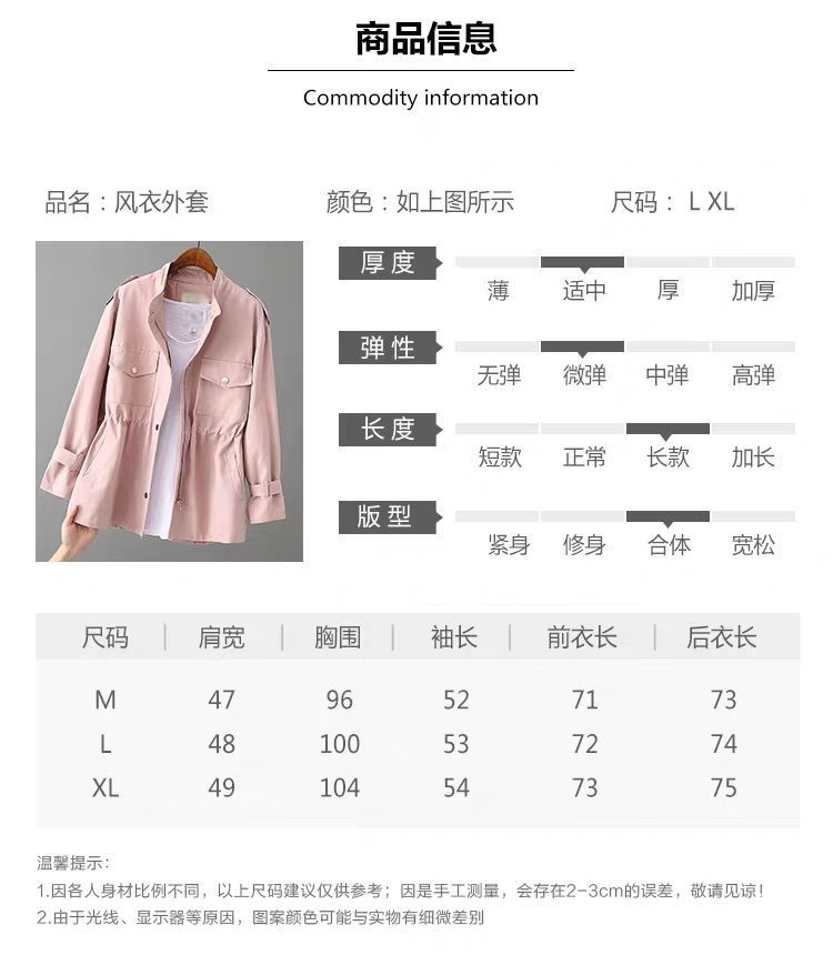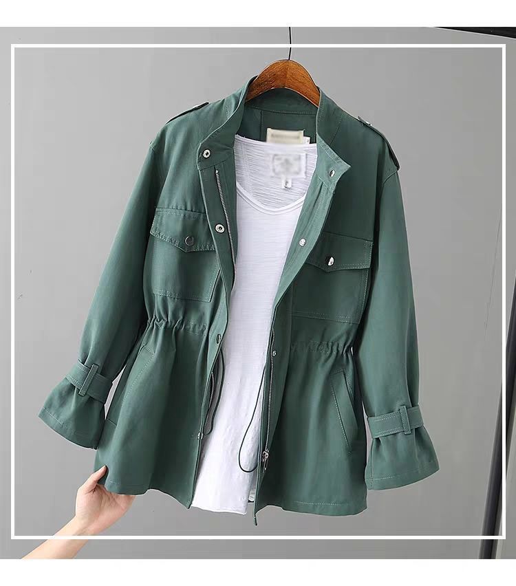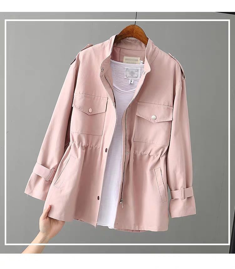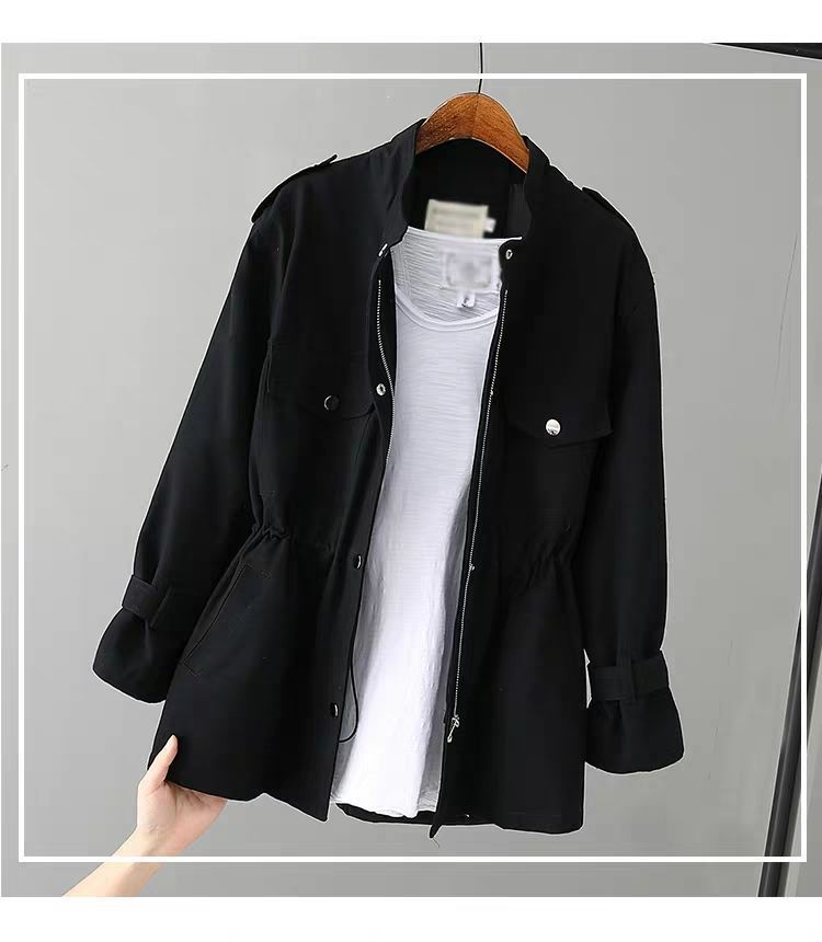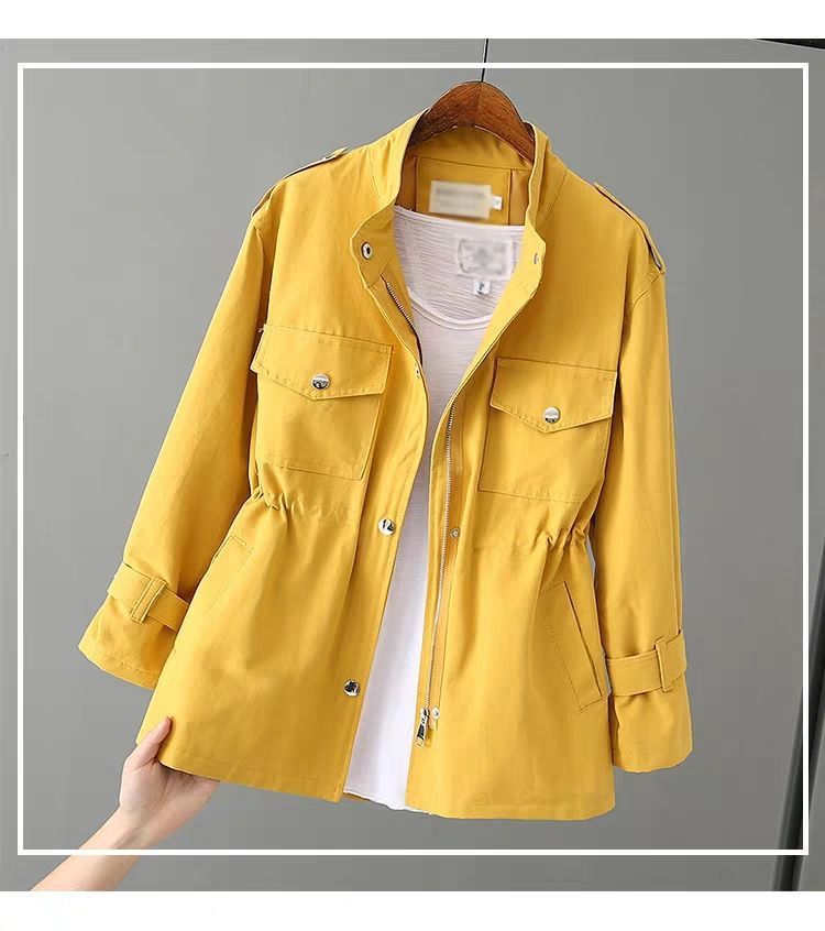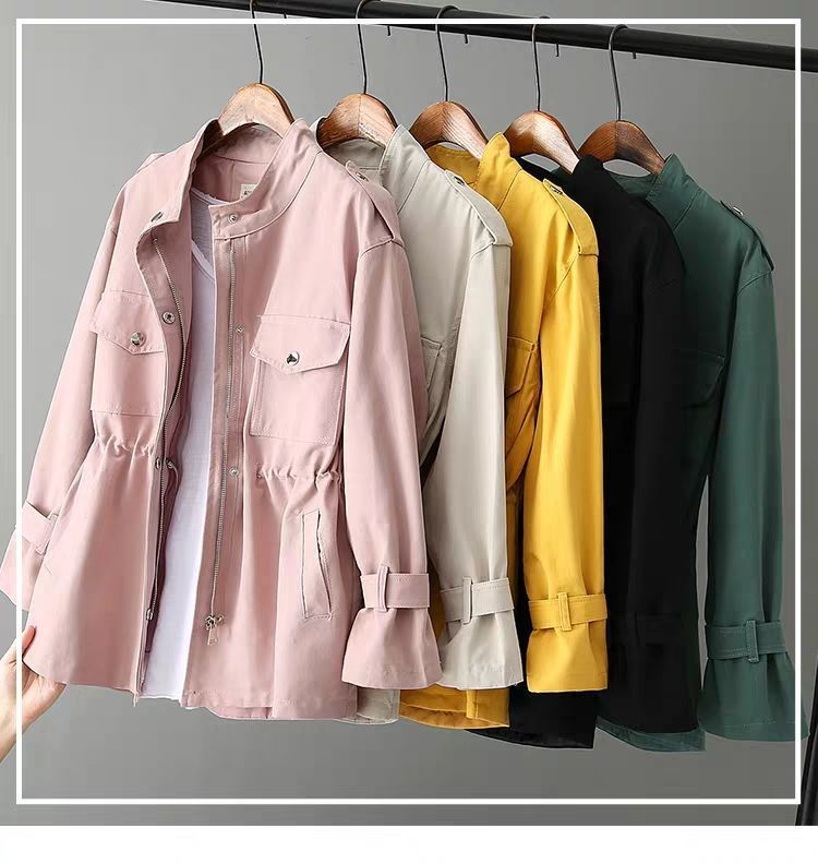 百媚生 风衣女中长款纯棉宽松夹克收腰显瘦小个子上衣